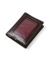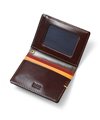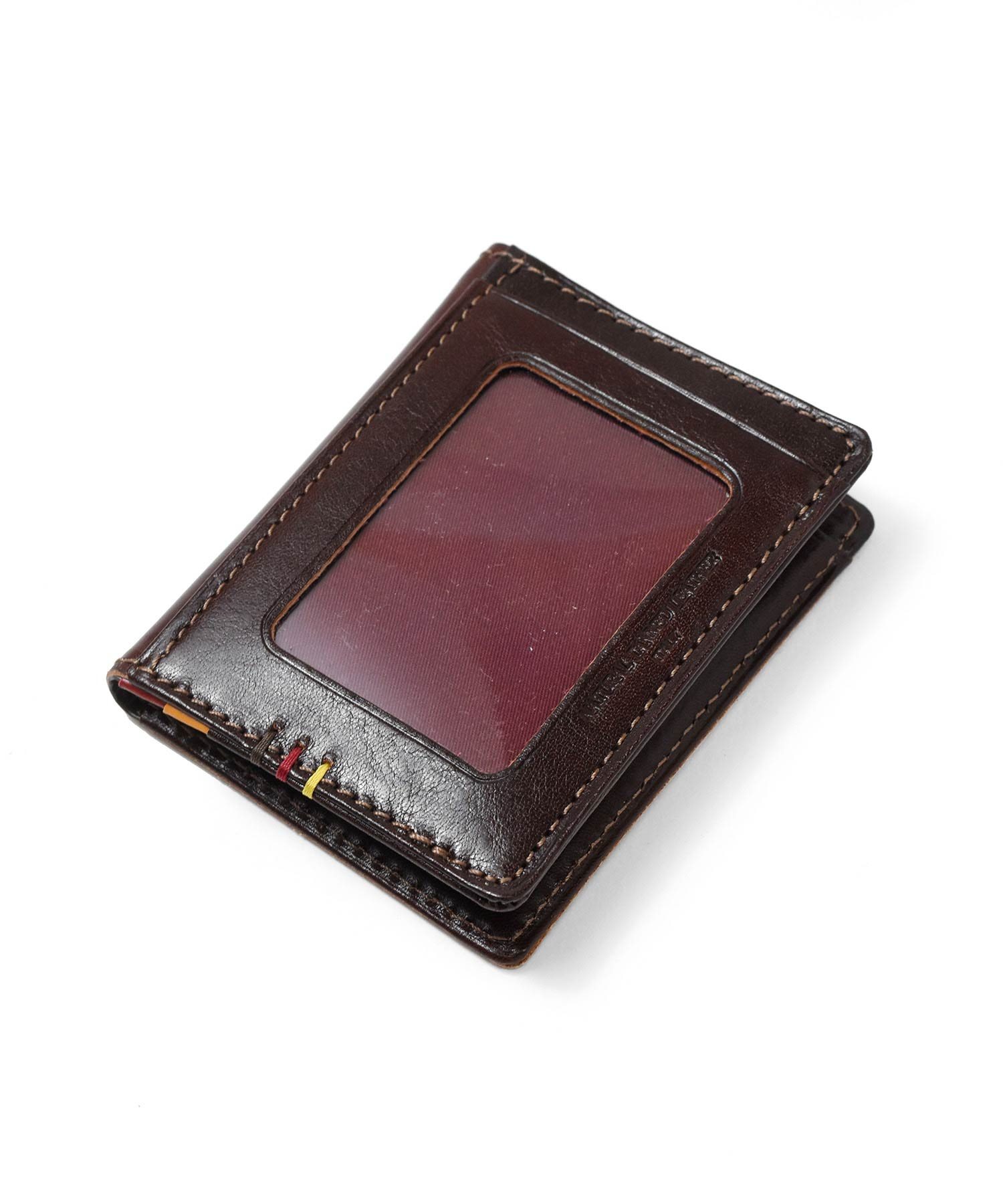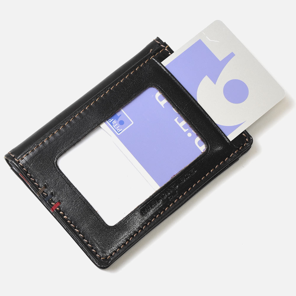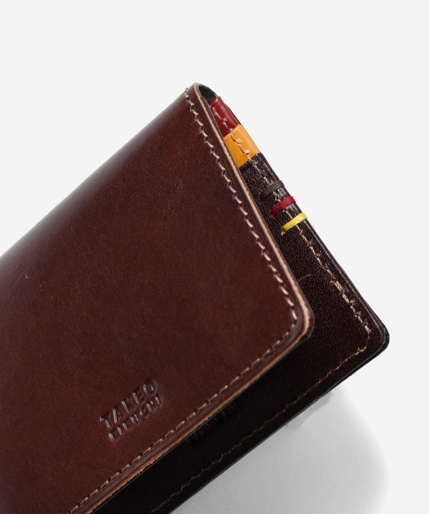 革の質感を重視したシンプルなフェイスと、カード段に配色を施したカラフルな内装とのギャップが特徴です。また、配色のカラーを使用したかがりステッチもさりげないポイントのタケオキクチのパスケースです。内側と背面の2か所に窓付きカードポケットがあり、カードの視認ができます。