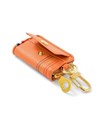 キーケースの外側にはベルトループにもつけられるフック金具、フックにはさらにキーリングが2つ付いています。背側にはホック式ポケットがあり、硬貨などちょっとしたものを収納が可能です。