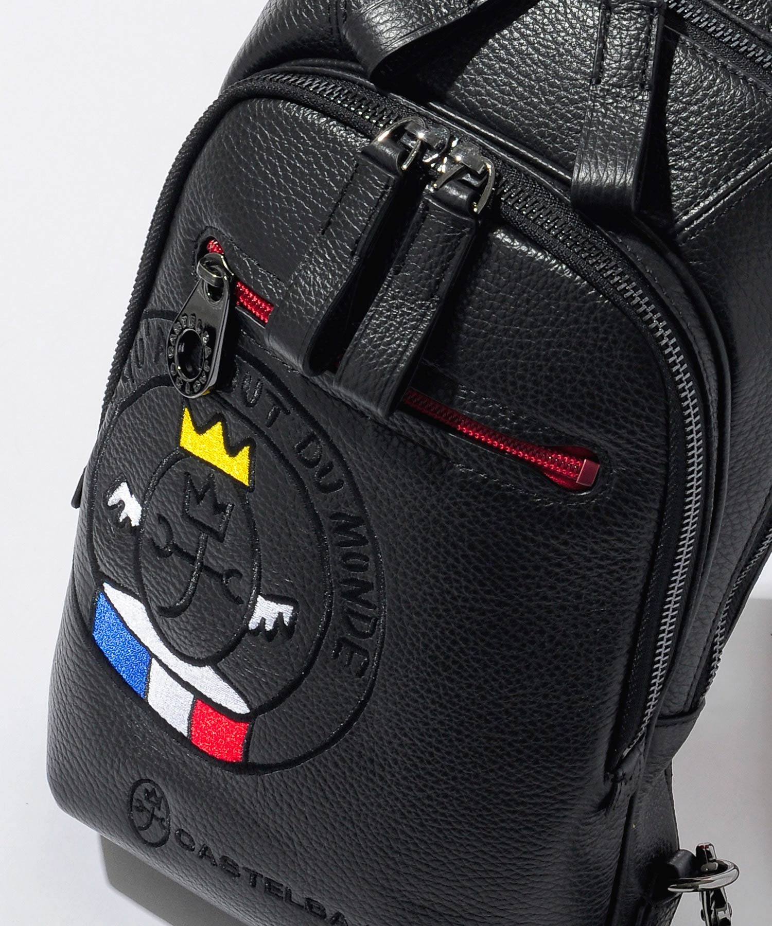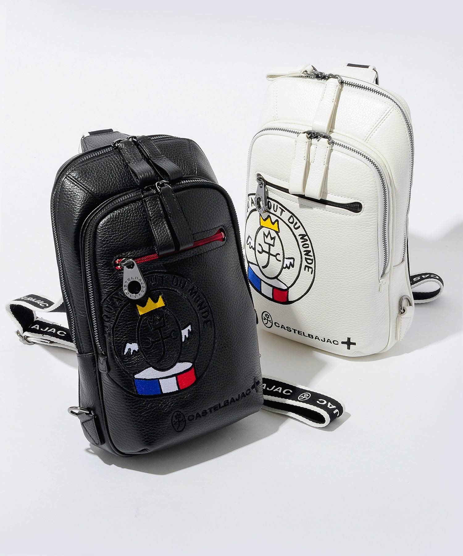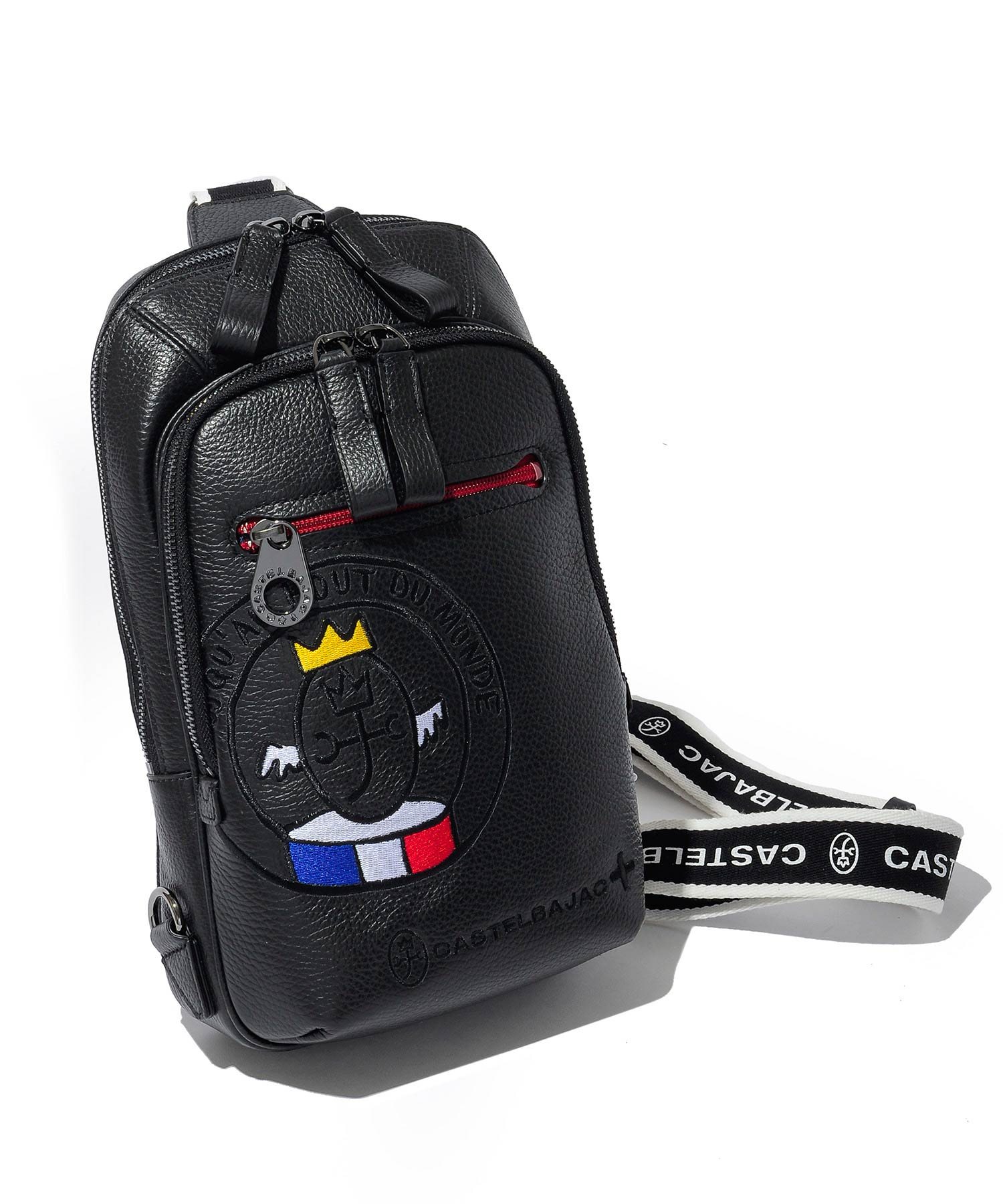 繊細な刺繍でカステルバジャックの家紋マークを表現した、ソフトで軽量なレザーカジュアルワンショルダーバッグ。カバンの本体素材には、イタリアの牛タンナーが集まる、世界的にも有名な牛革の一大生産地「ヴィツェンツァ」で作られた牛革を使用しています。CASTELBAJACのロゴ入りのオリジナルショルダーテープも魅力です。