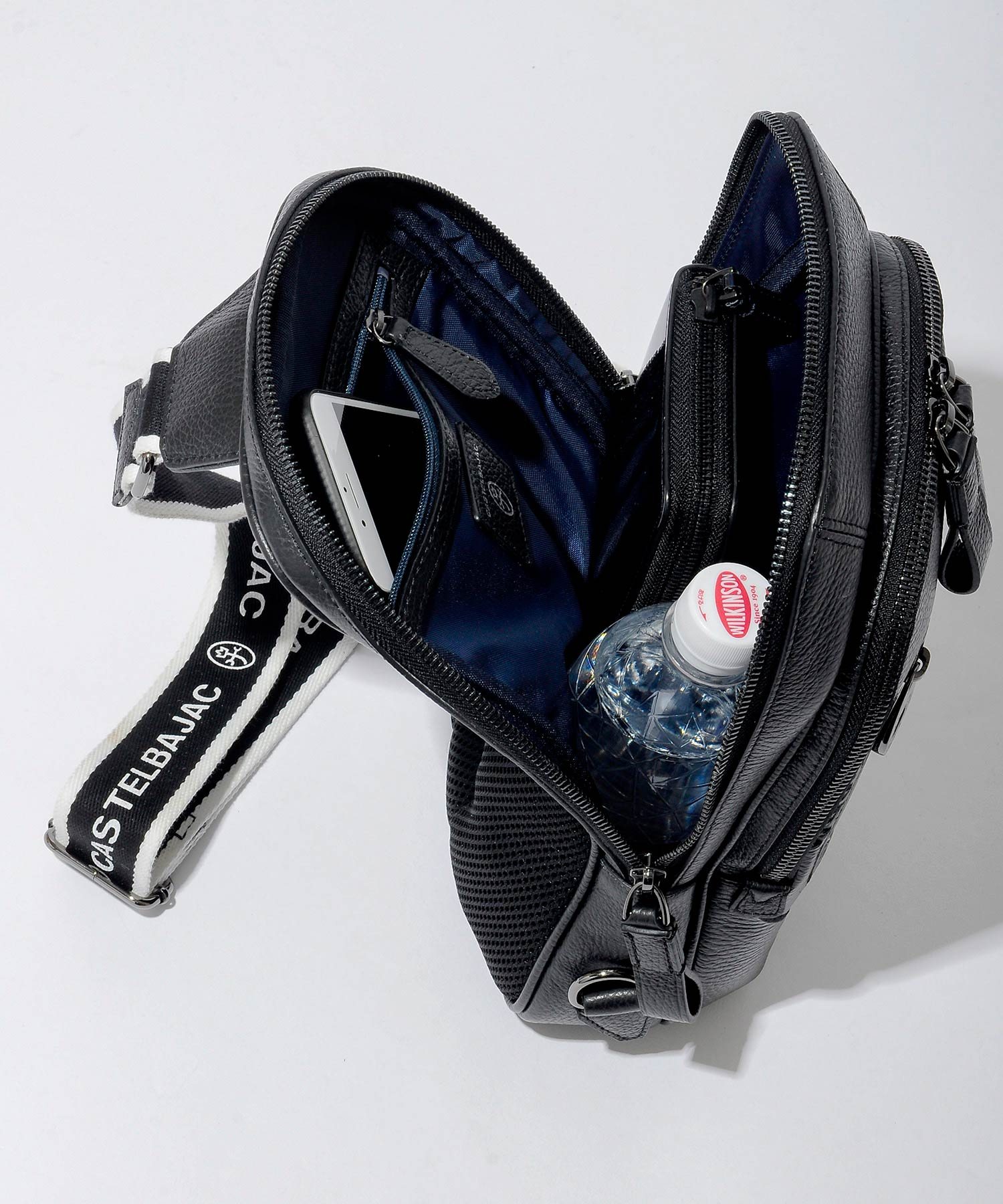 背面はメッシュ素材を採用し、蒸れの軽減と掛け心地を向上。左右どちらにも対応できるよう両サイドにDカン金具が配置されています。