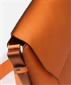 内側にはペンさし、オープンポケット、ファスナーポケットとDリング。内装には手触りのよいスウェード調生地を採用しています。かぶせの下にはアクセスしやすい小物ポケット(25×16cm)を設けています。スマートフォンやパスケースの収納に最適です。また、かぶせ部のスッパーが付いた特殊なマグネットは、ワンタッチで開閉可能で使い易く上部に引っ張った際に開かないように工夫されています。