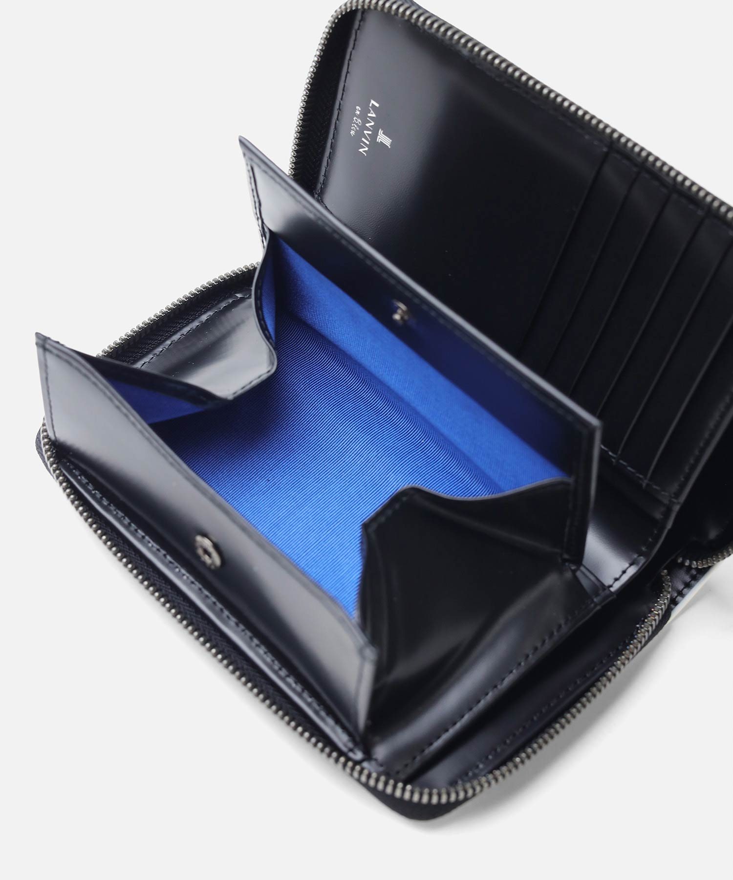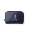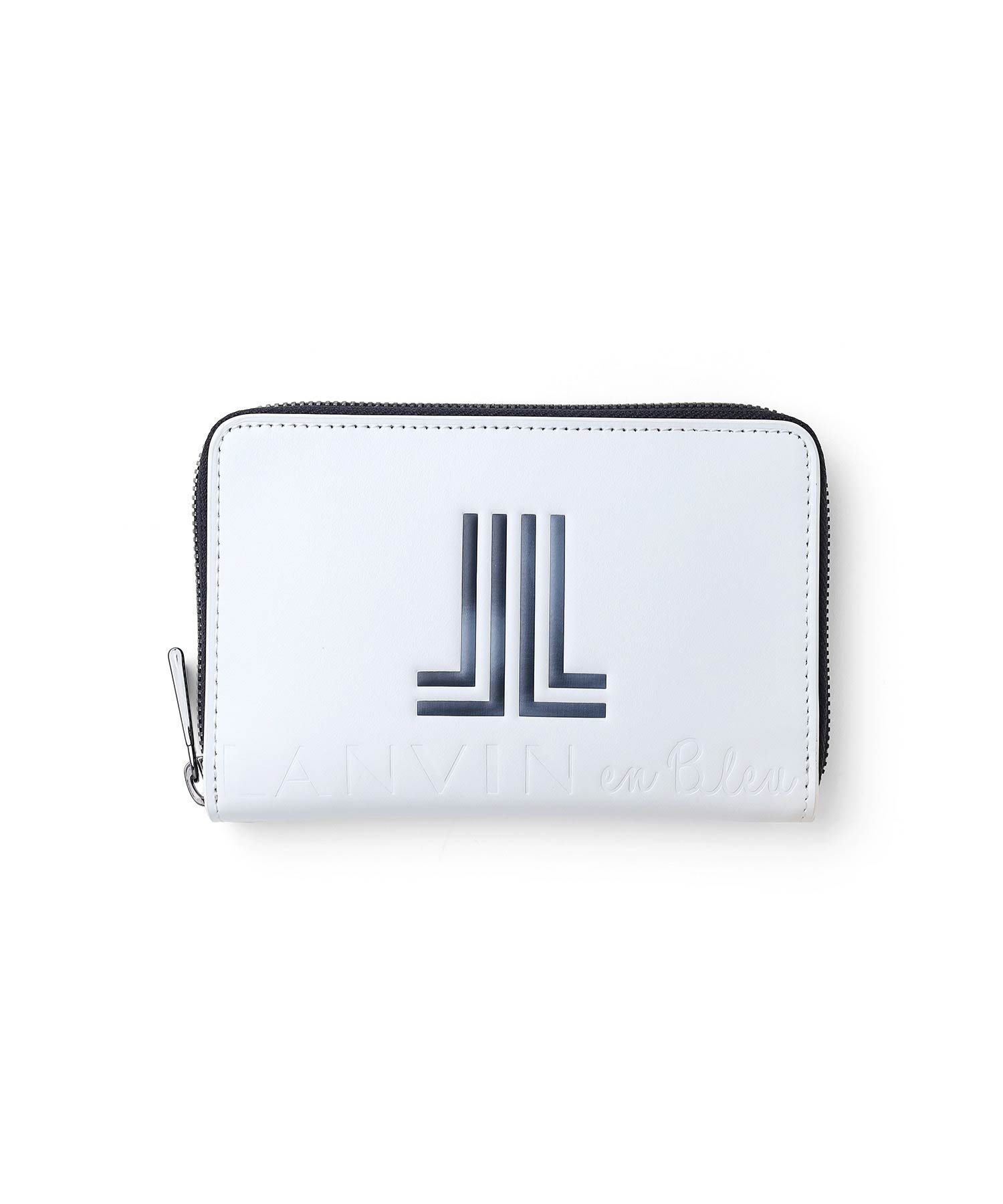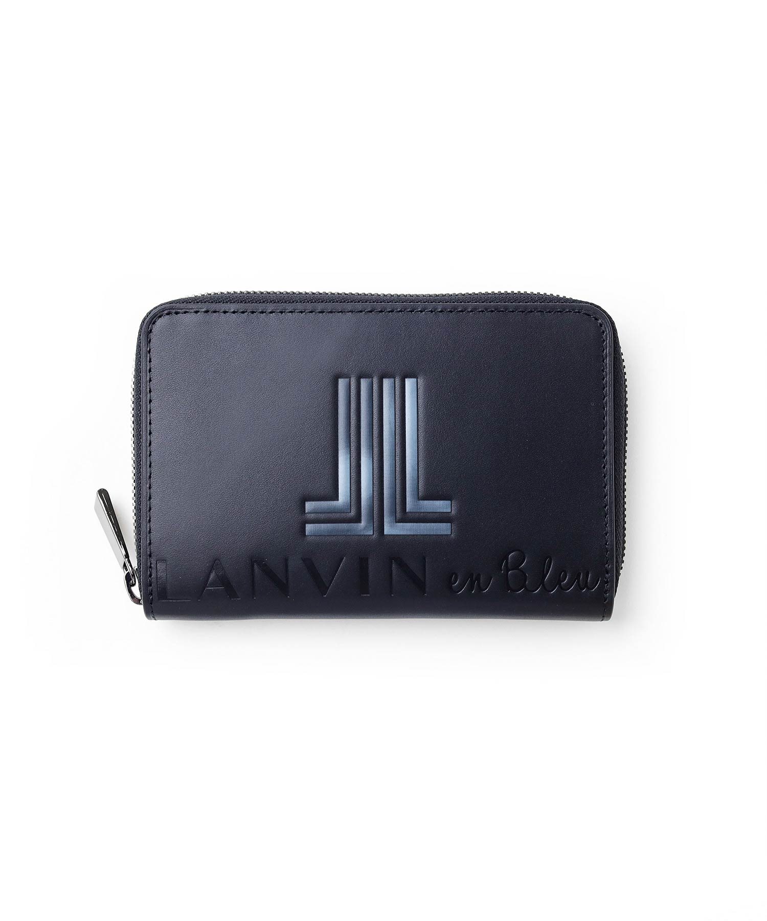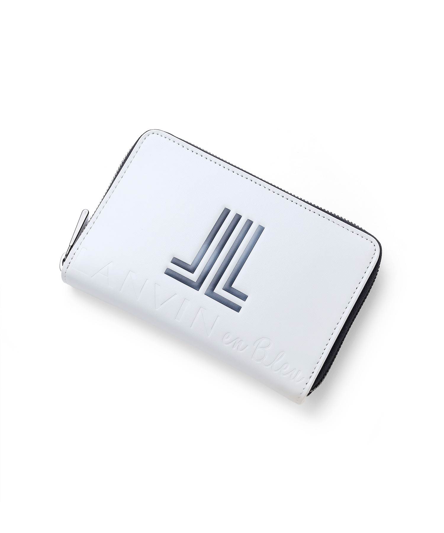 ランバンオンブルーの文字を型押しで大きく表現した、ラウンドファスナー型折り財布。通常の長財布よりも一回り小さいミドルウォレットです。ブランドのシンボルマークである「JL」ロゴをグラデーションで用いた、シンプルでもエッジーな革財布です。