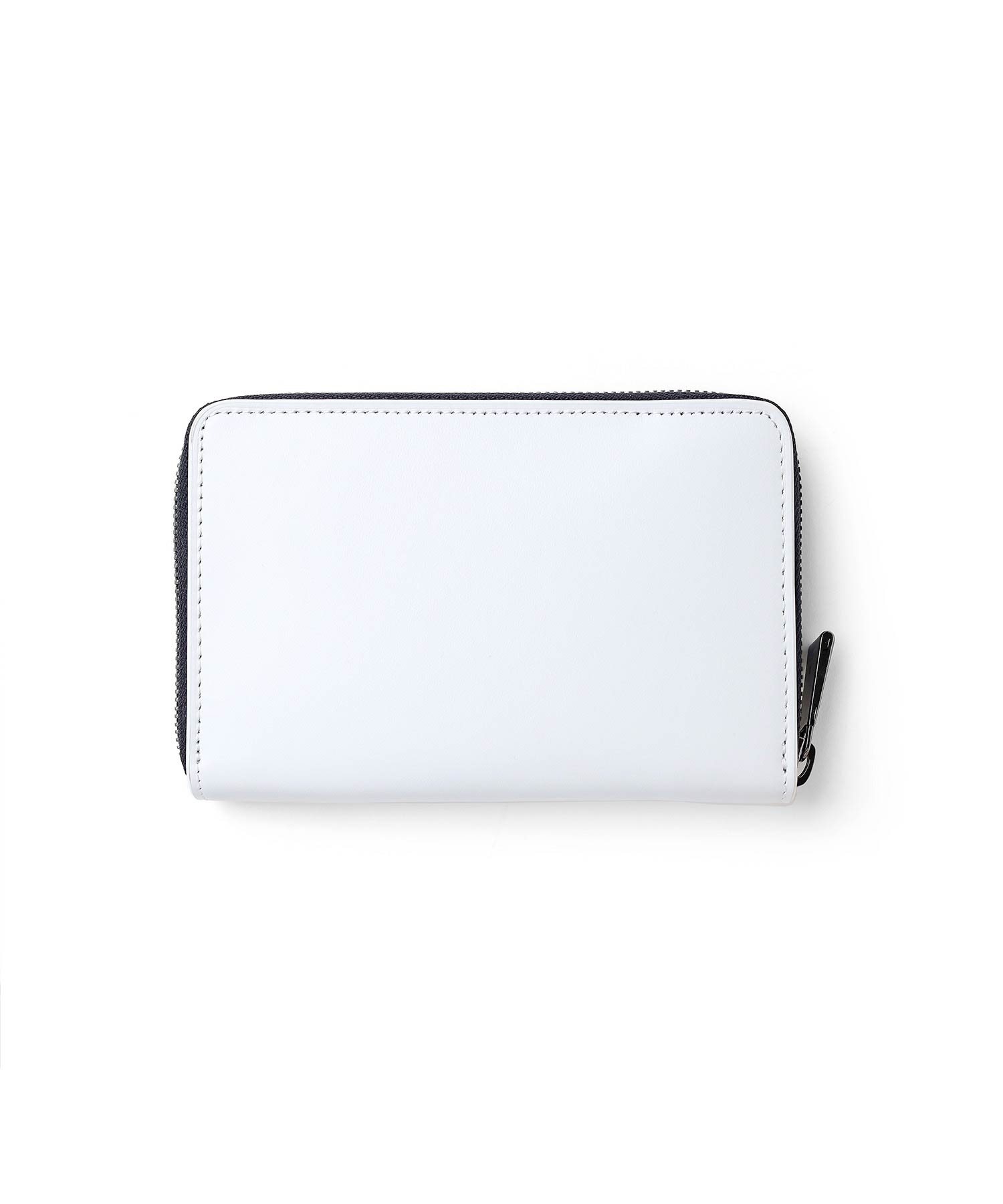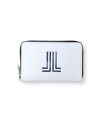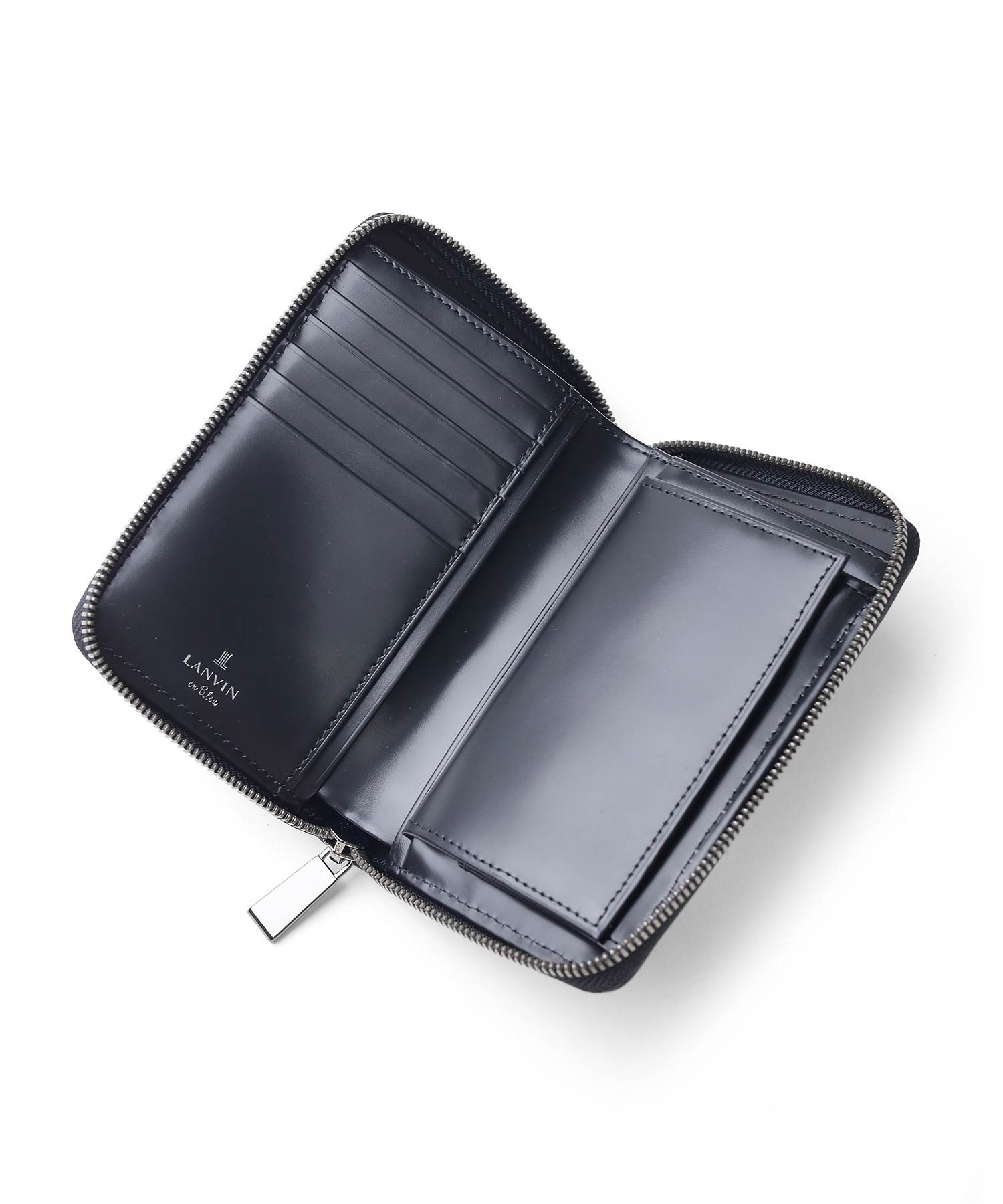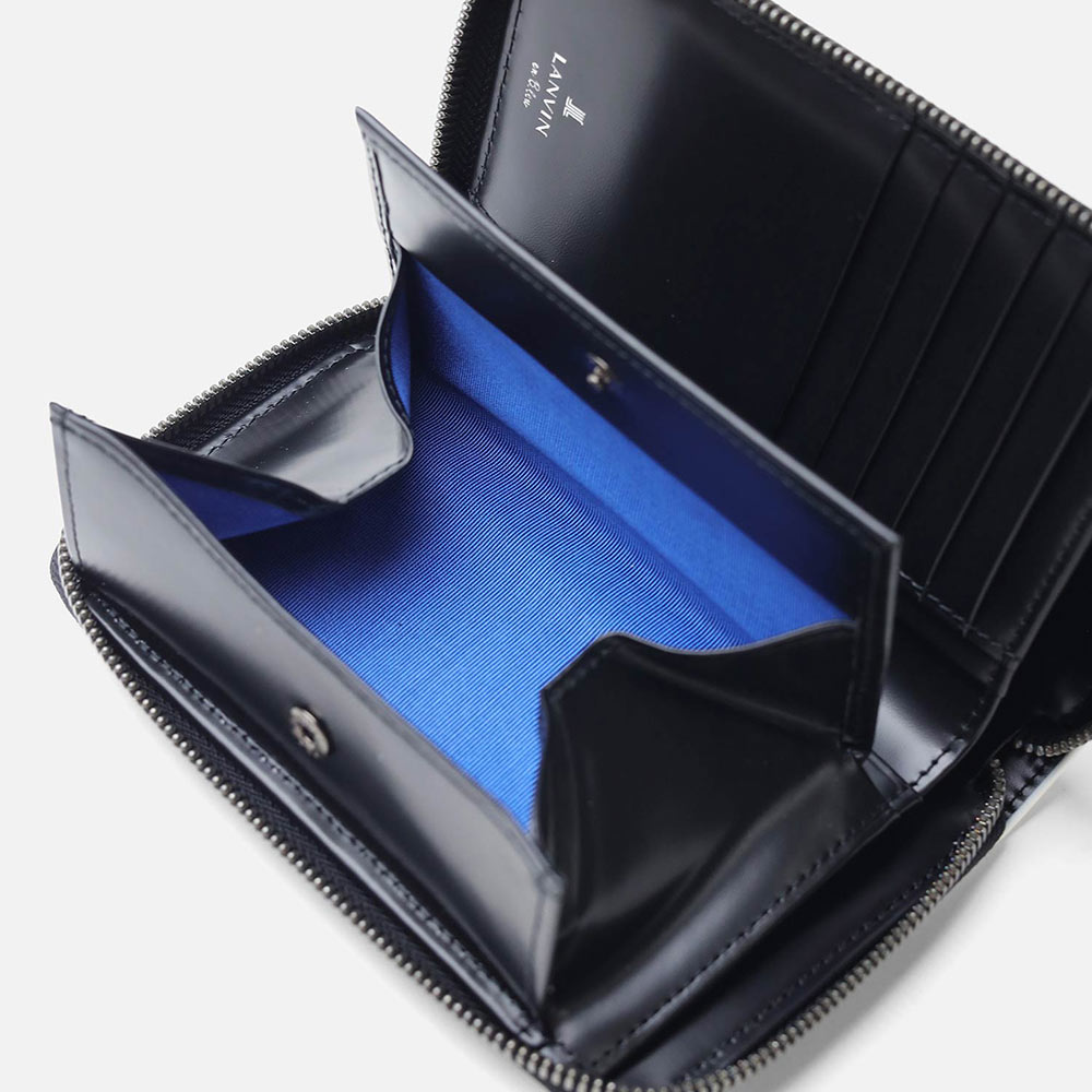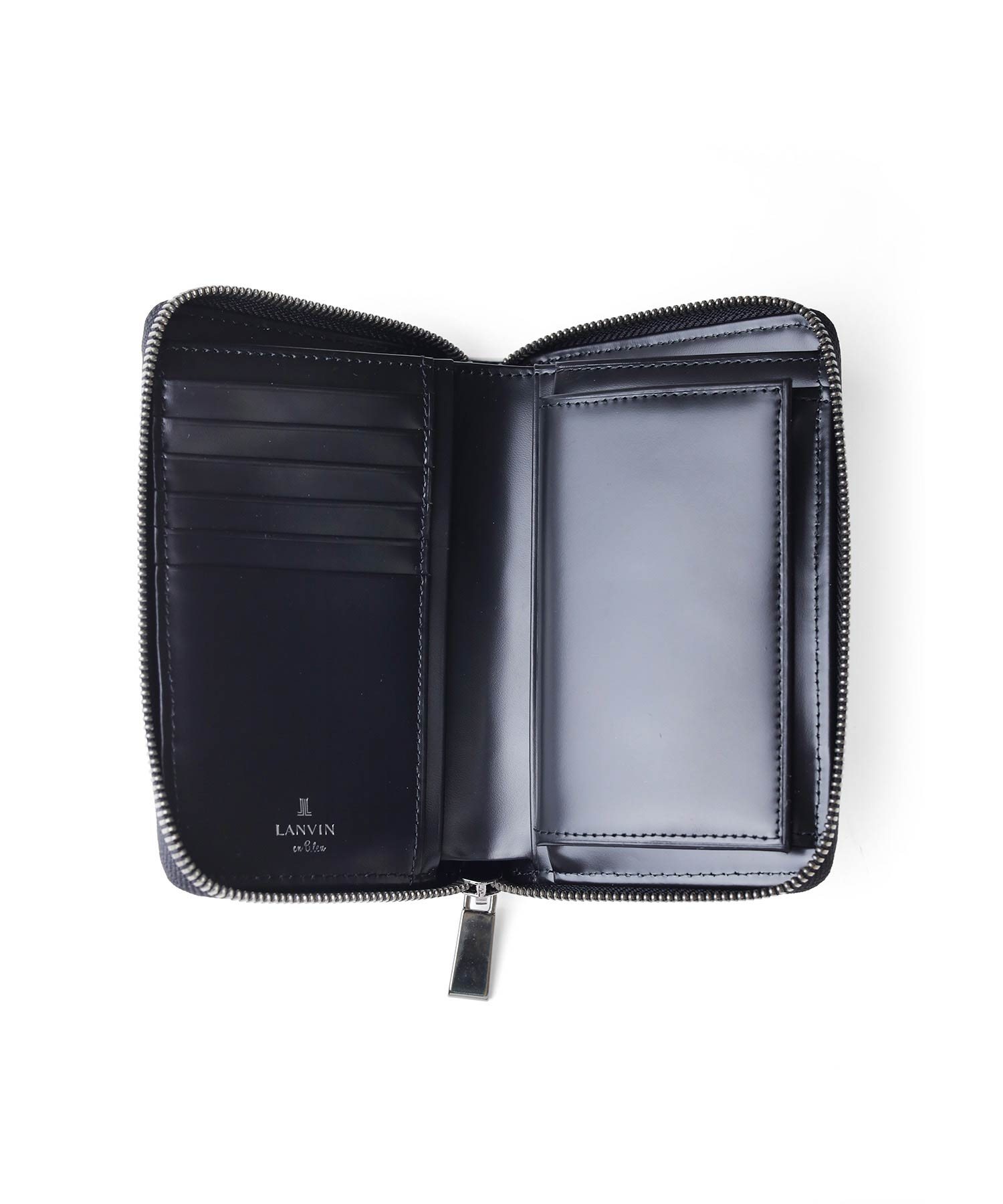 ランバンオンブルーの文字を型押しで大きく表現した、ラウンドファスナー型折り財布。通常の長財布よりも一回り小さいミドルウォレットです。ブランドのシンボルマークである「JL」ロゴをグラデーションで用いた、シンプルでもエッジーな革財布です。