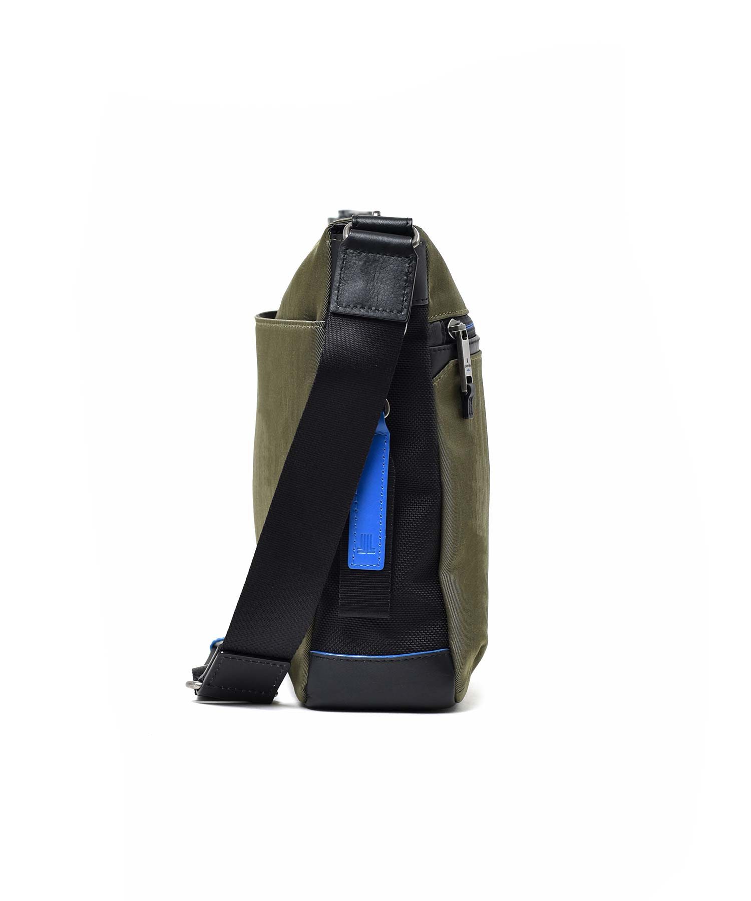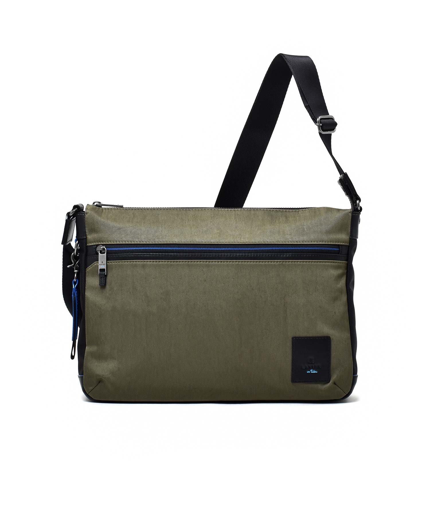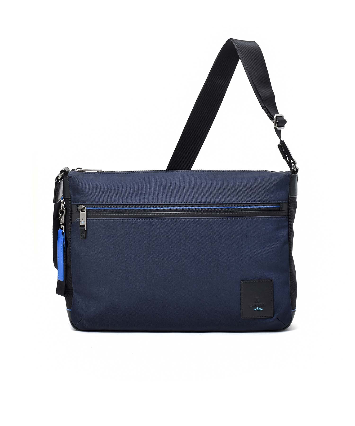 ョルダーを中心とした軽量ナイロンカジュアルシリーズ。弱撥水加工を施した「シワナイロンツイル」、強度に優れた「バリスティックナイロン」、撥水加工を施した「スムース牛革」の3種の素材を使用した、メリハリのある異素材MIX仕様のA4サイズショルダーバッグ。