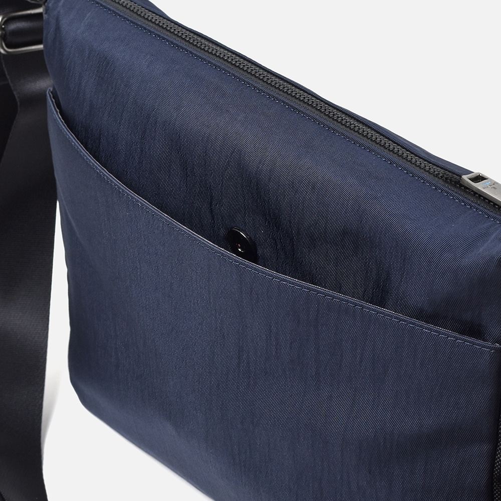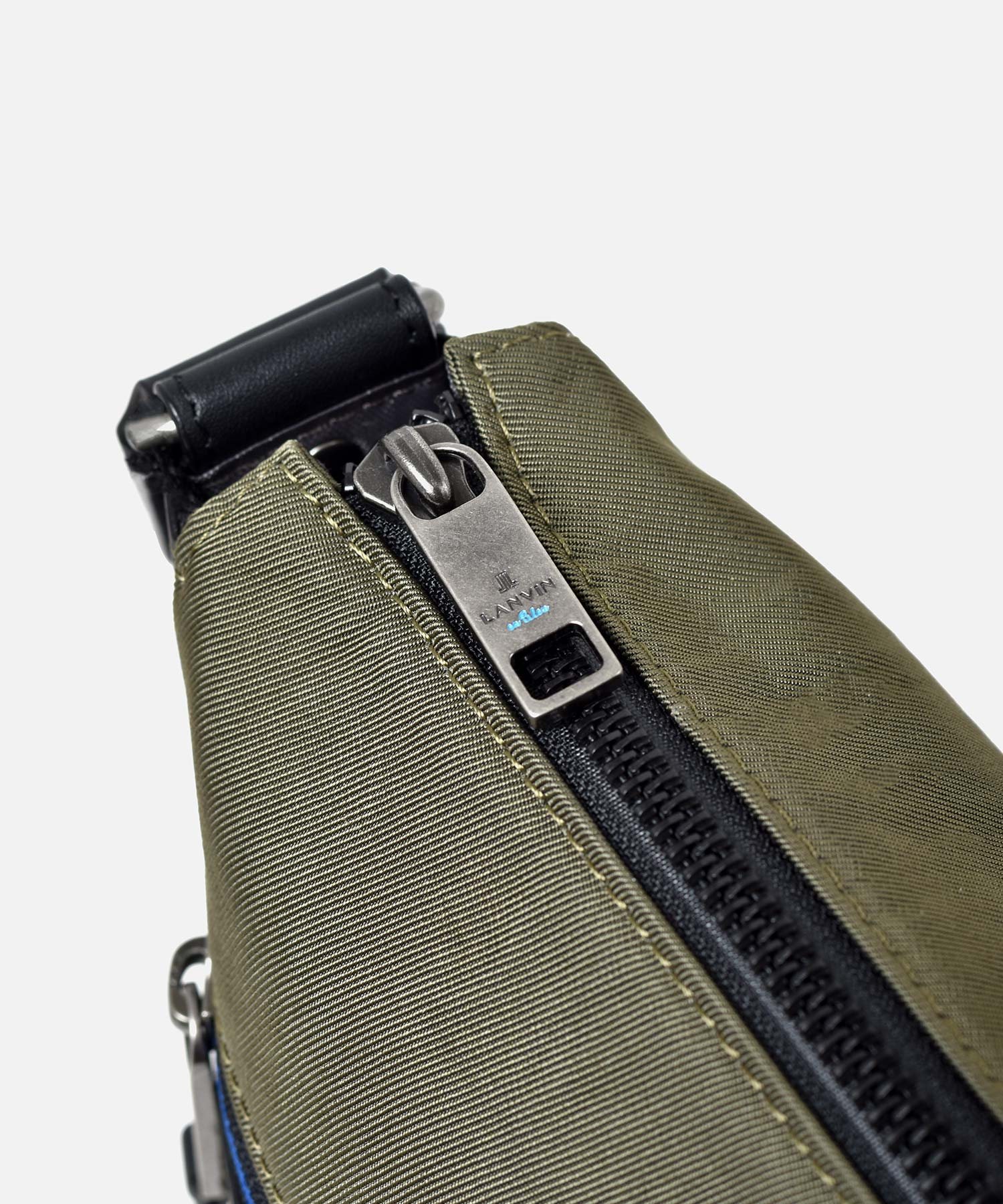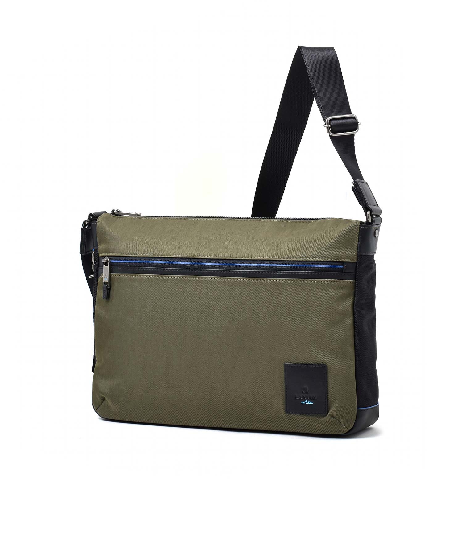ョルダーを中心とした軽量ナイロンカジュアルシリーズ。弱撥水加工を施した「シワナイロンツイル」、強度に優れた「バリスティックナイロン」、撥水加工を施した「スムース牛革」の3種の素材を使用した、メリハリのある異素材MIX仕様のA4サイズショルダーバッグ。