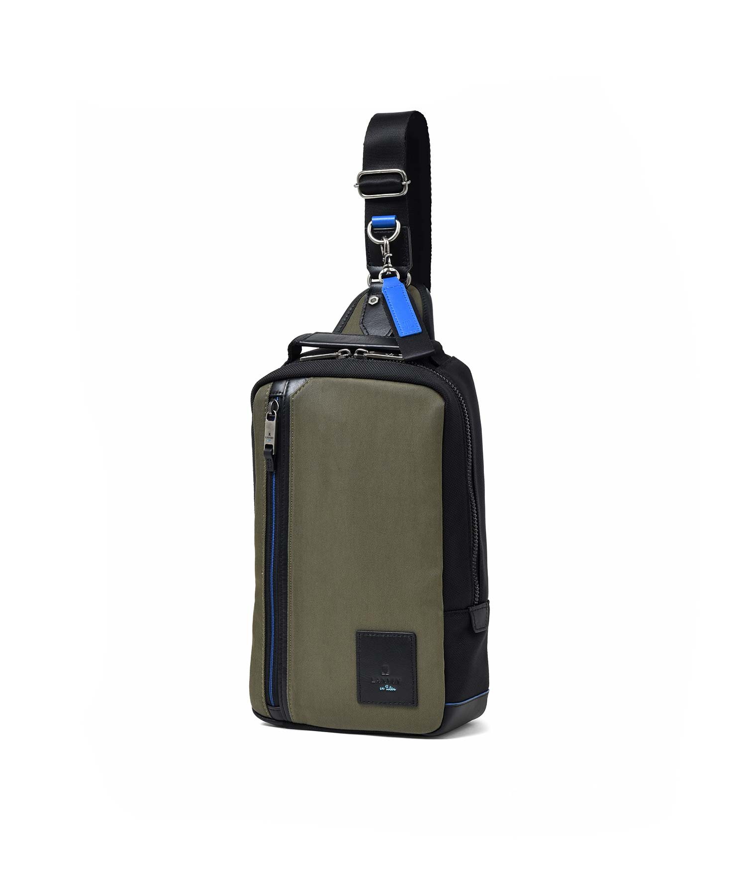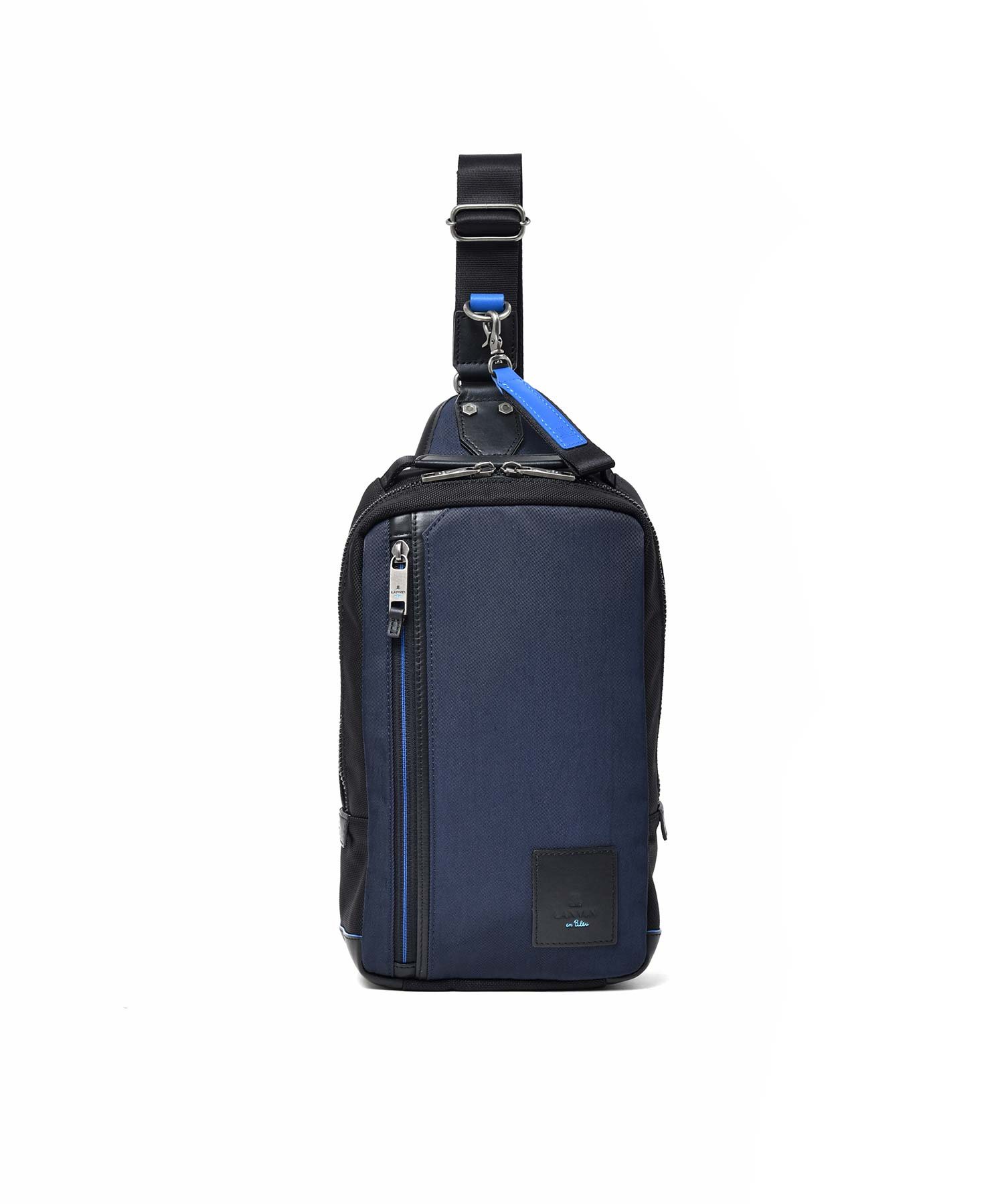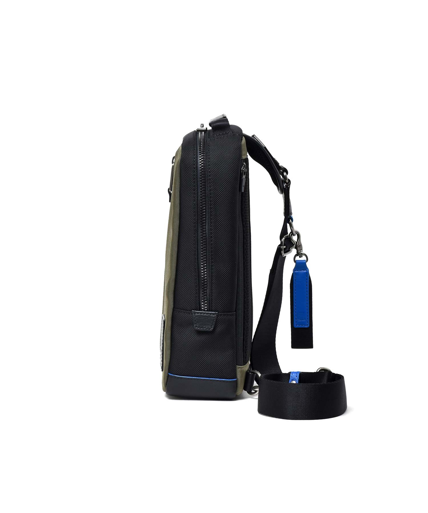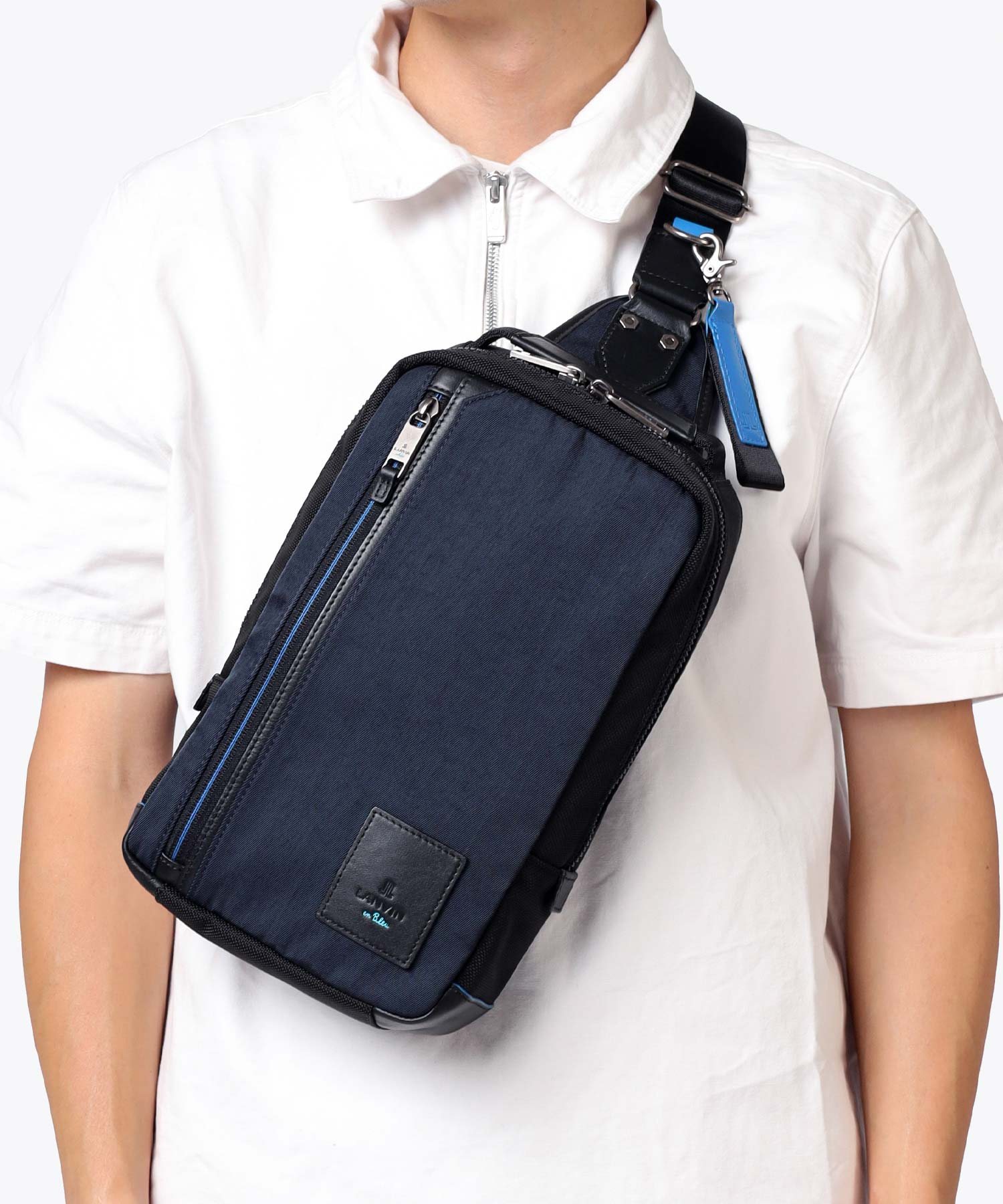 ショルダーを中心とした軽量ナイロンカジュアルシリーズ。弱撥水加工を施した「シワナイロンツイル」、強度に優れた「バリスティックナイロン」、撥水加工を施した「スムース牛革」の3種の素材を使用した、メリハリのある異素材MIX仕様のワンショルダーバッグ。