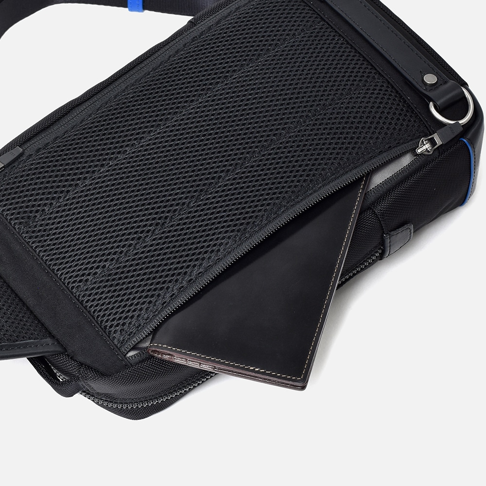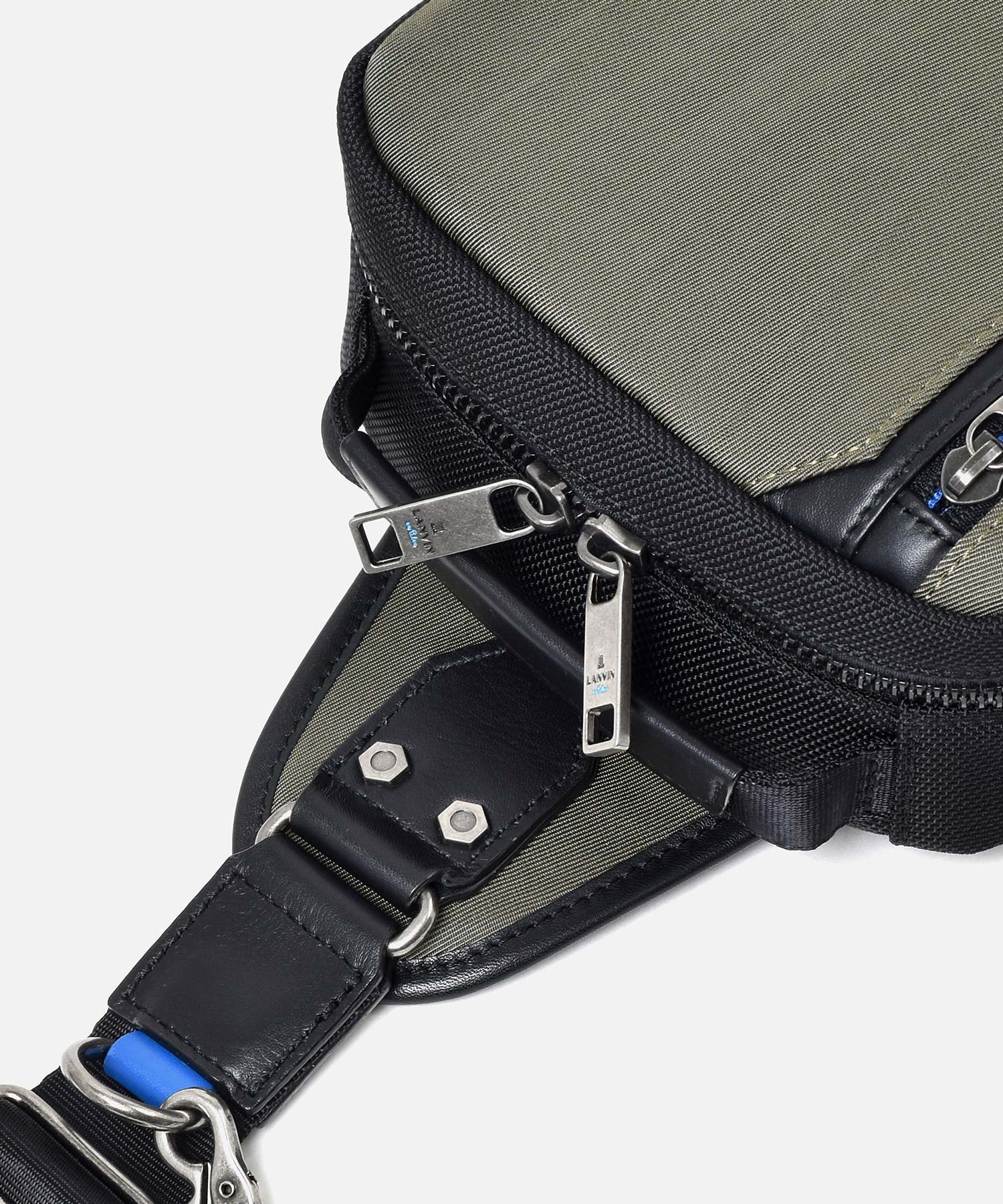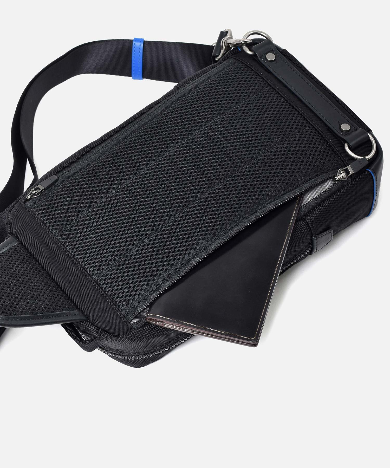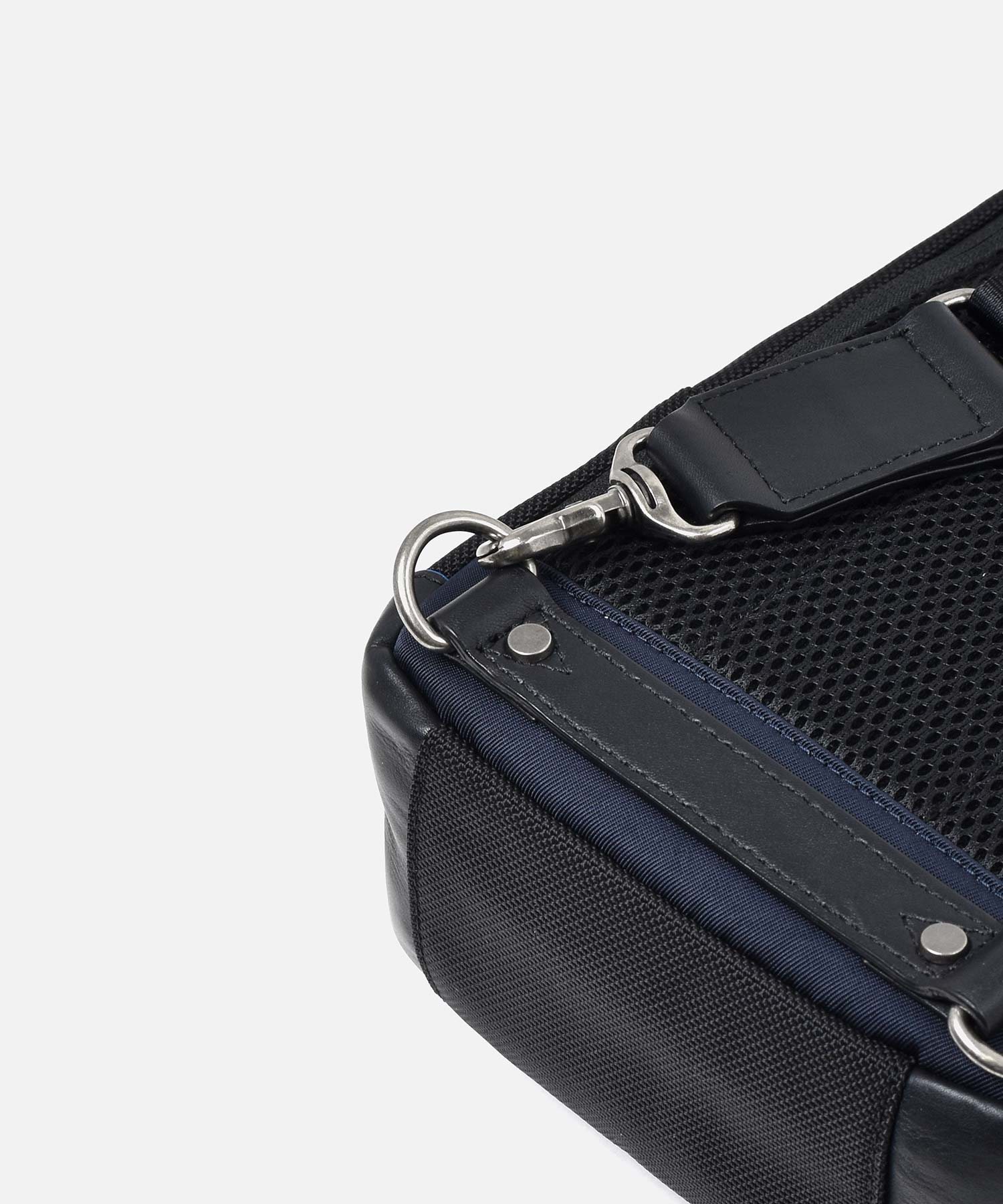 ショルダーを中心とした軽量ナイロンカジュアルシリーズ。弱撥水加工を施した「シワナイロンツイル」、強度に優れた「バリスティックナイロン」、撥水加工を施した「スムース牛革」の3種の素材を使用した、メリハリのある異素材MIX仕様のワンショルダーバッグ。