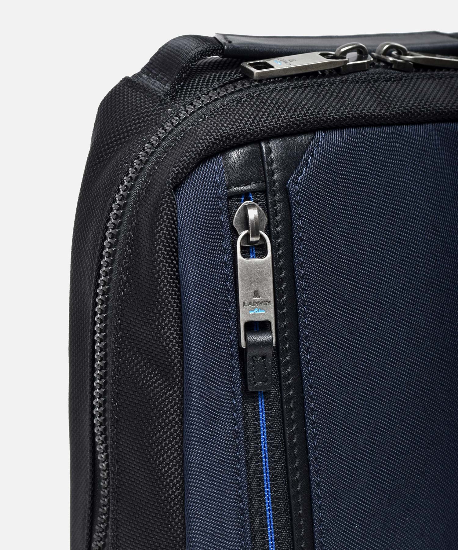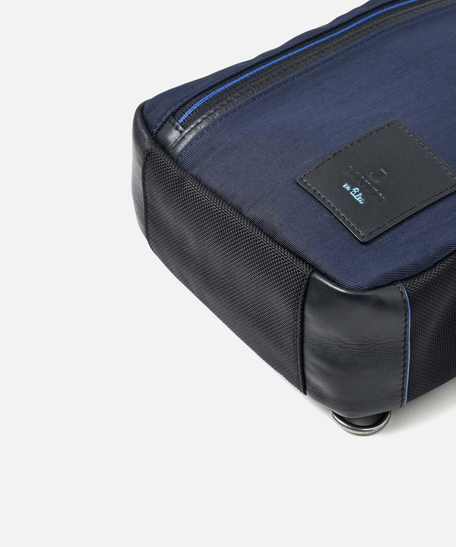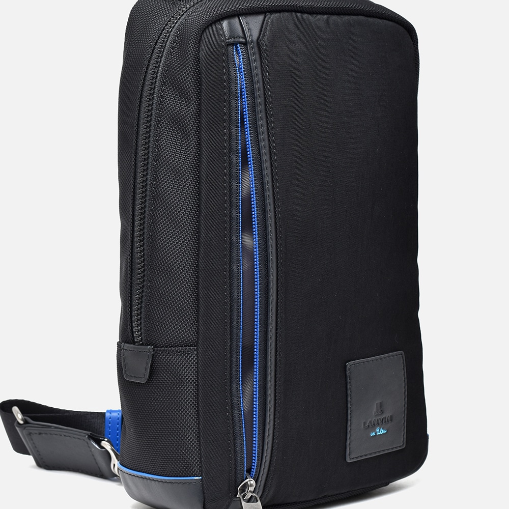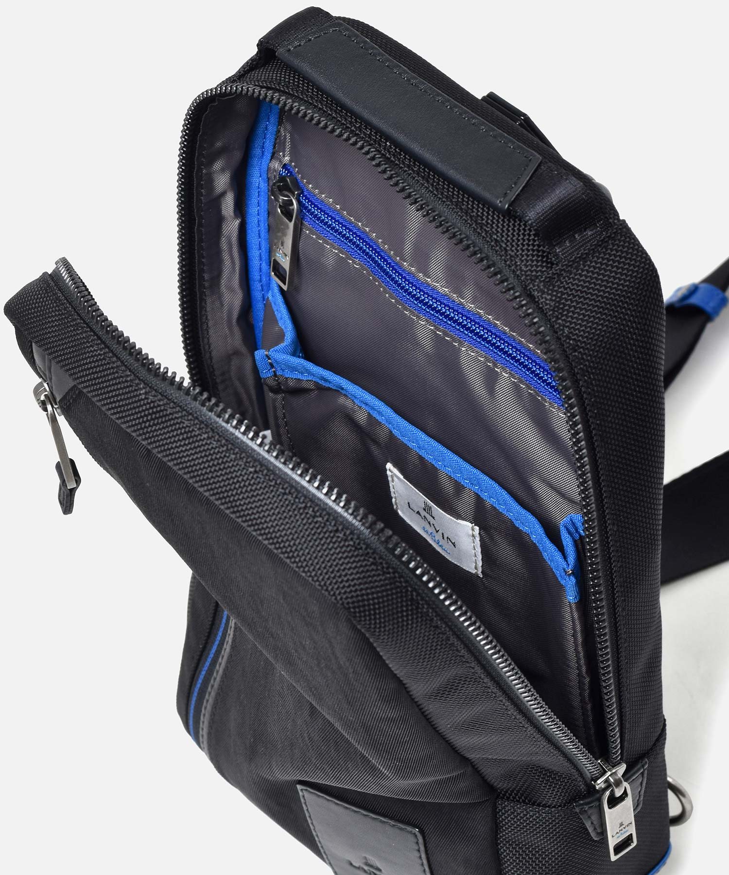ナイロン×牛革のメリハリのある素材感が特徴的なランバンオンブルーのワンショルダーバッグ。中央に細いブルーのラインが入ったオリジナルファスナーを使用し、随所にもブルーのパーツを用いてランバンオンブルーらしさを表現しました。機能的かつ軽量に仕上げており、デイリーユースから旅行まで様々なシーンでお使いいただけます。