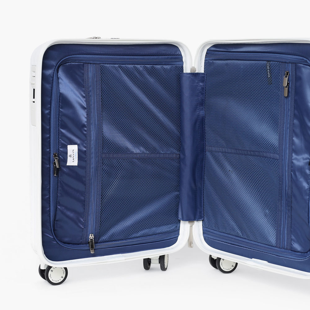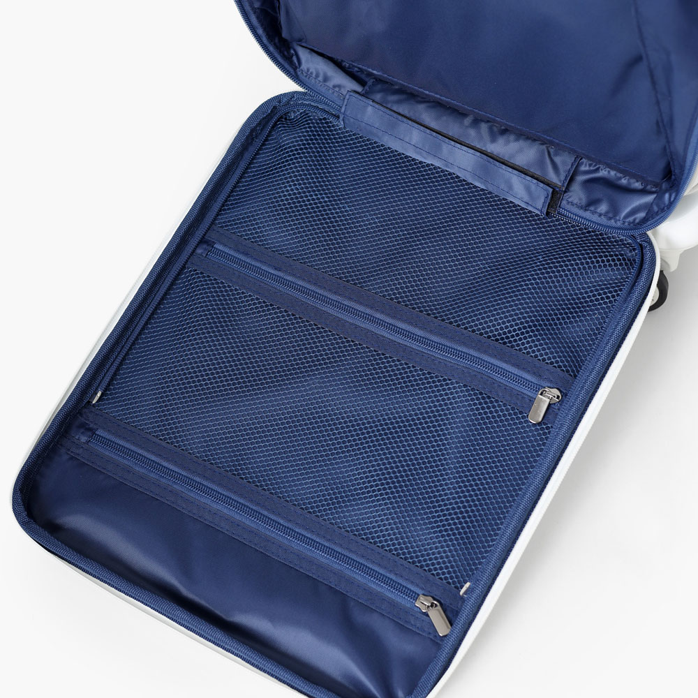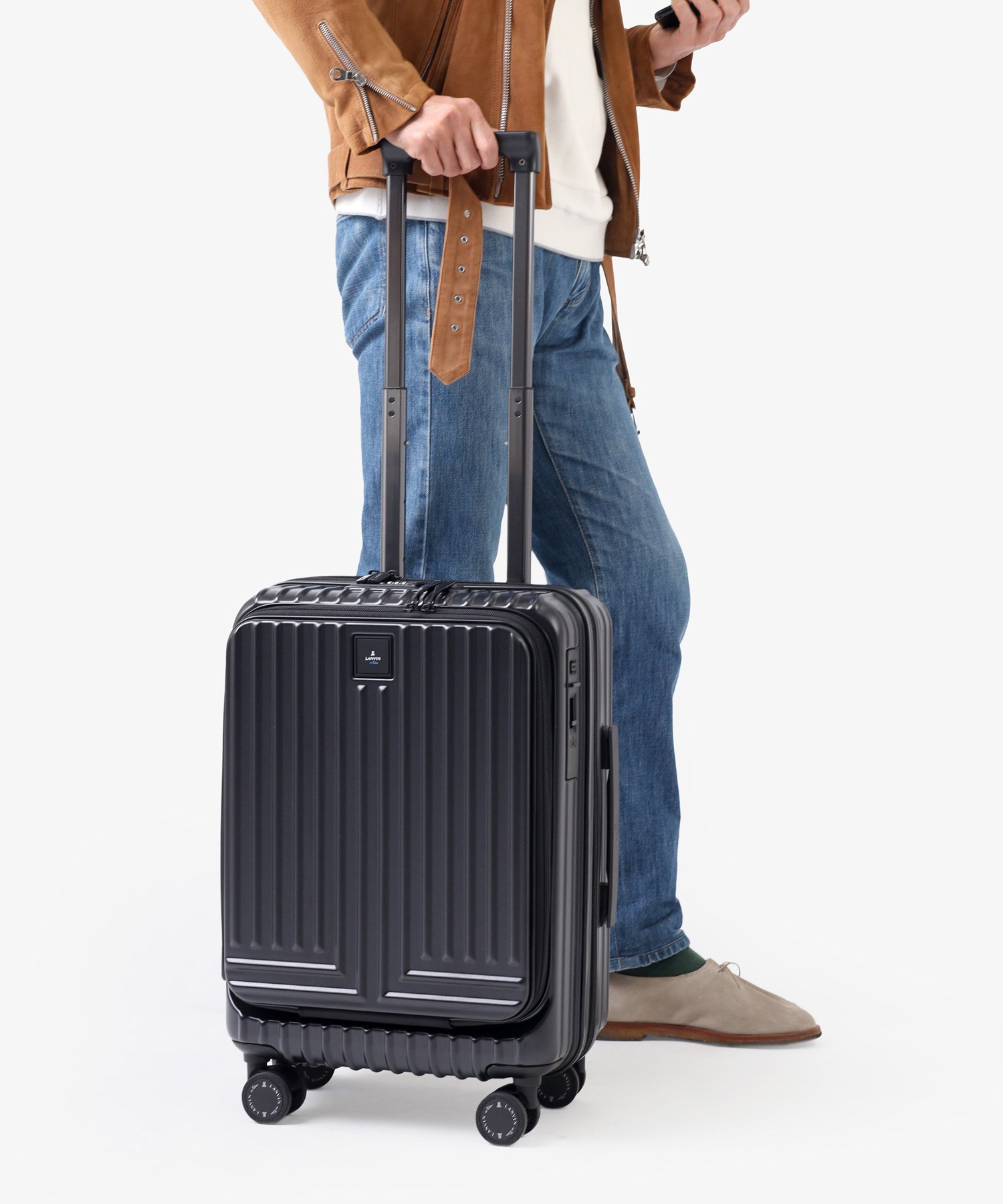 ジェンダーレスなデザインで、ブランドのアイコンが全体に施されたランバンオンブルーの機内持ち込みサイズのキャリーケース。マットな質感で上品な印象を与える仕上げが魅力で、落ち着いた雰囲気を漂わせます。さらに、フロントポケットやストッパー機能を搭載し、使い勝手も抜群です。軽量で丈夫な素材を使用しており、1~3泊の旅行に最適な機内持ち込み可能サイズです。