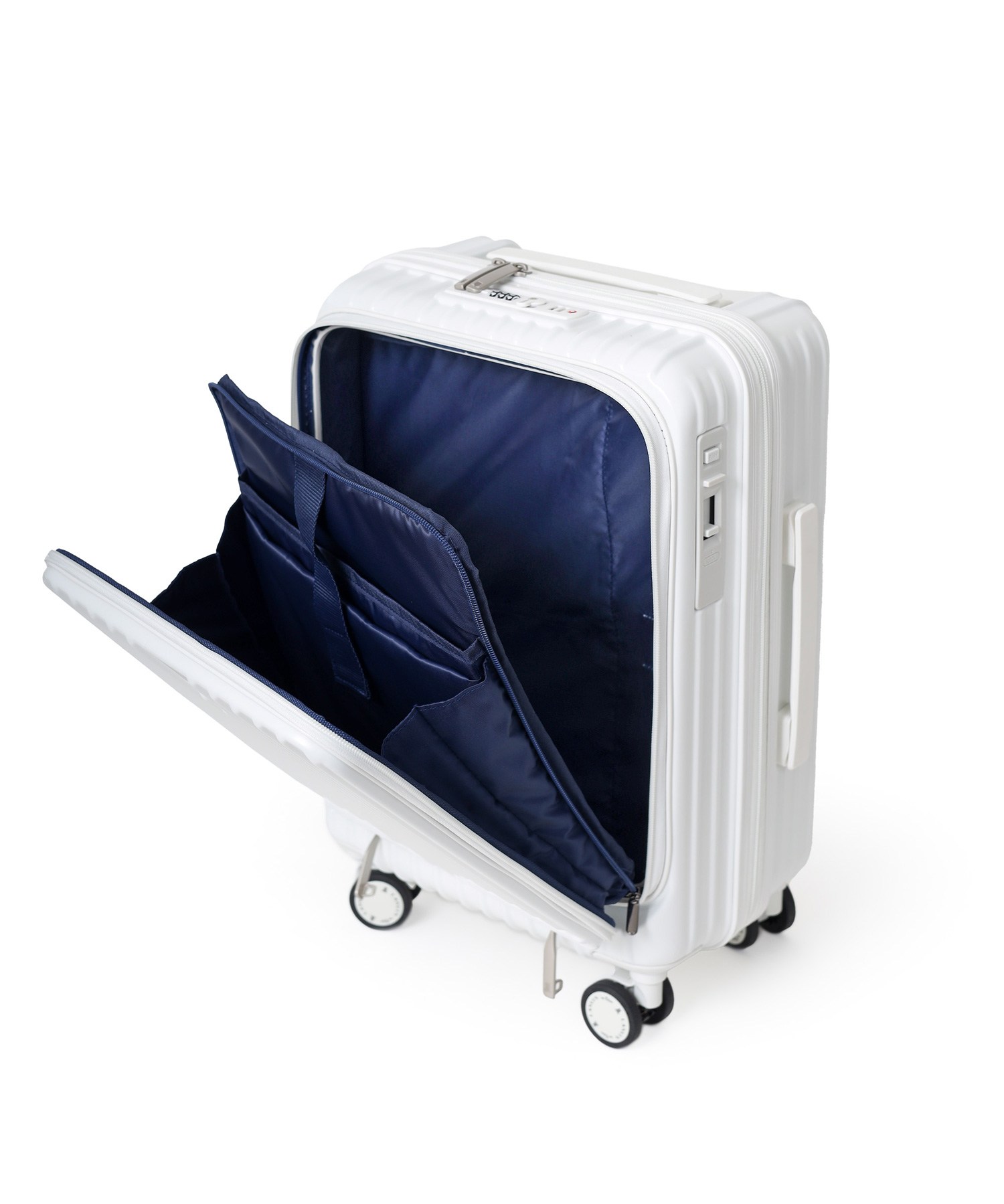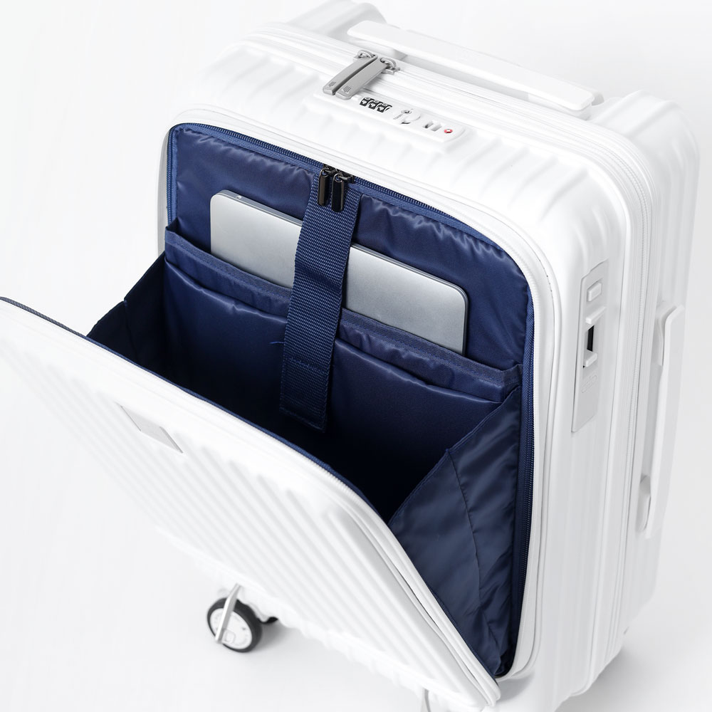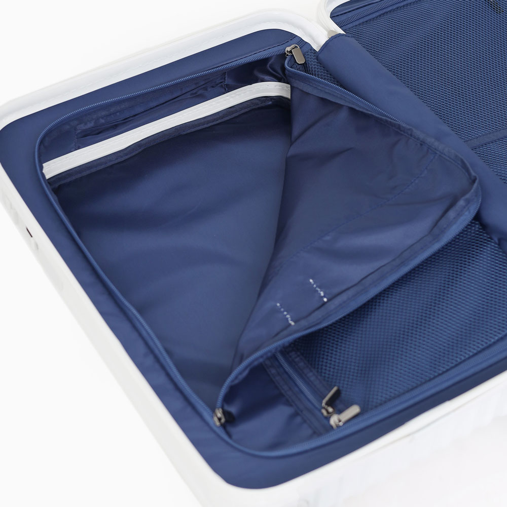 ジェンダーレスなデザインで、ブランドのアイコンが全体に施されたランバンオンブルーの機内持ち込みサイズのキャリーケース。マットな質感で上品な印象を与える仕上げが魅力で、落ち着いた雰囲気を漂わせます。さらに、フロントポケットやストッパー機能を搭載し、使い勝手も抜群です。軽量で丈夫な素材を使用しており、1~3泊の旅行に最適な機内持ち込み可能サイズです。