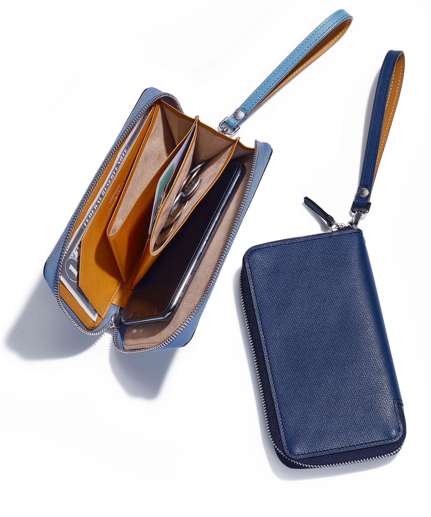 カードや小銭、お札を収納する財布としての機能はそのままに、スマートフォンの収納機能まで備えたFUJITAKA ACCESSORIES(フジタカアクセサリーズ)の財布シリーズ。