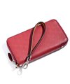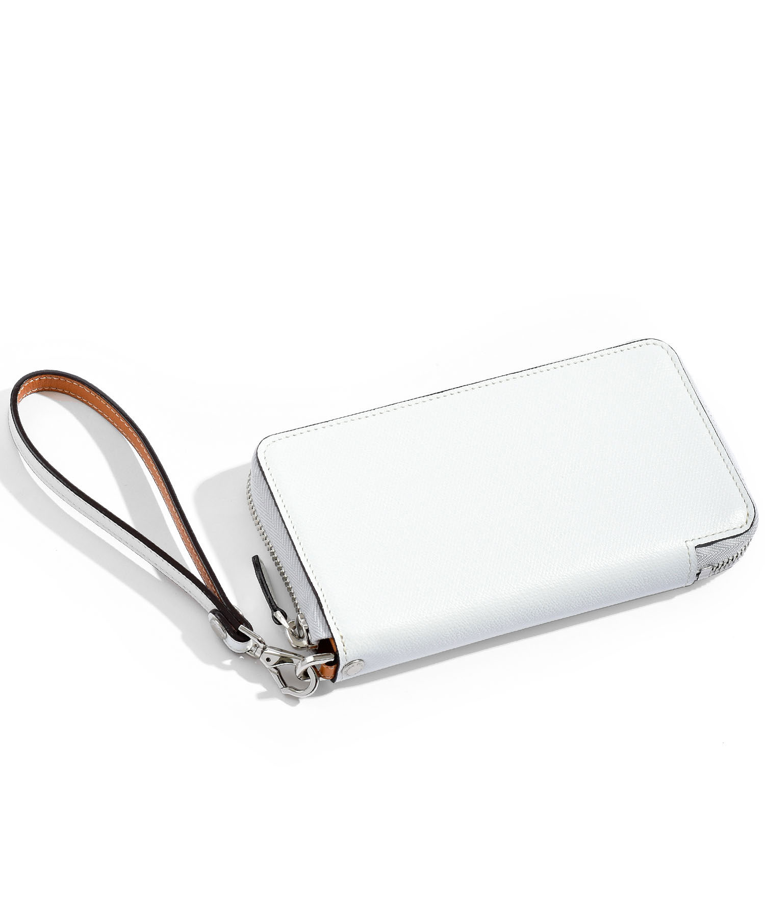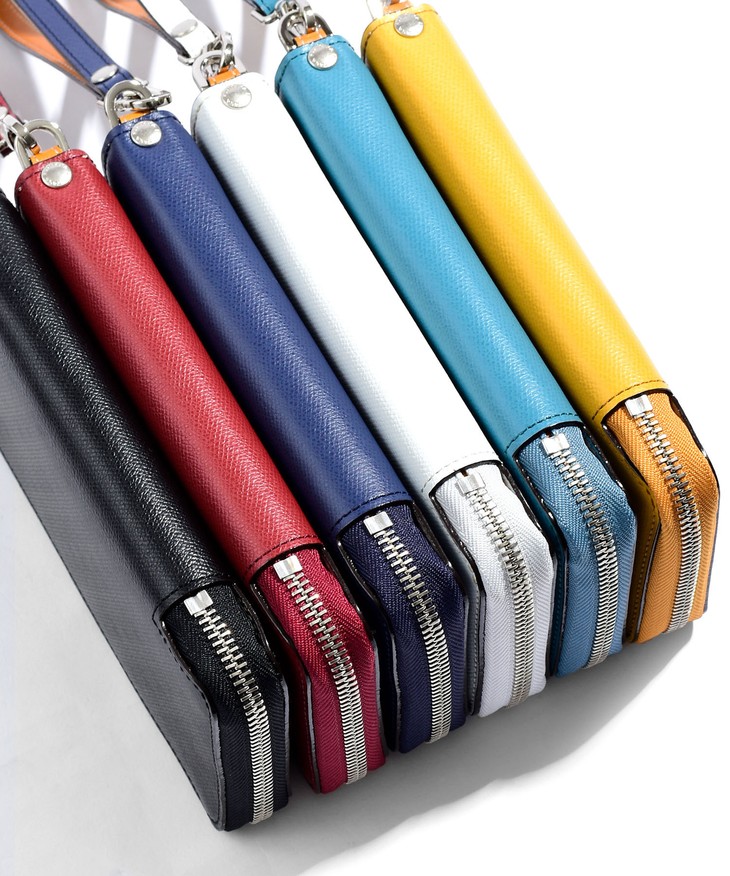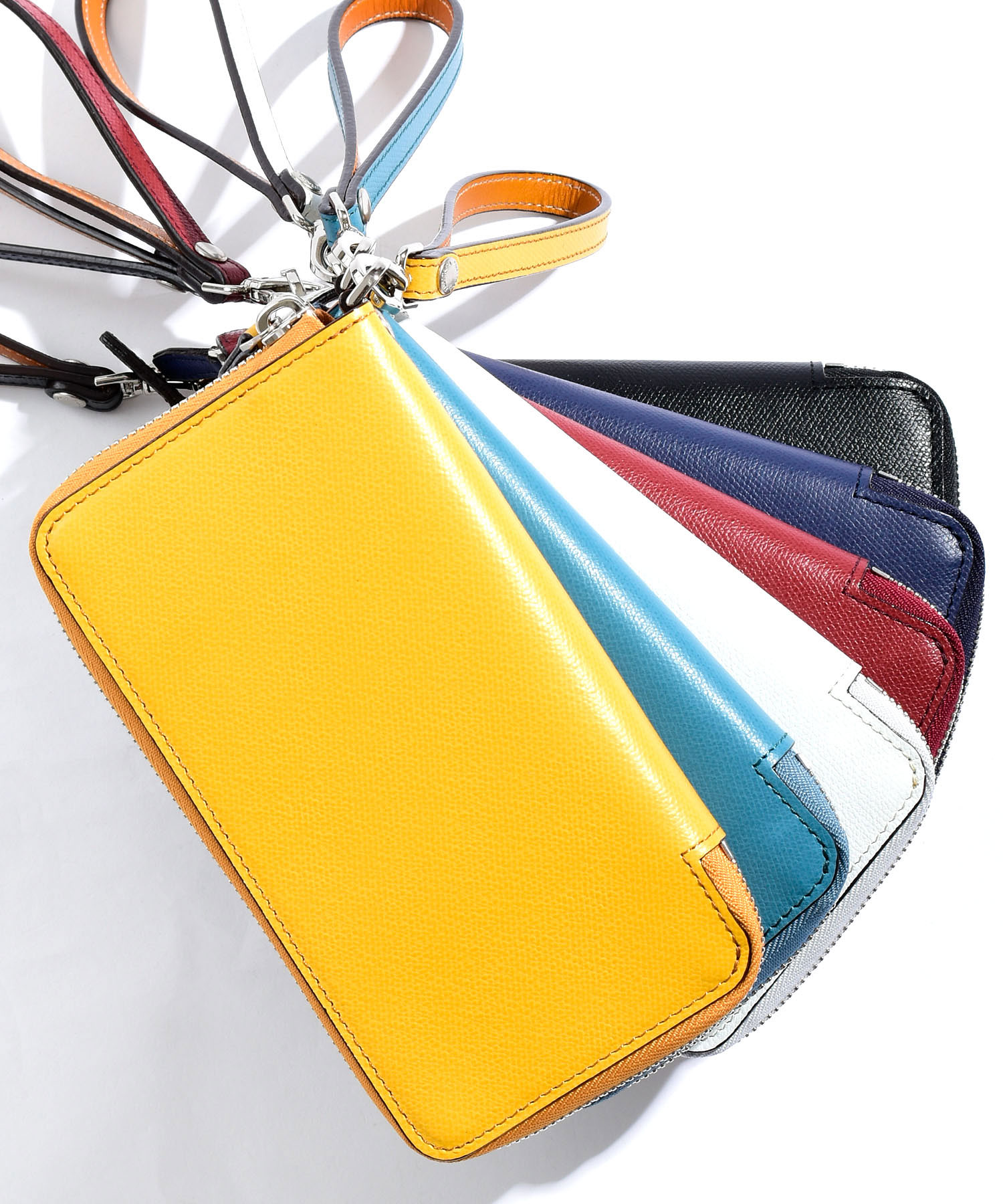 カードや小銭、お札を収納する財布としての機能はそのままに、スマートフォンの収納機能まで備えたFUJITAKA ACCESSORIES(フジタカアクセサリーズ)の財布シリーズ。着脱式のストラップ付きで、手首に通せば手に持って使用する際も安心です。