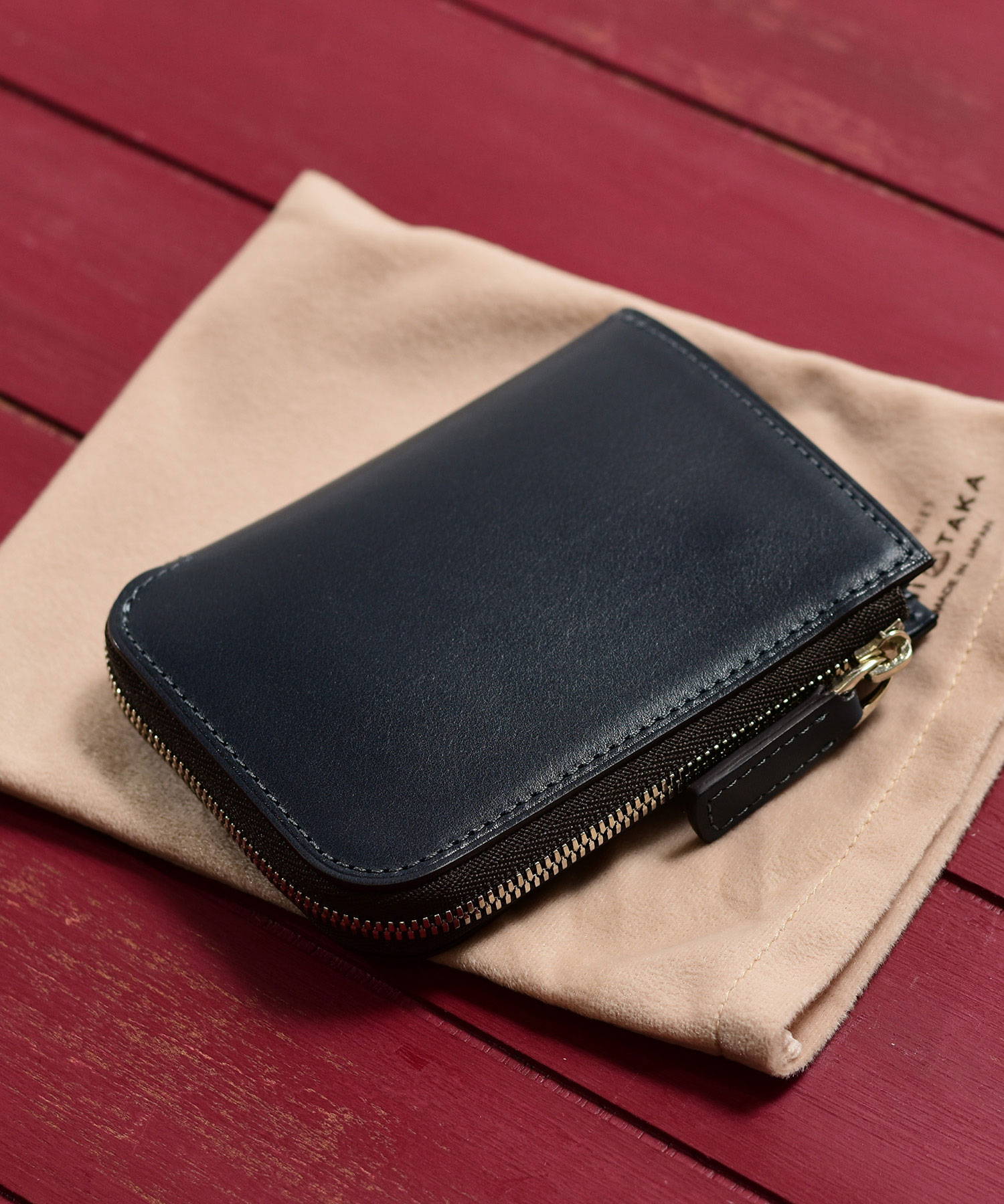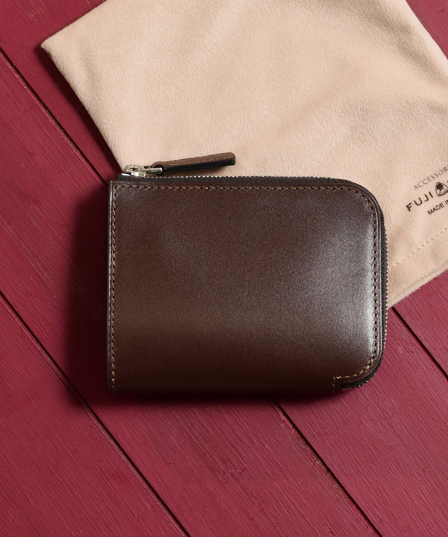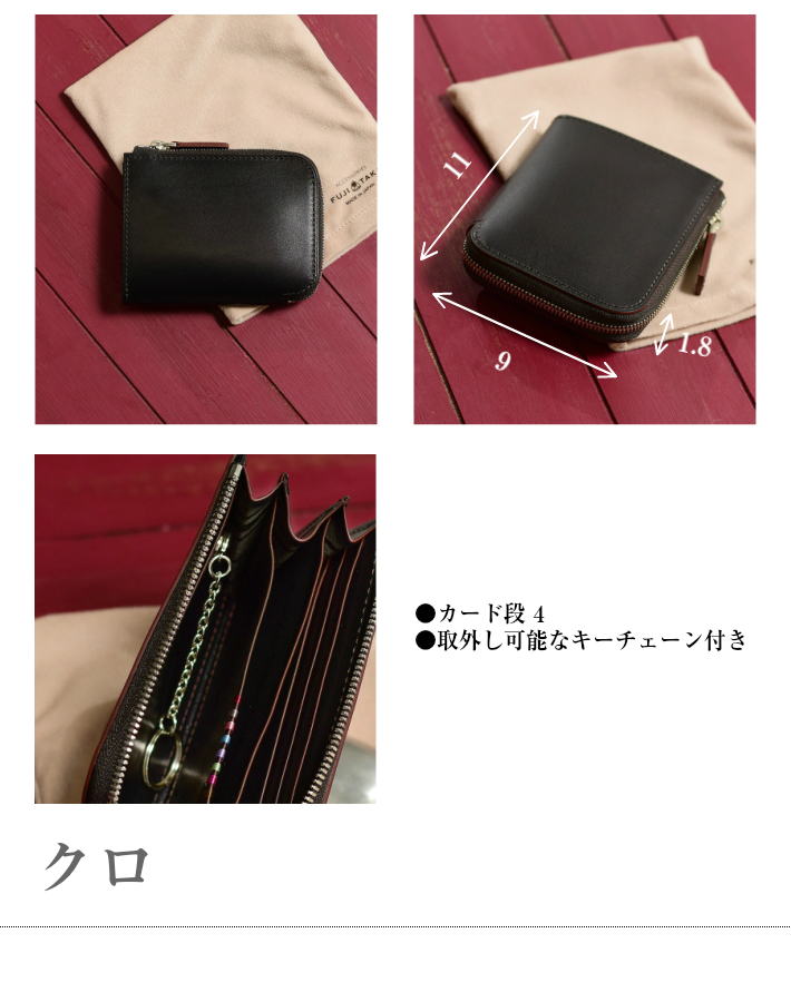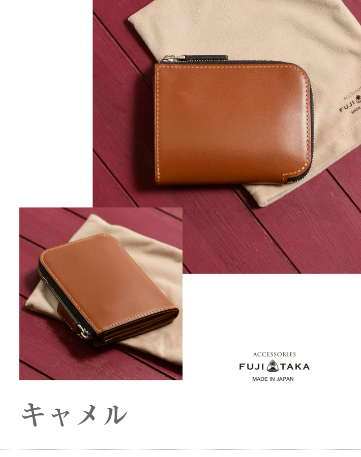 フランスデュプイ社の最高級ボックスカーフでつくられたフジタカのコンパクト財布。最高級カーフの専門タンナーであるフランスデュプイ社"シャトーブリアン"を使用し通常のボックスカーフよりも銀面が柔らかく優しいタッチ感やキメの細かい美しい肌目が魅力の財布です。