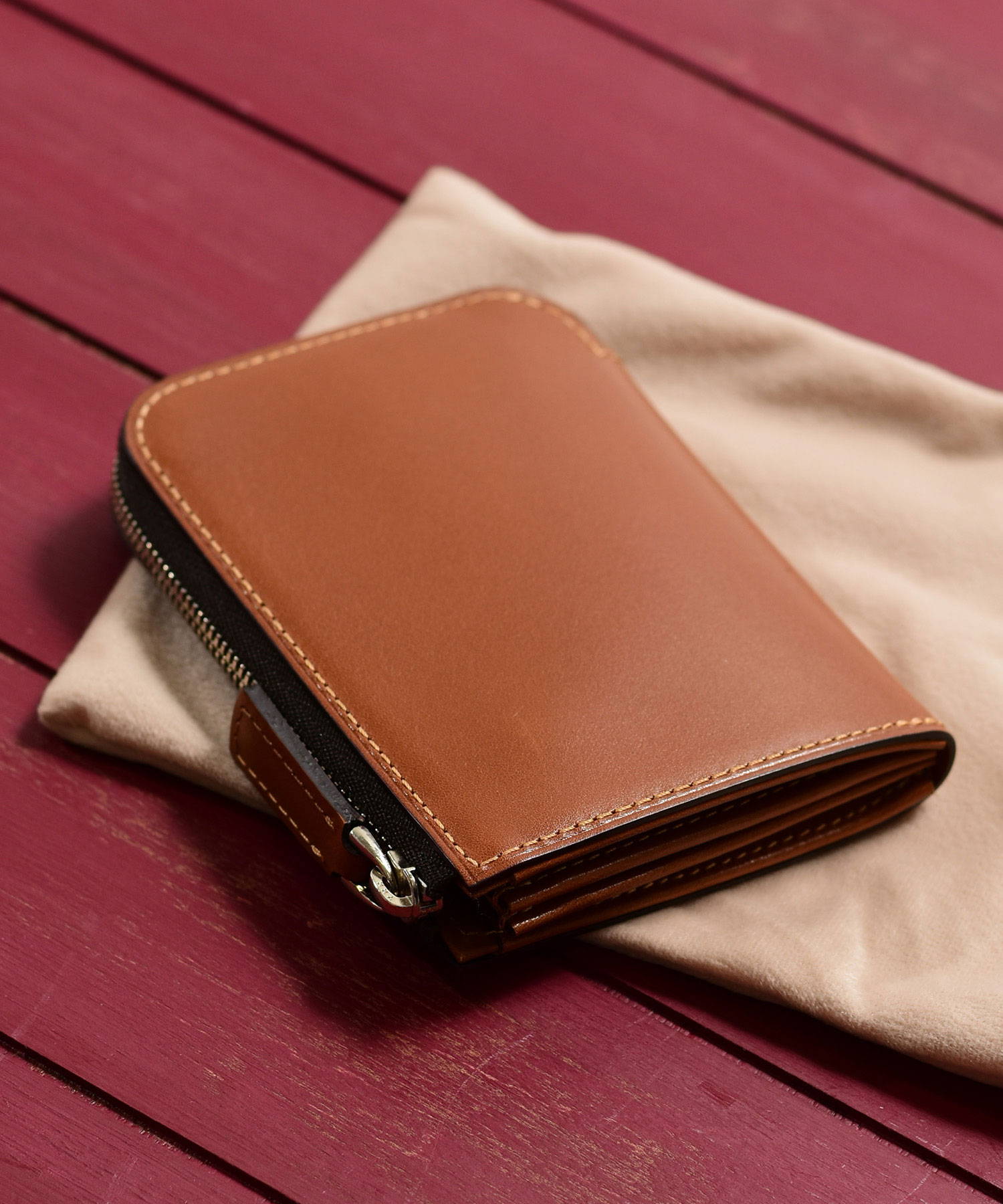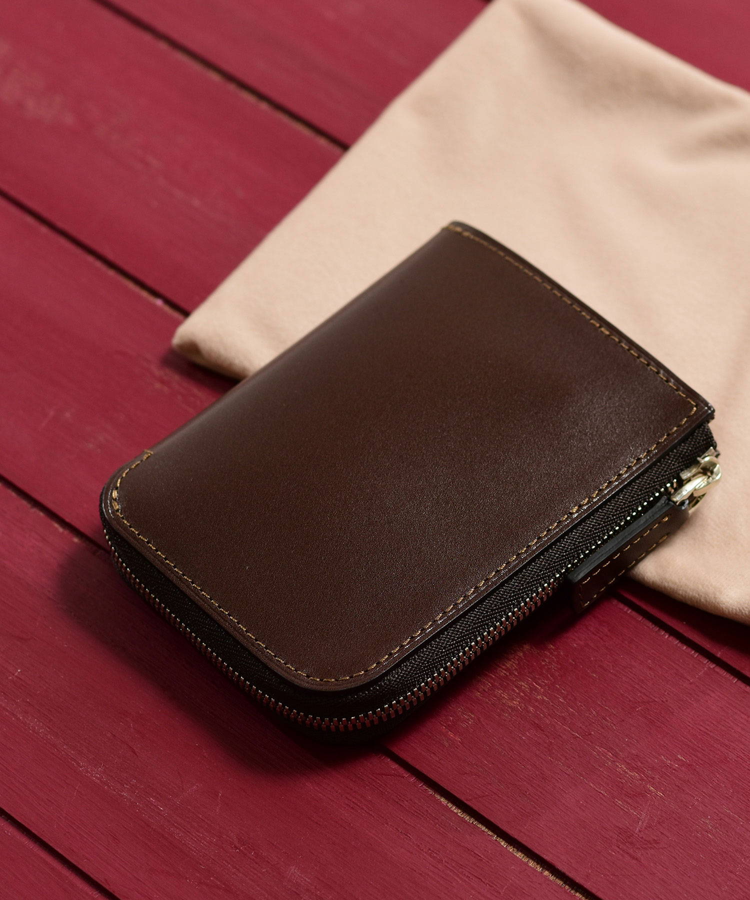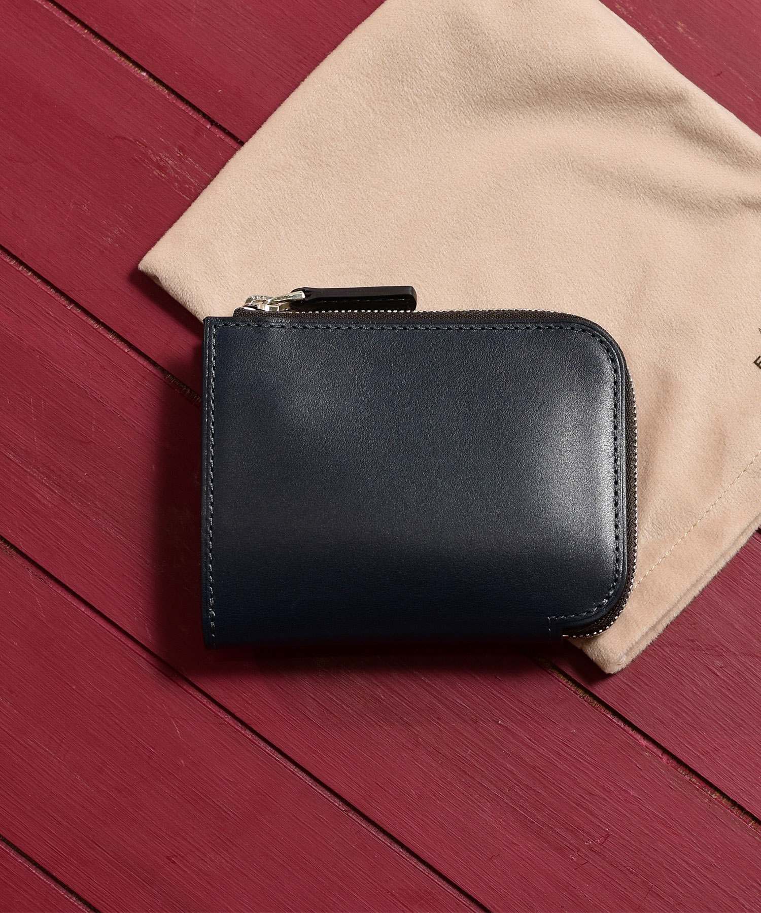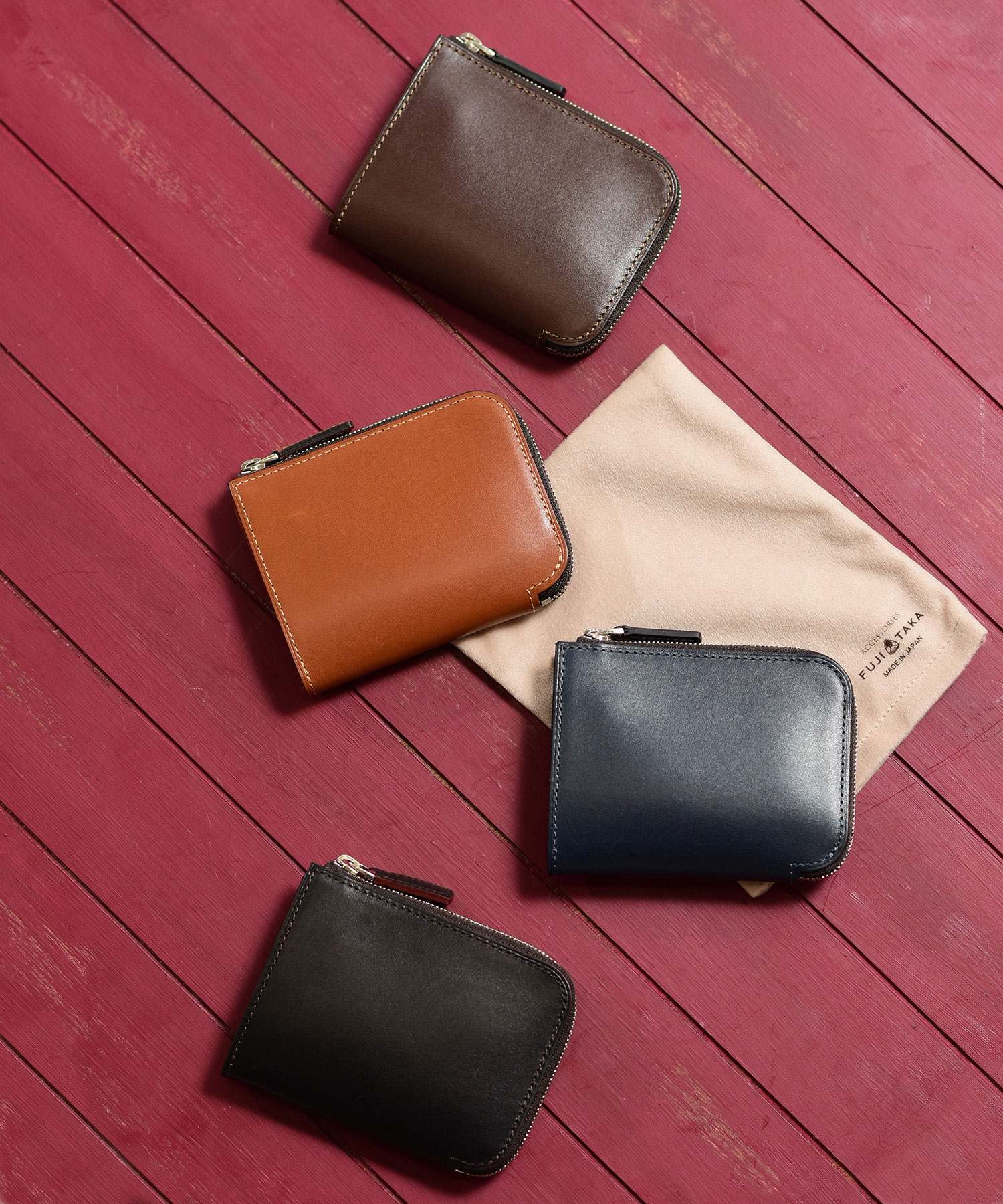 フランスデュプイ社の最高級ボックスカーフでつくられたフジタカのコンパクト財布。最高級カーフの専門タンナーであるフランスデュプイ社"シャトーブリアン"を使用し通常のボックスカーフよりも銀面が柔らかく優しいタッチ感やキメの細かい美しい肌目が魅力の財布です。