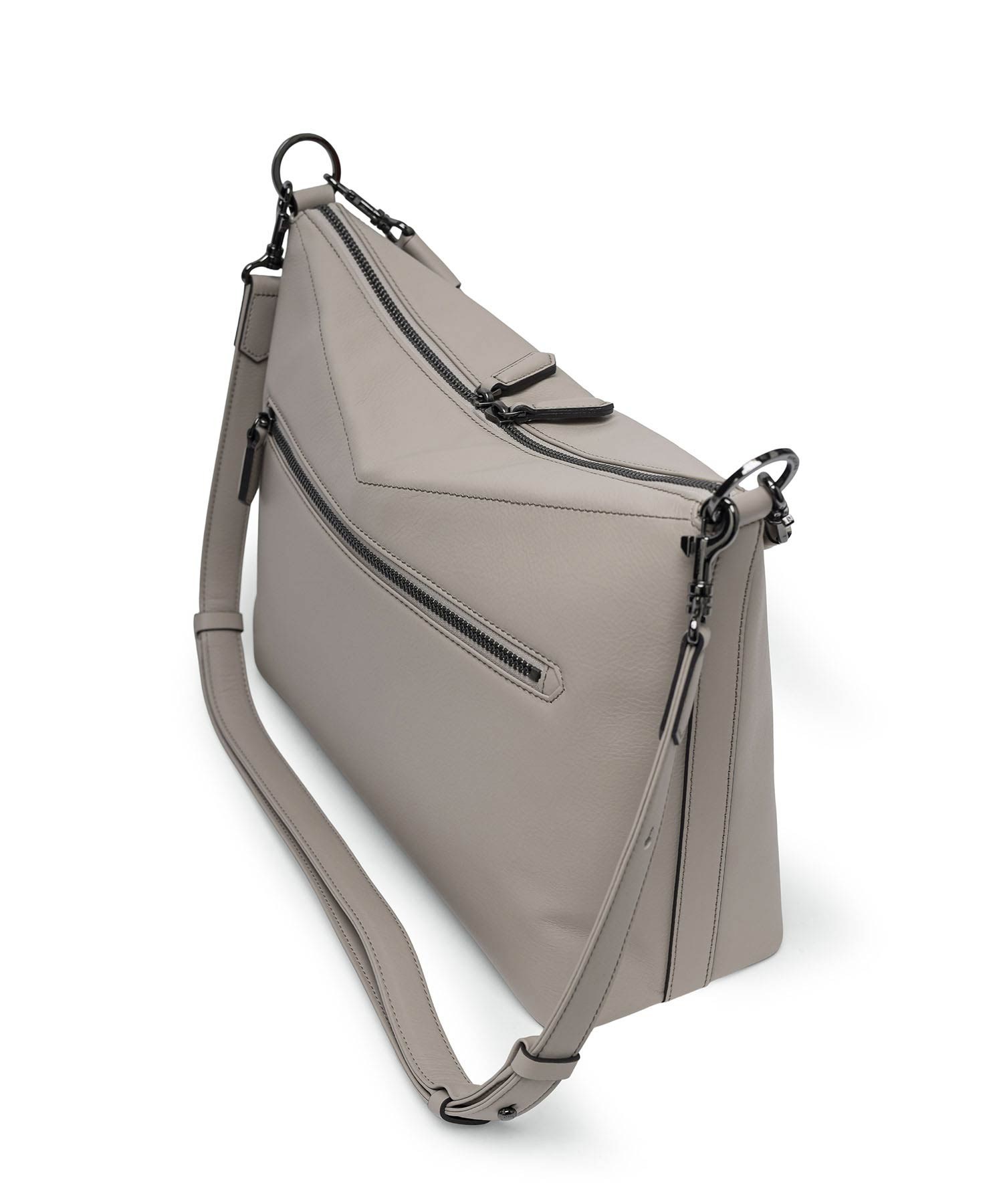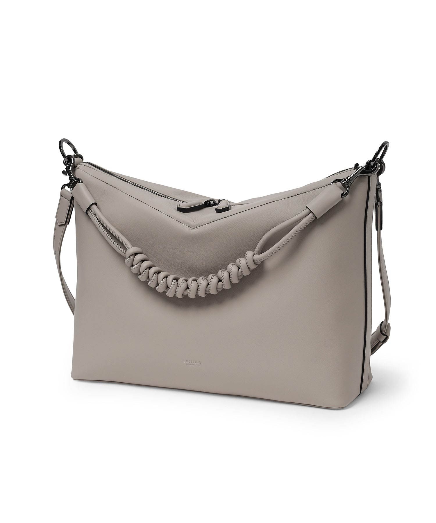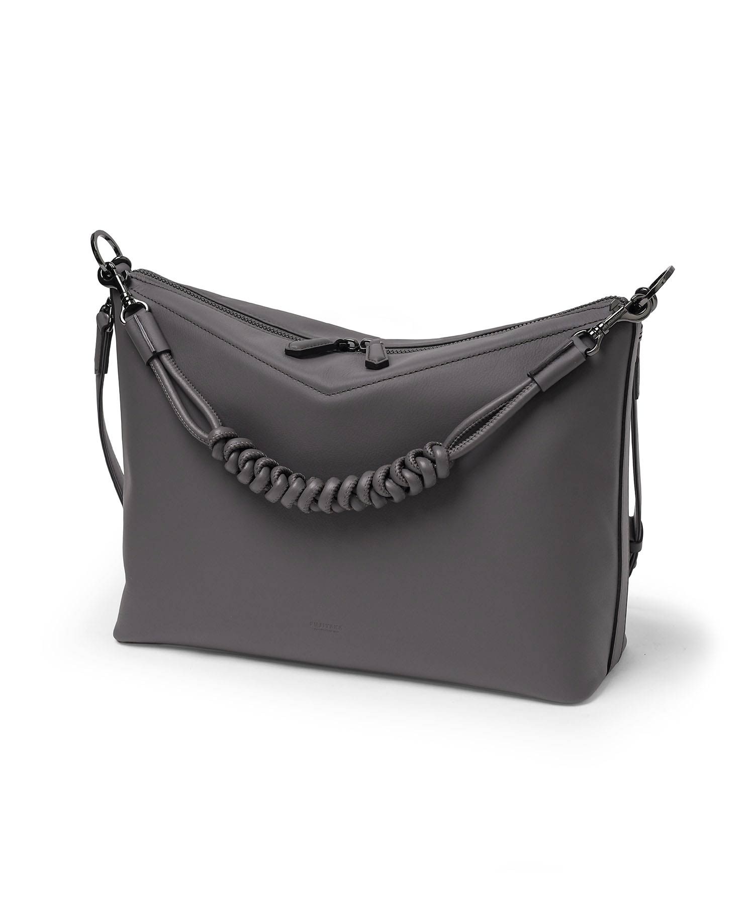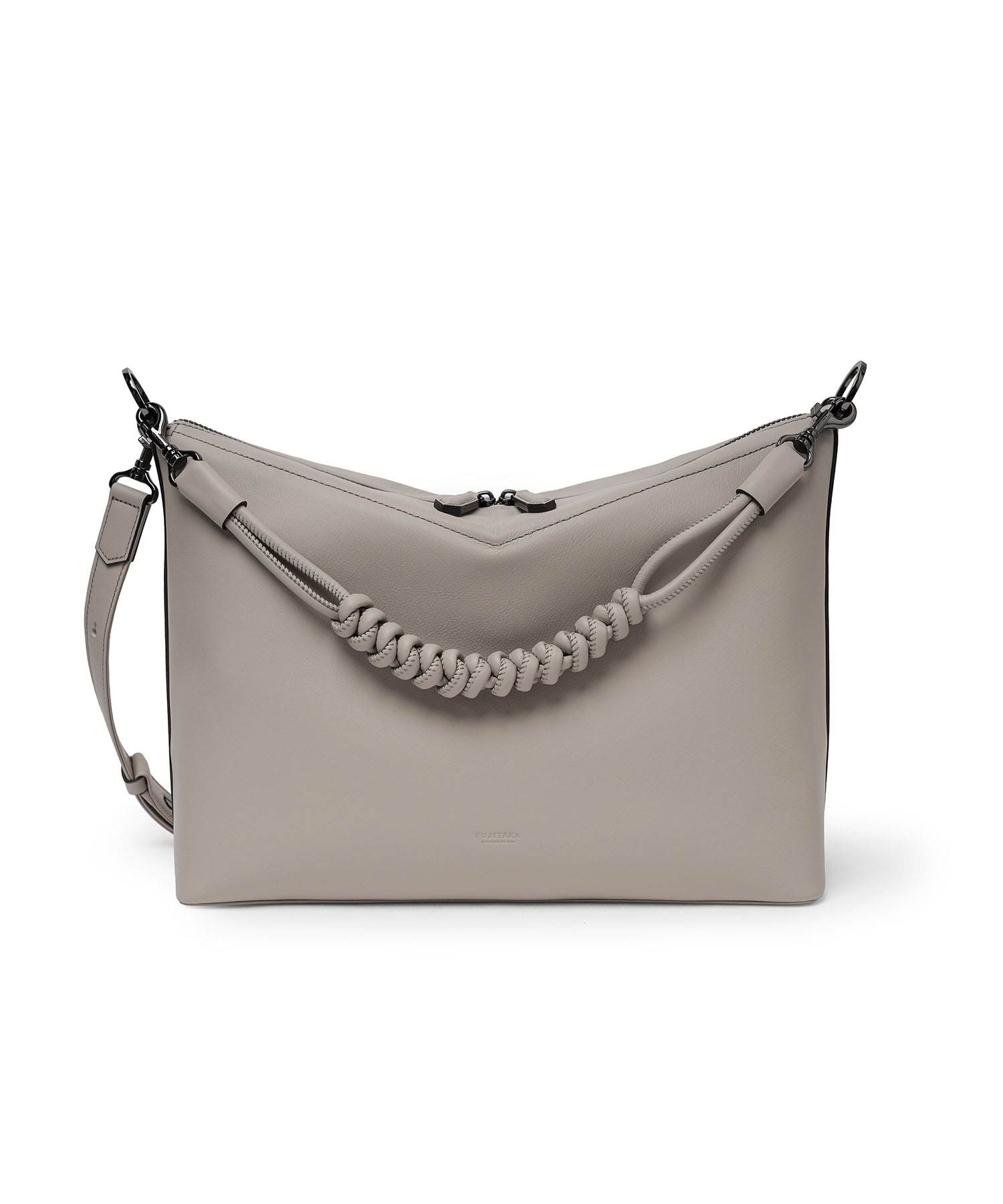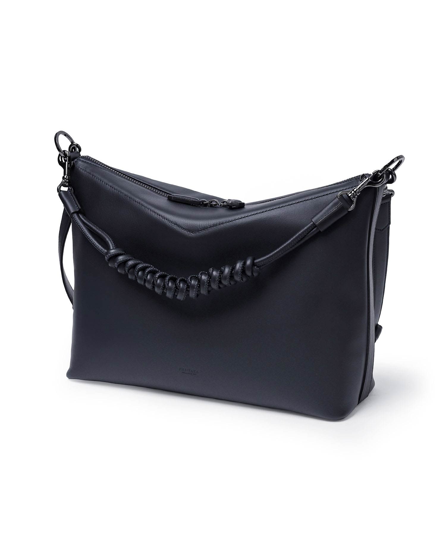 矢羽根のデザインテイストを取り入れた、フジタカのA4サイズのレザーショルダーバッグ。直線的で力強いモチーフを、上質なレザーと融合させることで、洗練された印象に仕上げています。本体には、イタリア・トスカーナ州サンタ・クローチェを拠点とするタンナーが手がける牛革を採用。柔らかく上品なシボと、なめらかな銀面が特徴で、ラグジュアリーな質感と耐久性・しなやかさを兼ね備えています。伝統と革新、そしてサステナビリティへの取り組みを背景に生まれた素材が、シリーズ全体の価値を高めています。