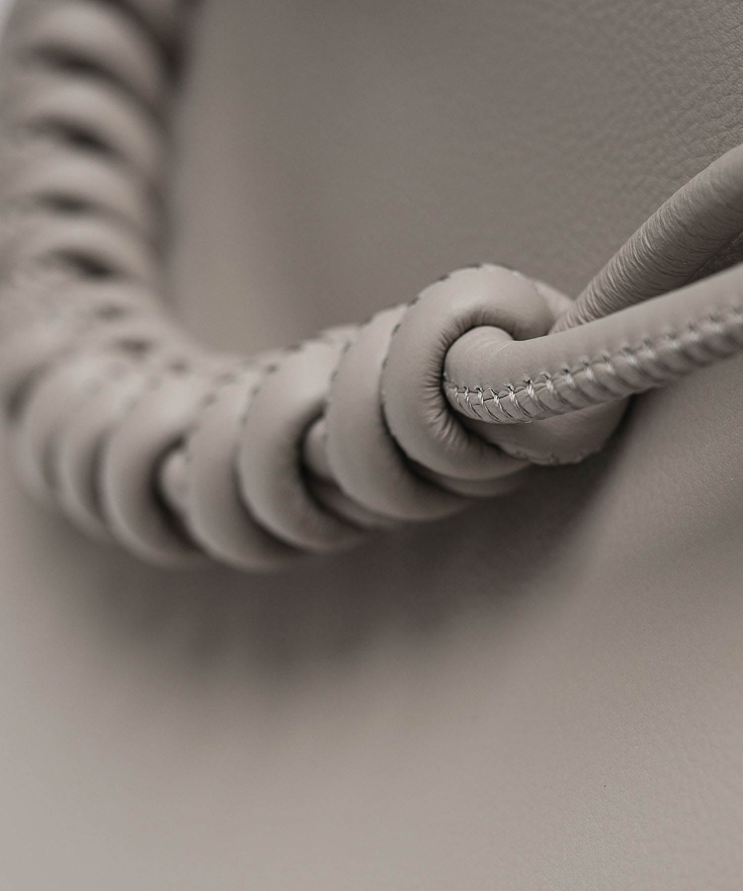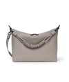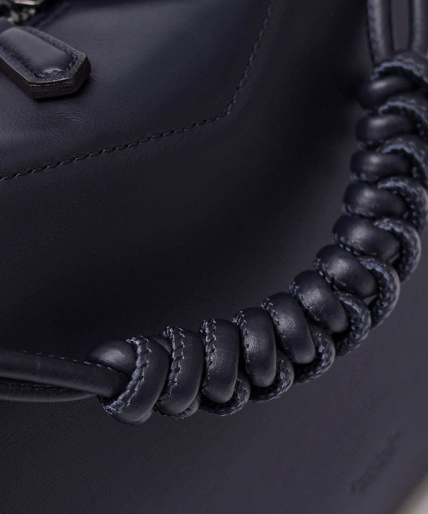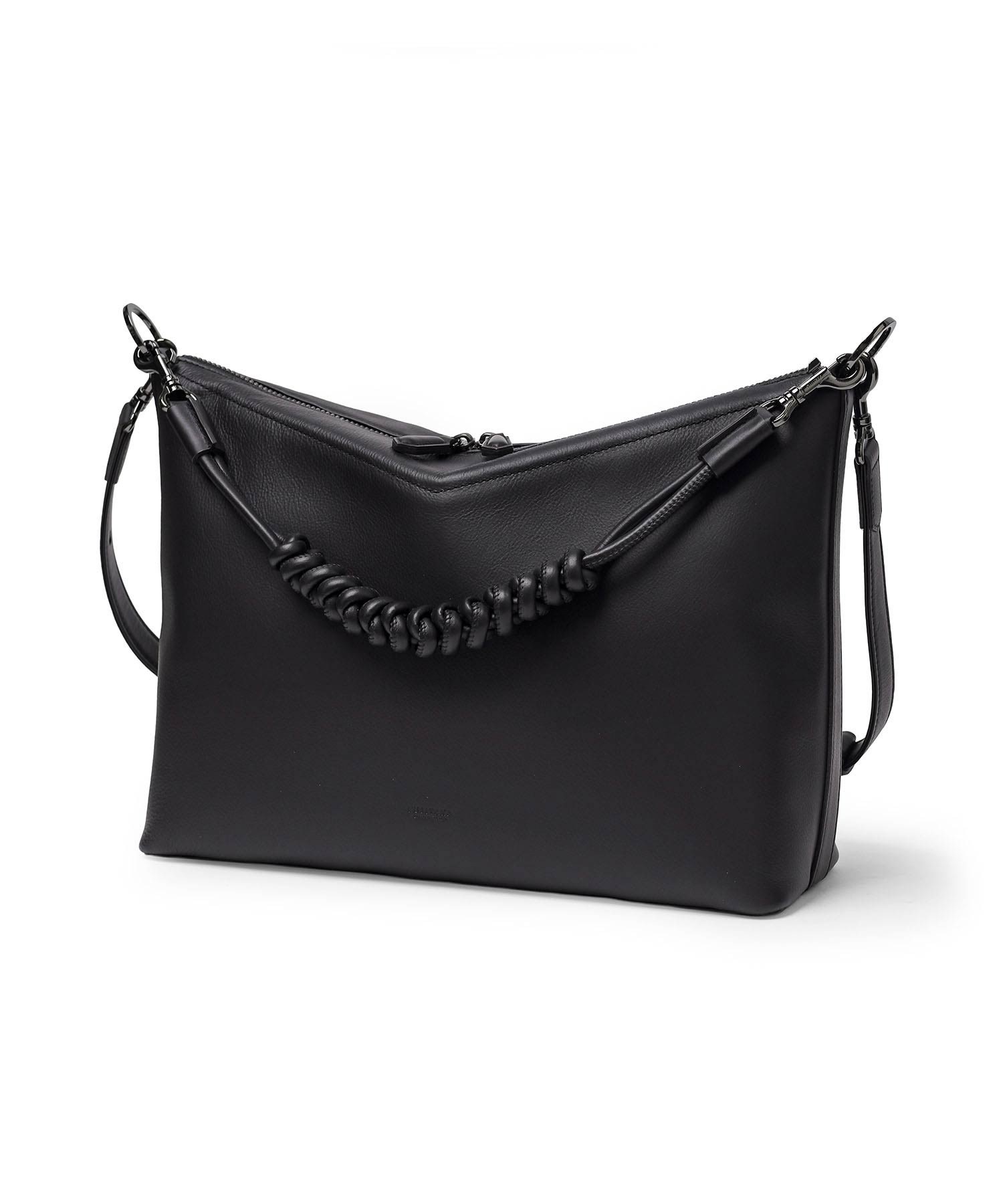 スネークノットで丁寧に編み上げたベルトは、脱着可能な仕様。アクセサリーとしても、ハンドルとしても使用できる、機能性とデザイン性を兼ね備えたディテールです。また、本体トップや引手、ショルダーベルトには、今季のコンセプト柄である〈矢羽根〉をイメージしたカットを施し、統一感のあるデザインに仕上げています。コンパクトながら長財布が収まる設計で、必要な荷物をスマートに持ち運べます。