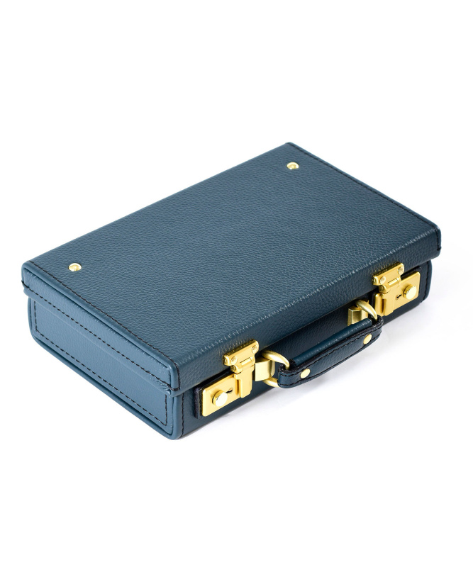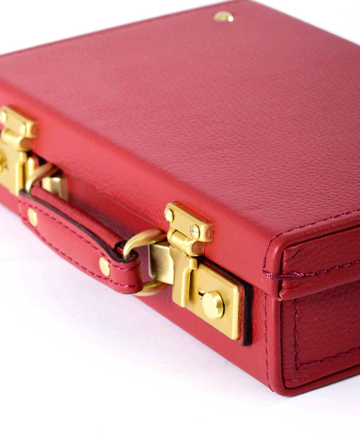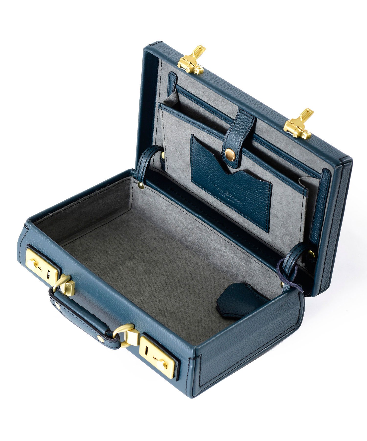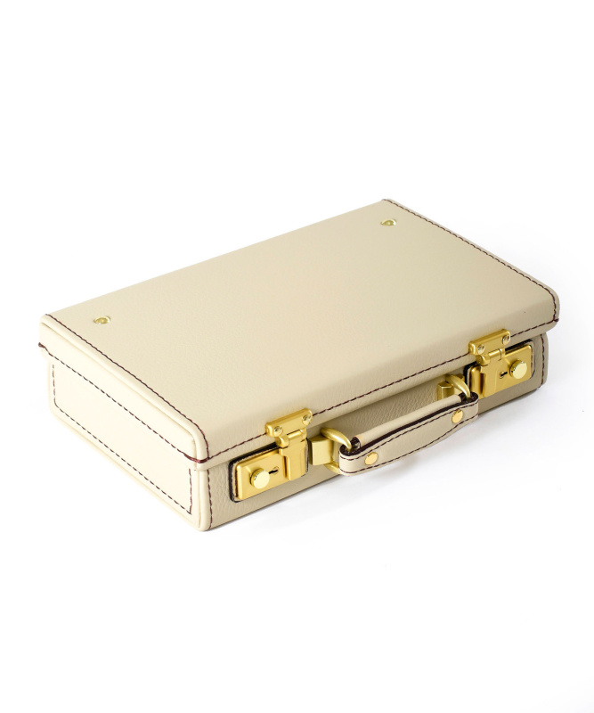 従来にない強靭なレザーを使用した長く使い続けることができるFUJITAKAのレザーミニトランク。財布がちょうど収まるコンパクトなサイズ感。内装にはマチ付きのポケットとカードサイズポケットが装備されています。キーサック付きでトランクを施錠するための鍵も2つ付属しています。