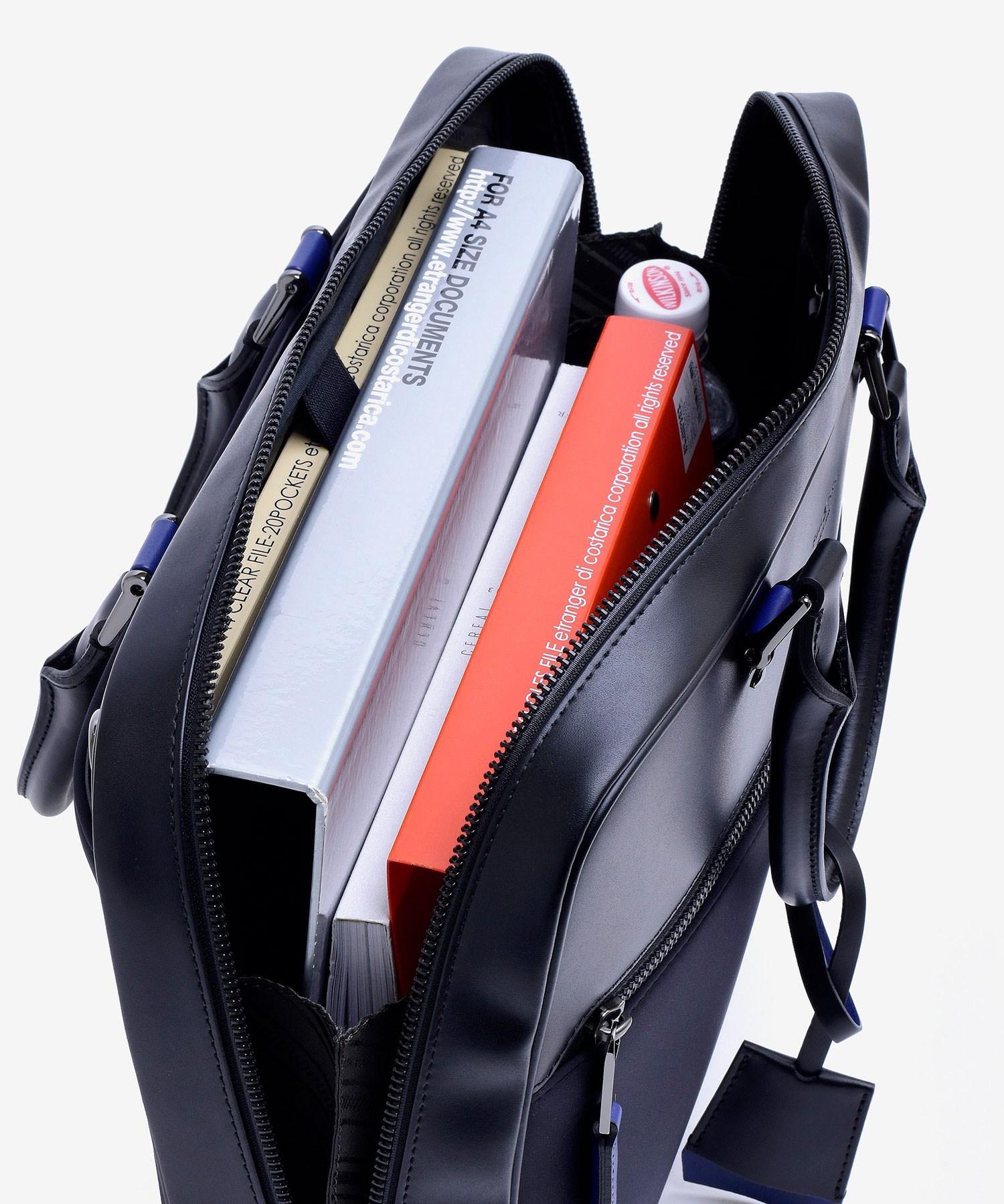 主素材の防水性も含め雨の日でも安心してお使いいただけるビジネスバッグです。