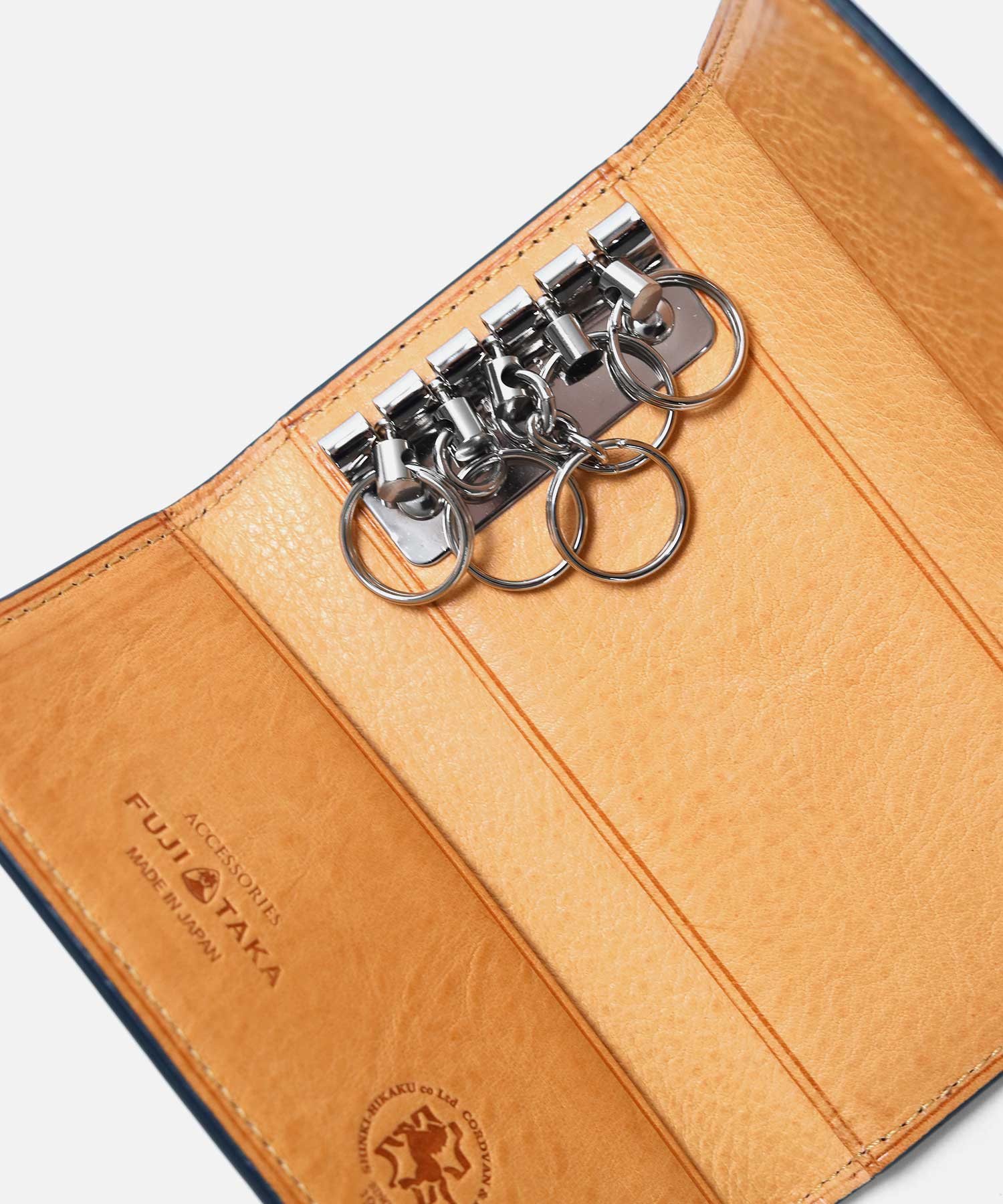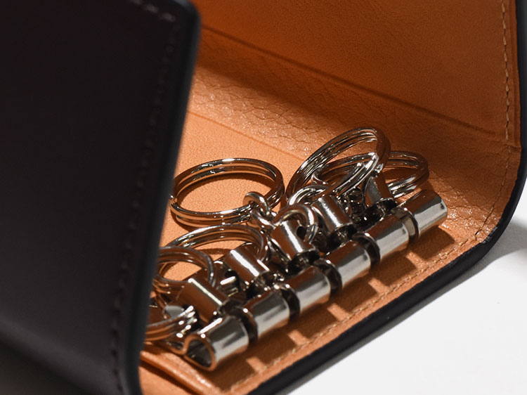 それまでの過程とその後の永い革との付き合いを楽しんでいただけるコードバン素材のキーケースです。