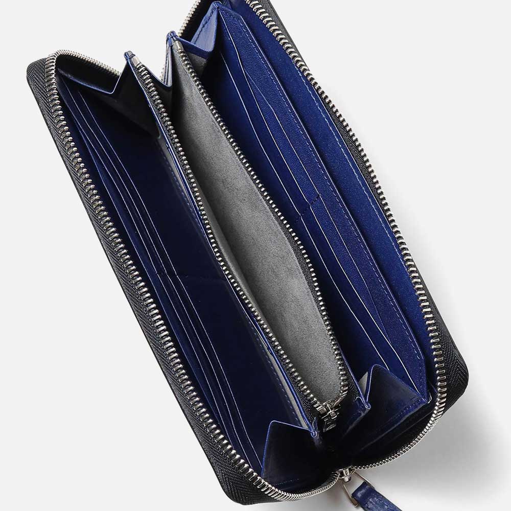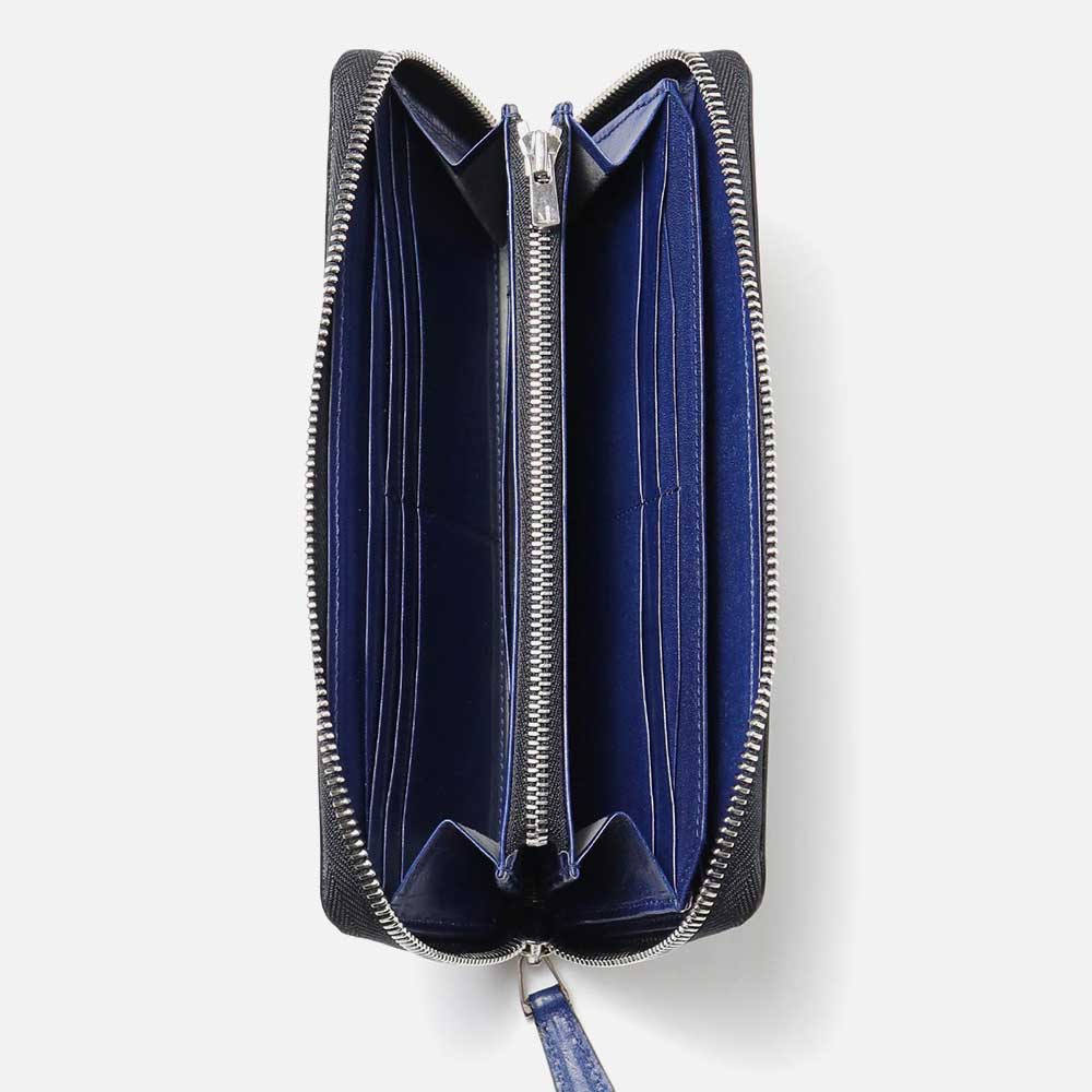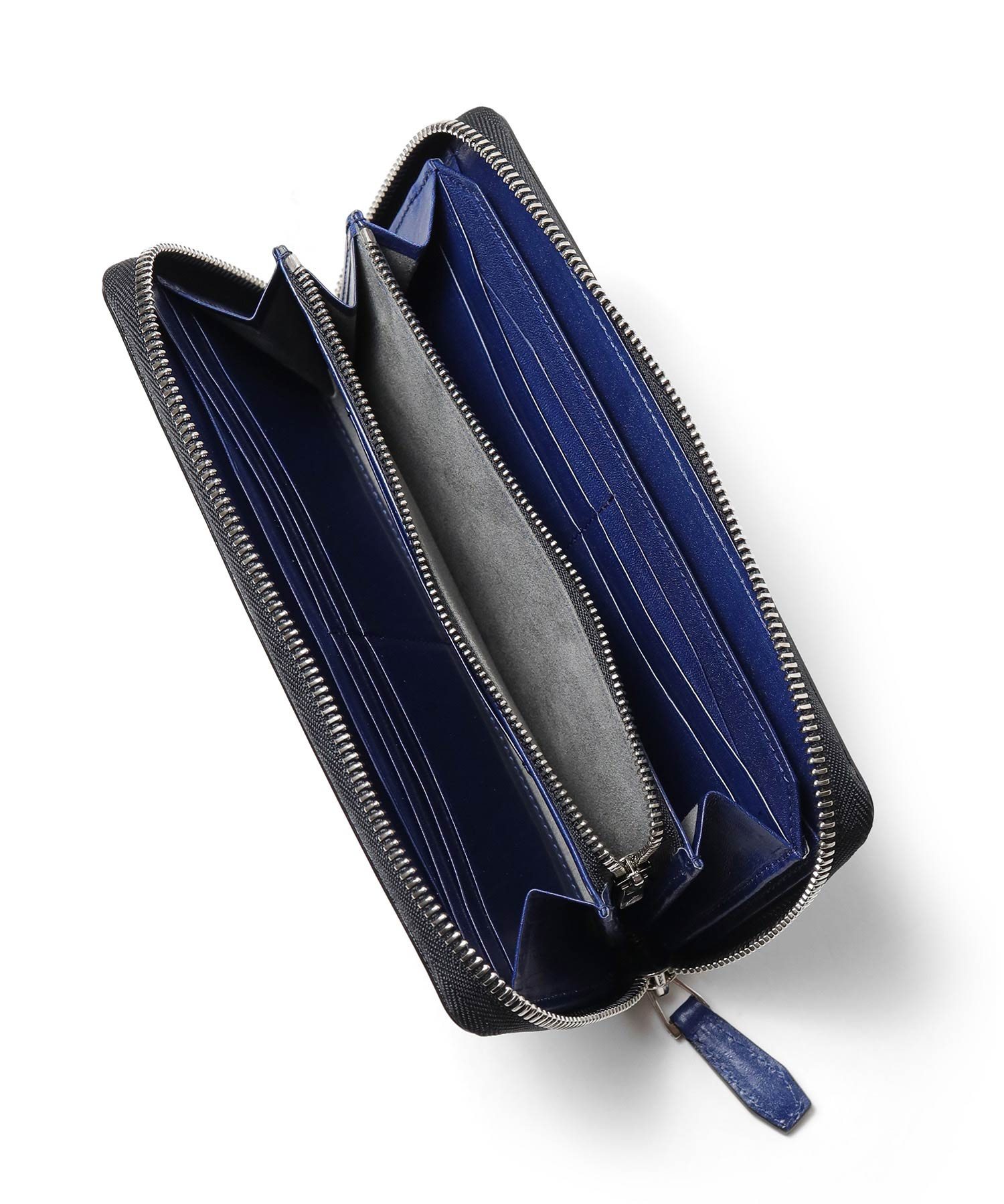 風琴マチを付けた札入れに、豊富なカード収納スペース、幅広のファスナーを採用した、容量・耐久性にも優れたラウンドファスナー長財布です。札入れが2室、ファスナー式小銭入れ、カード段が13あります。