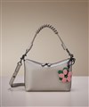 「富士」に宿る五象のひとつである“桜”をテーマに、フジタカらしい上質さで仕立てたレザーバッグチャームシリーズ。本体革はフランスで創業100年を誇り、海外の有名メゾンでも使用されているゴートレザーを使用。世に出回るゴートレザーはクロム鞣しが大半ですが、同タンナーのものは手間のかかるタンニン鞣しで仕上げることで肉厚でコシのある仕上がりが特徴です。またタンニン鞣しの為、使い込むことでツヤの経年変化が楽しめます。背面には白ヌメ革を使用しています。