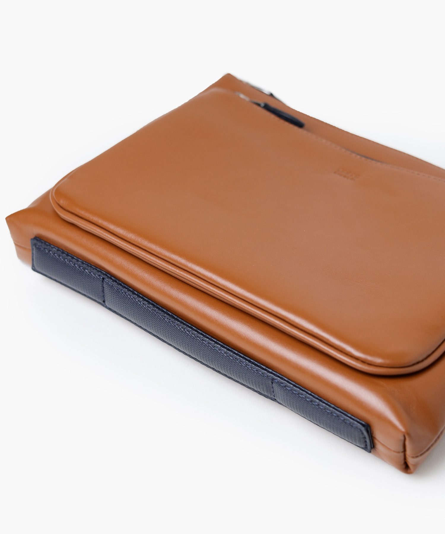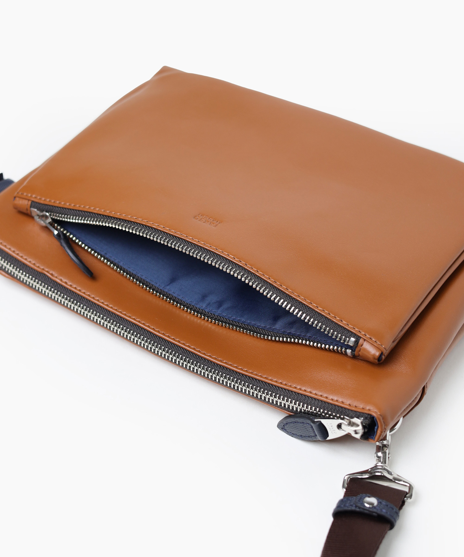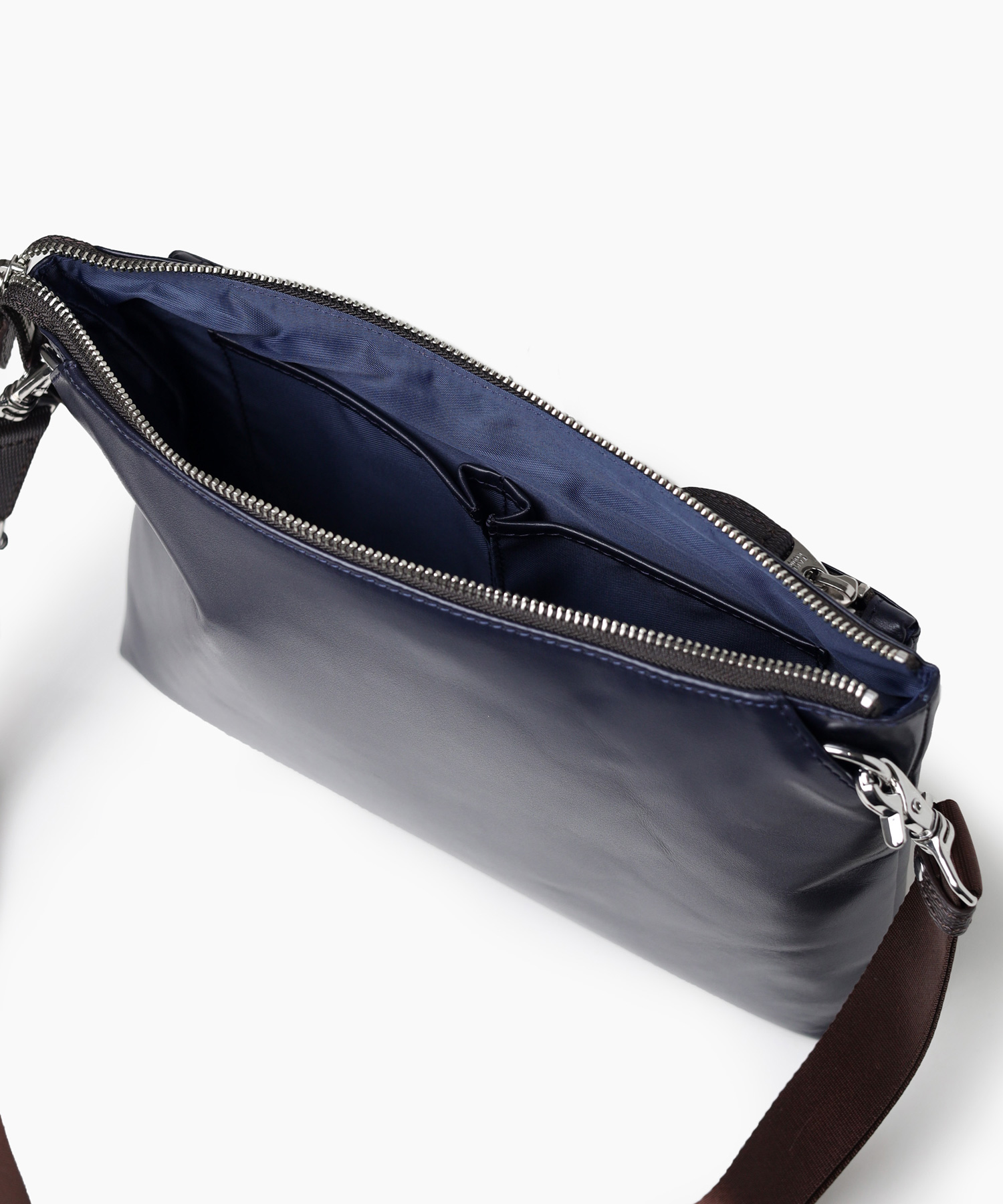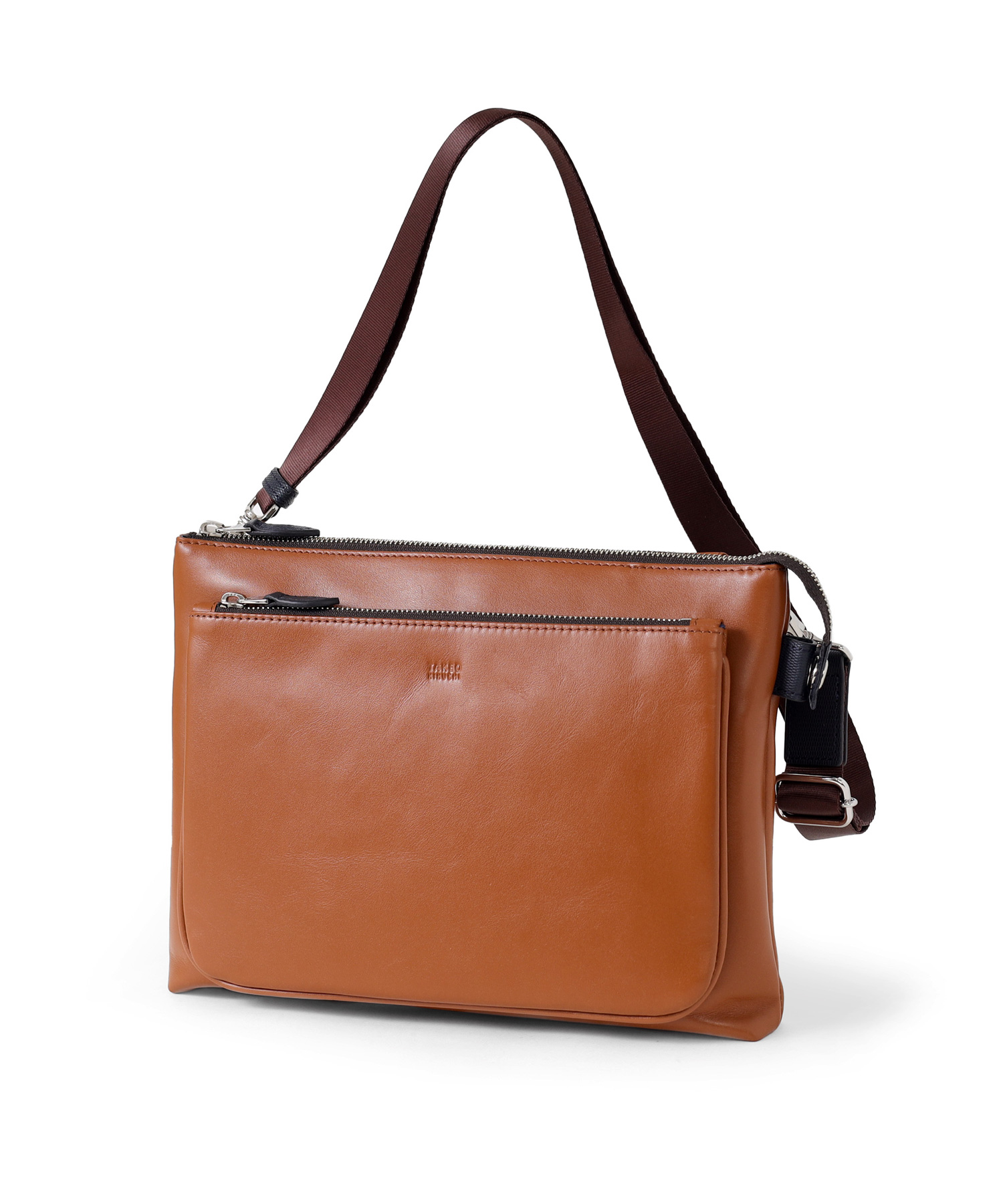 ミニマルでシンプルな無駄をそぎ落したデザインのB5サイズのレザーショルダーバッグ。発色が鮮やかなイタリアンレザーを使用し、豊富なカラーバリエーションと軽さが特徴です。