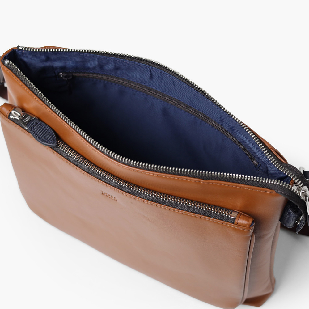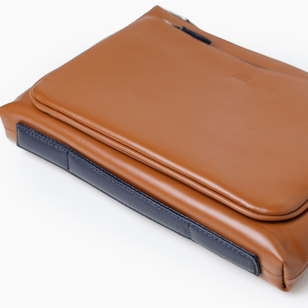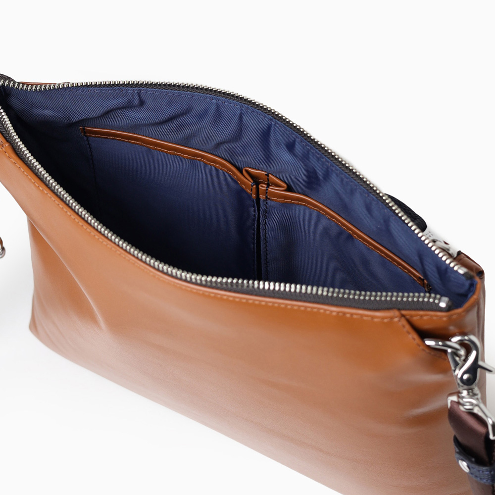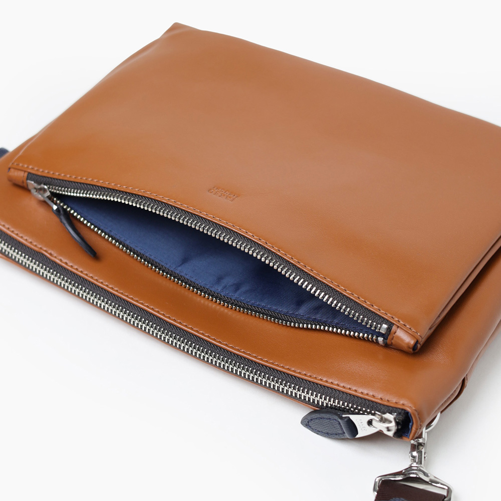 ミニマルでシンプルな無駄をそぎ落したデザインのB5サイズのレザーショルダーバッグ。発色が鮮やかなイタリアンレザーを使用し、豊富なカラーバリエーションと軽さが特徴です。