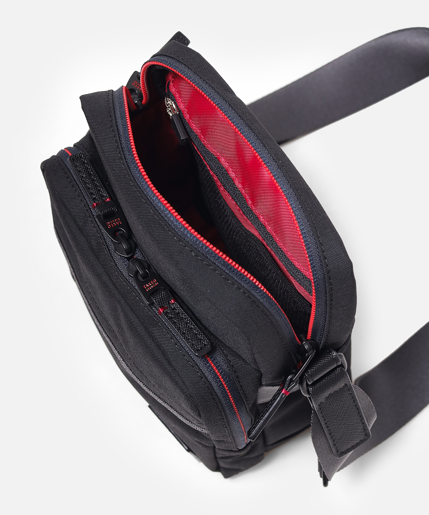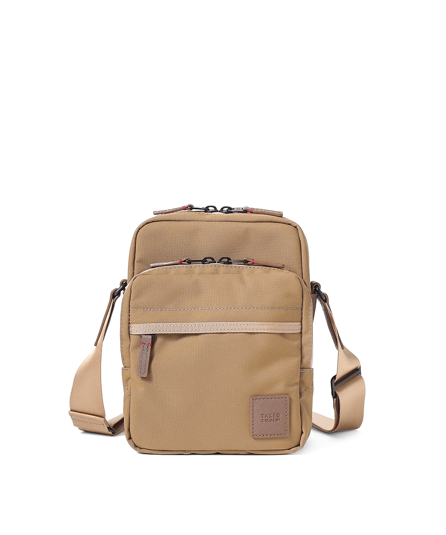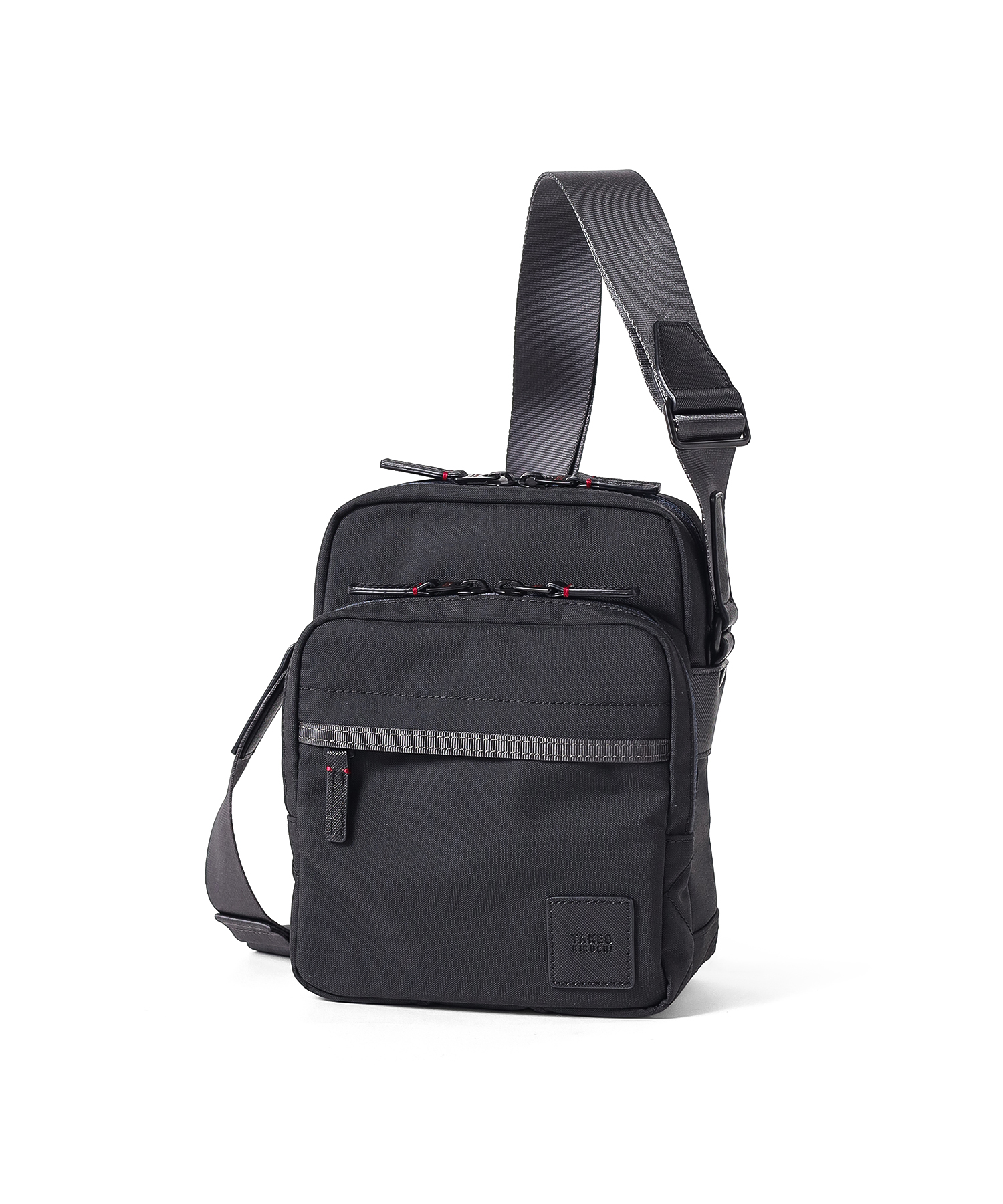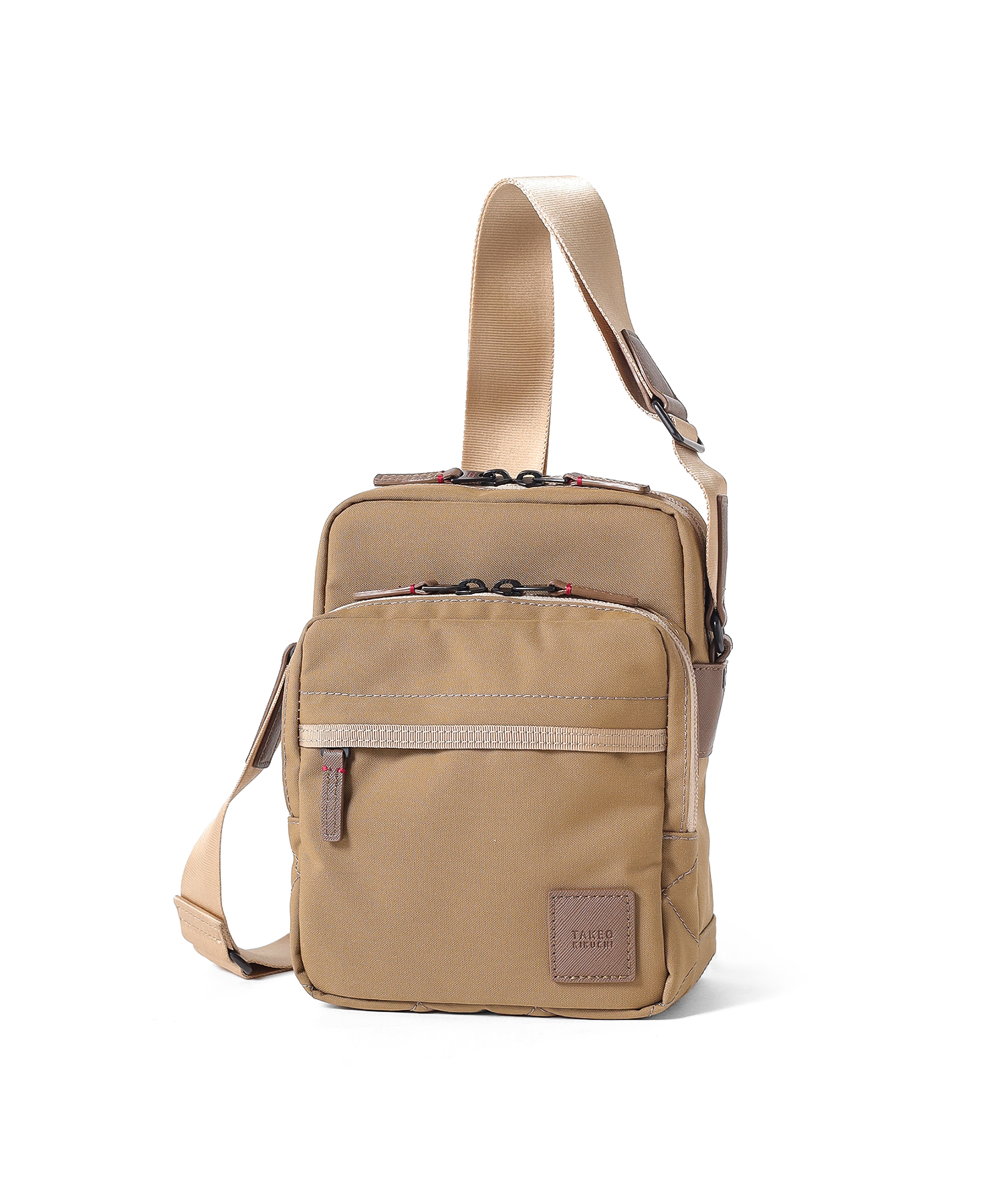 タケオキクチの軽くて丈夫でサスティナブルなコーデュラナイロン「トゥルーロックファブリック」を使用したミニショルダーバッグ。様々な環境に対応できる素材を使っており、タウンユースからトラベルまで幅広く使えます。