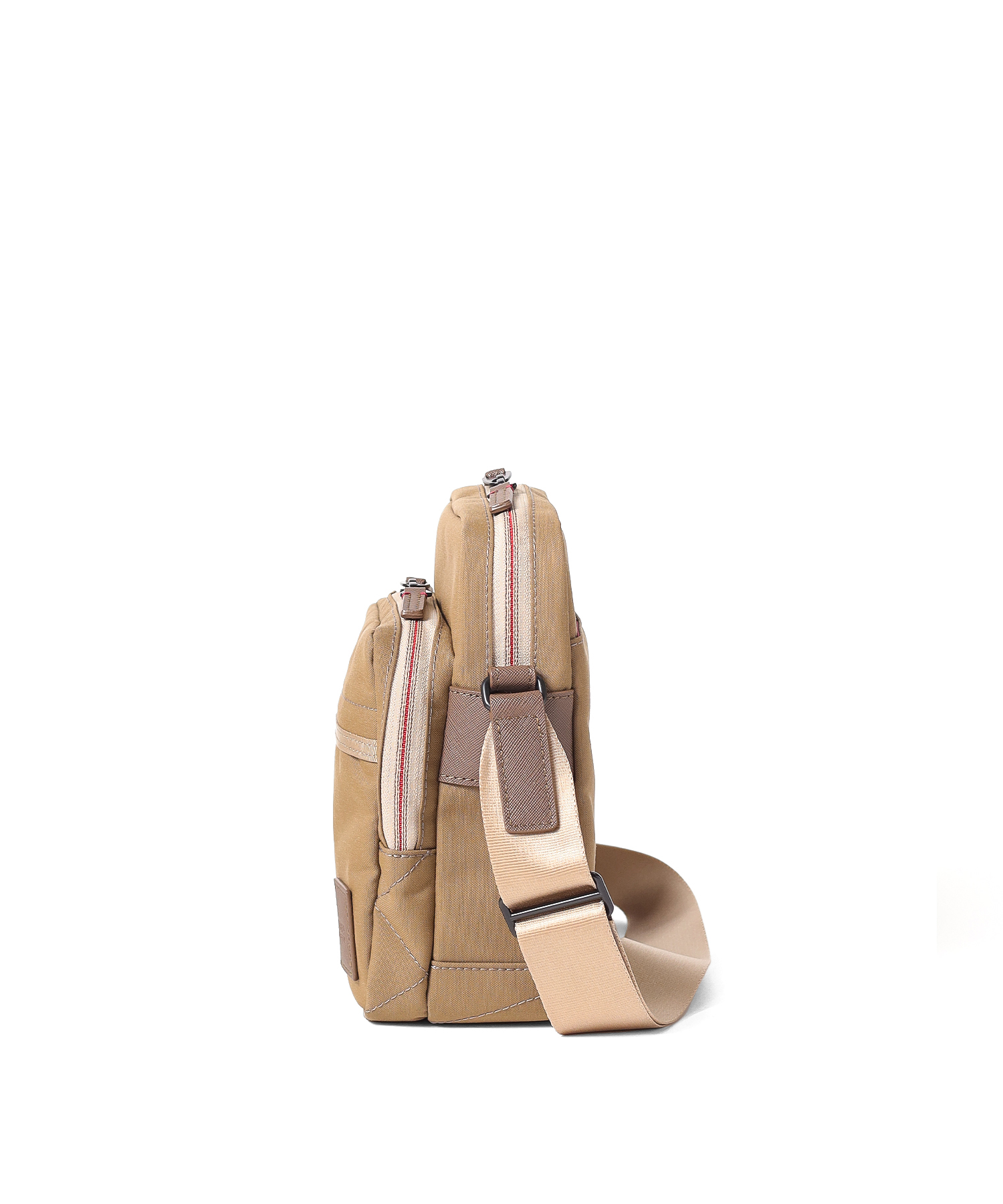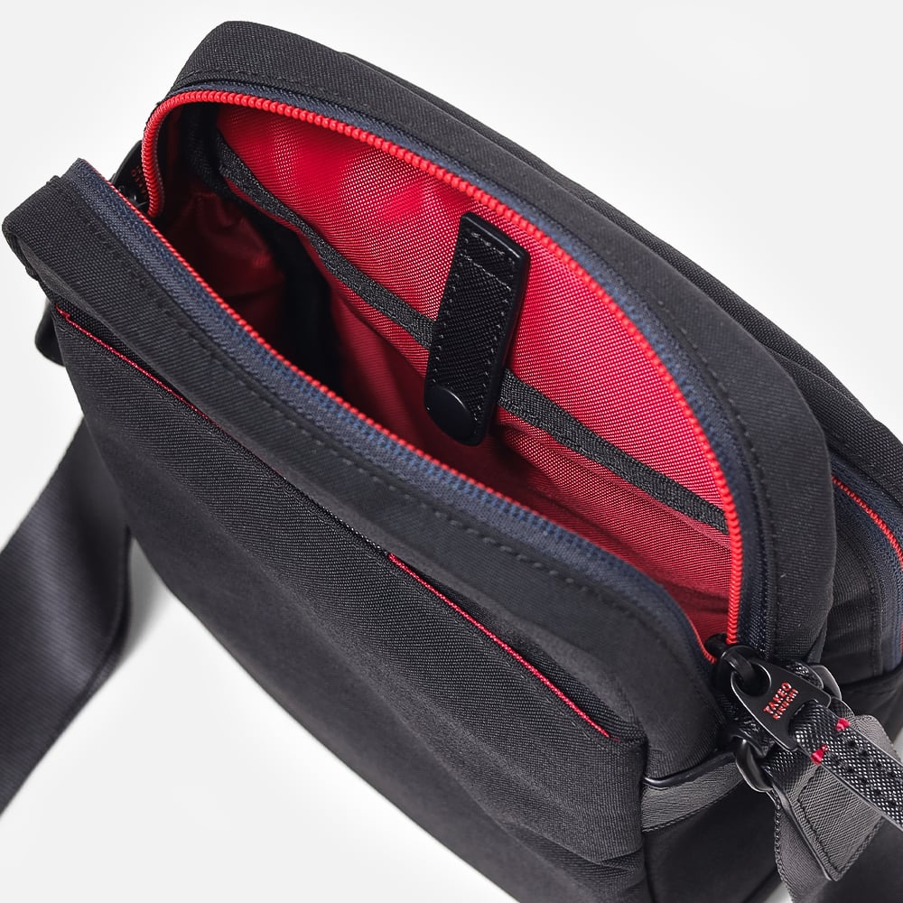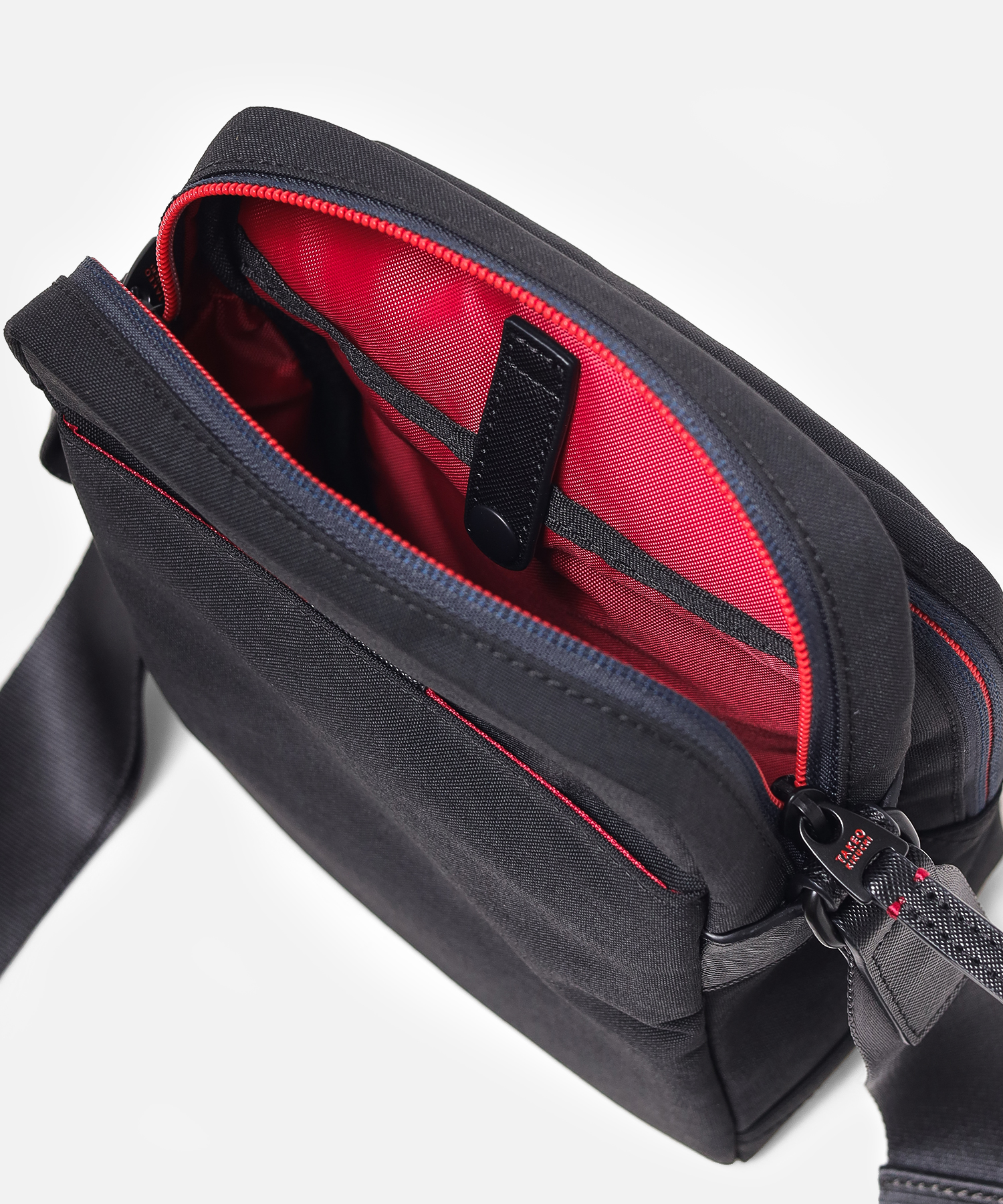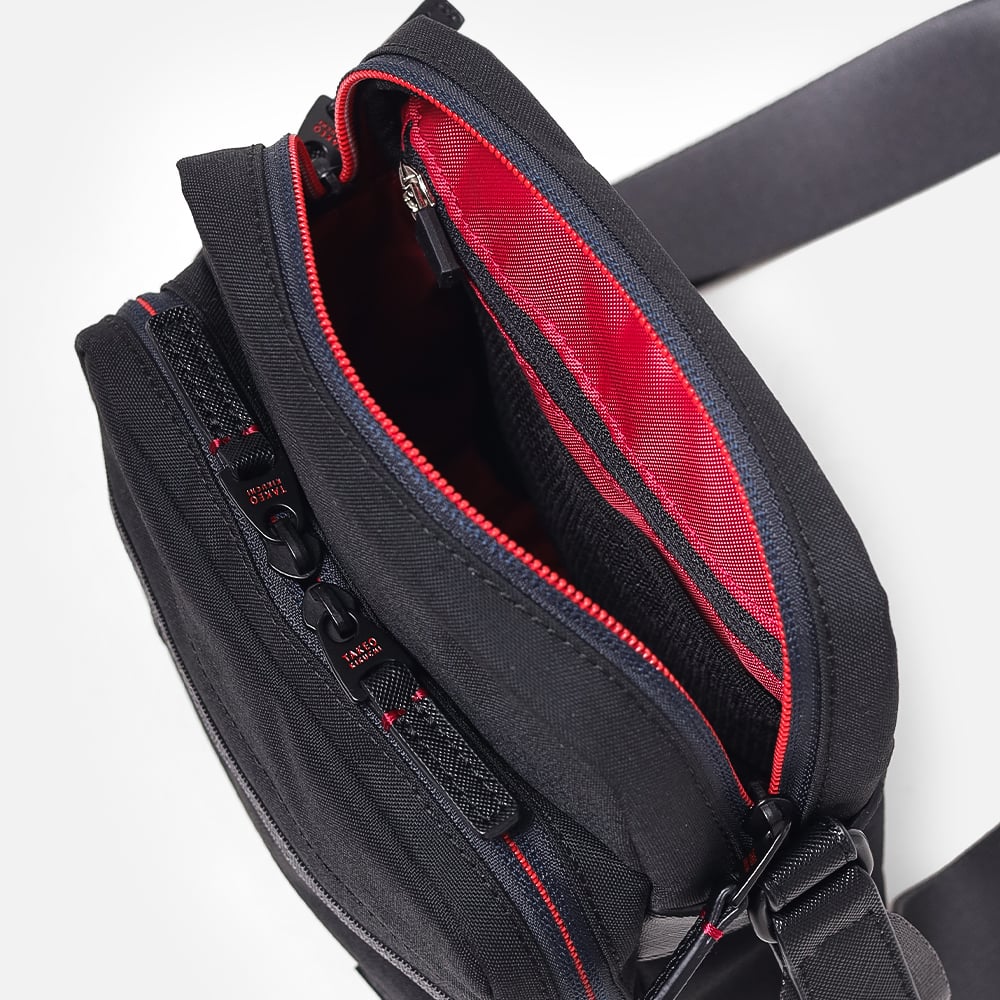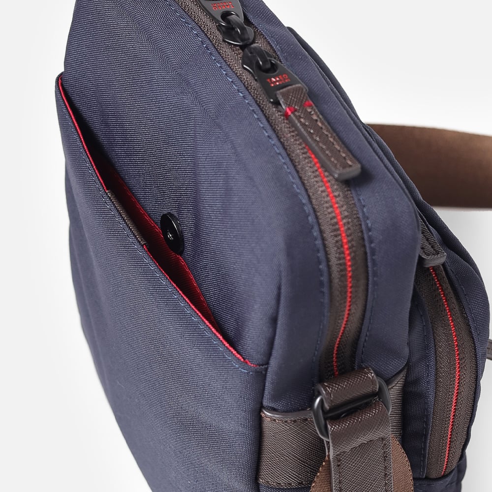 タケオキクチの軽くて丈夫でサスティナブルなコーデュラナイロン「トゥルーロックファブリック」を使用したミニショルダーバッグ。様々な環境に対応できる素材を使っており、タウンユースからトラベルまで幅広く使えます。