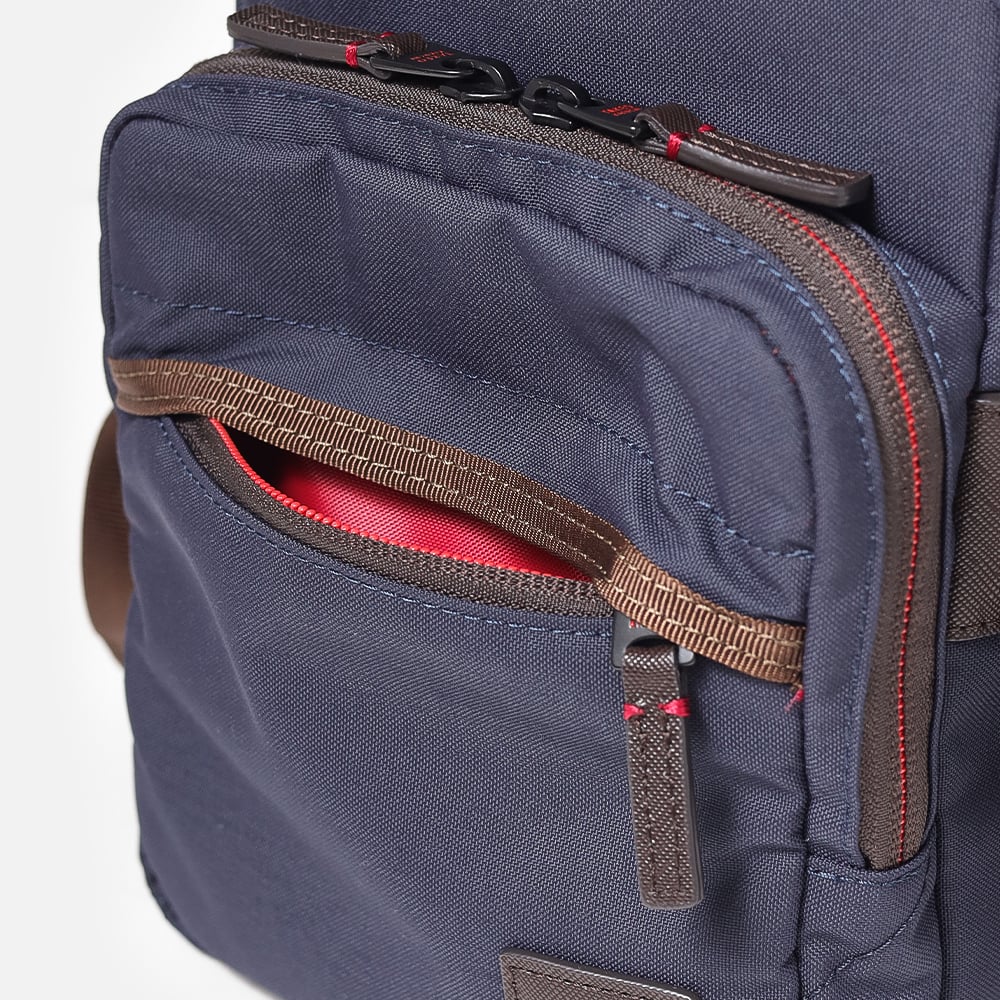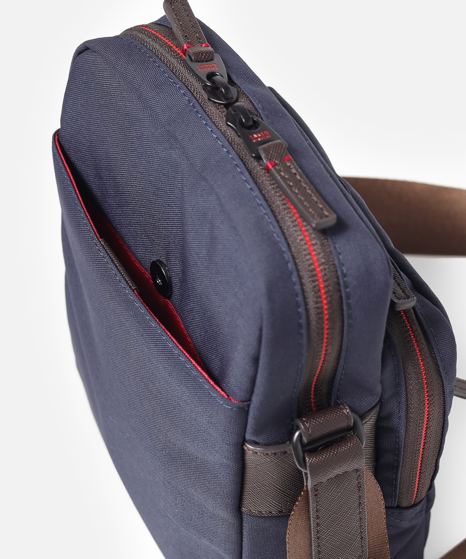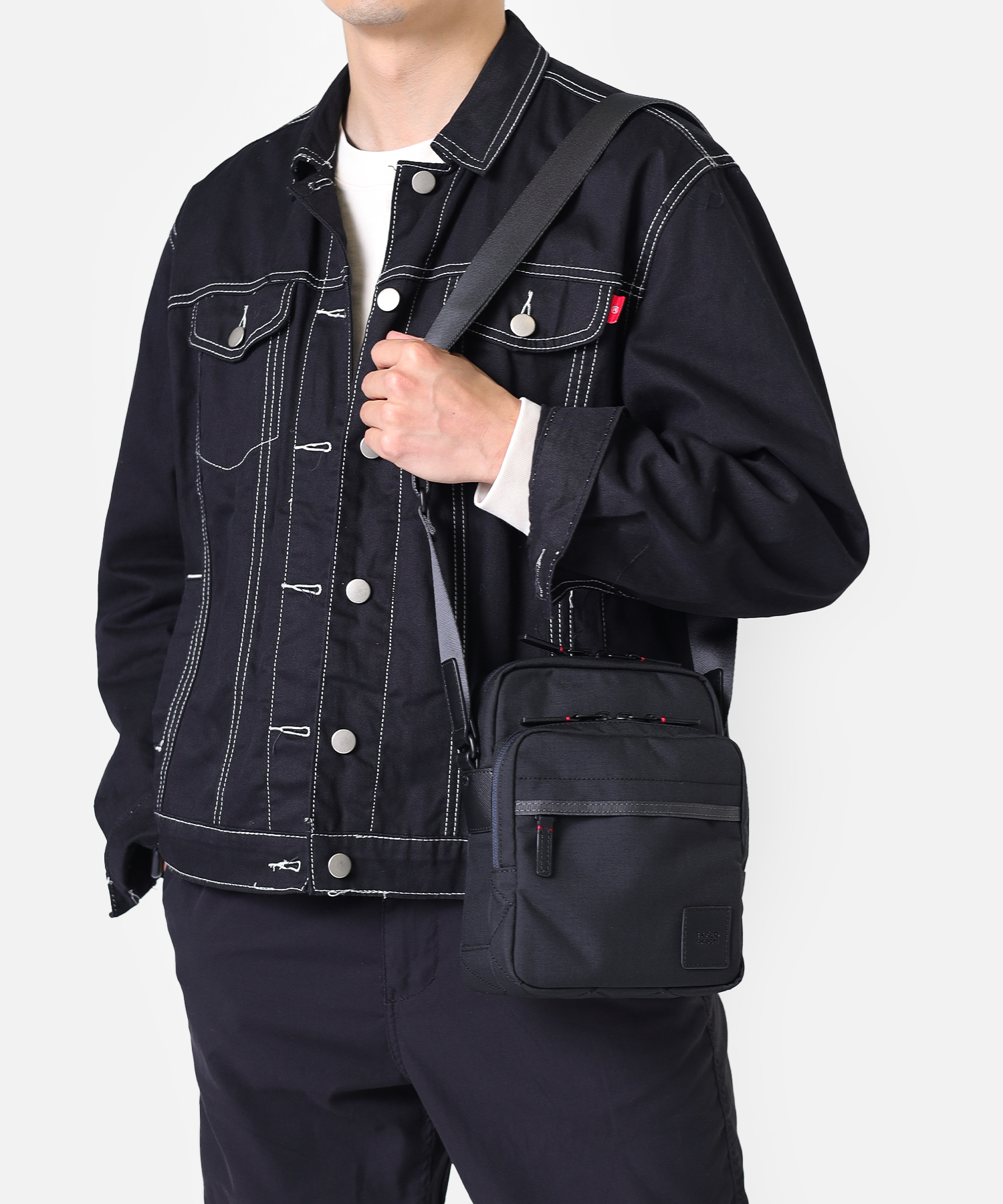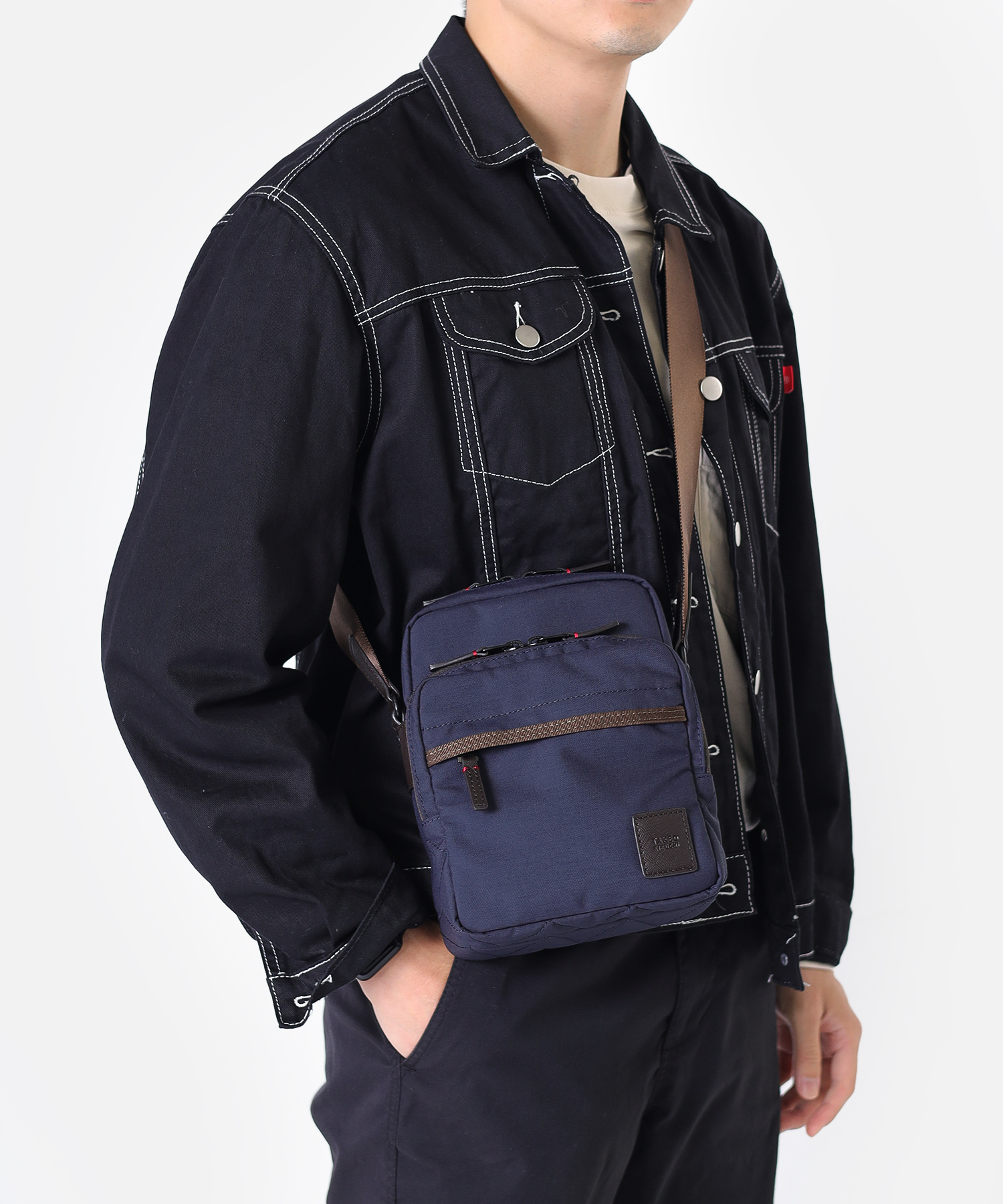 タケオキクチの軽くて丈夫でサスティナブルなコーデュラナイロン「トゥルーロックファブリック」を使用したミニショルダーバッグ。様々な環境に対応できる素材を使っており、タウンユースからトラベルまで幅広く使えます。