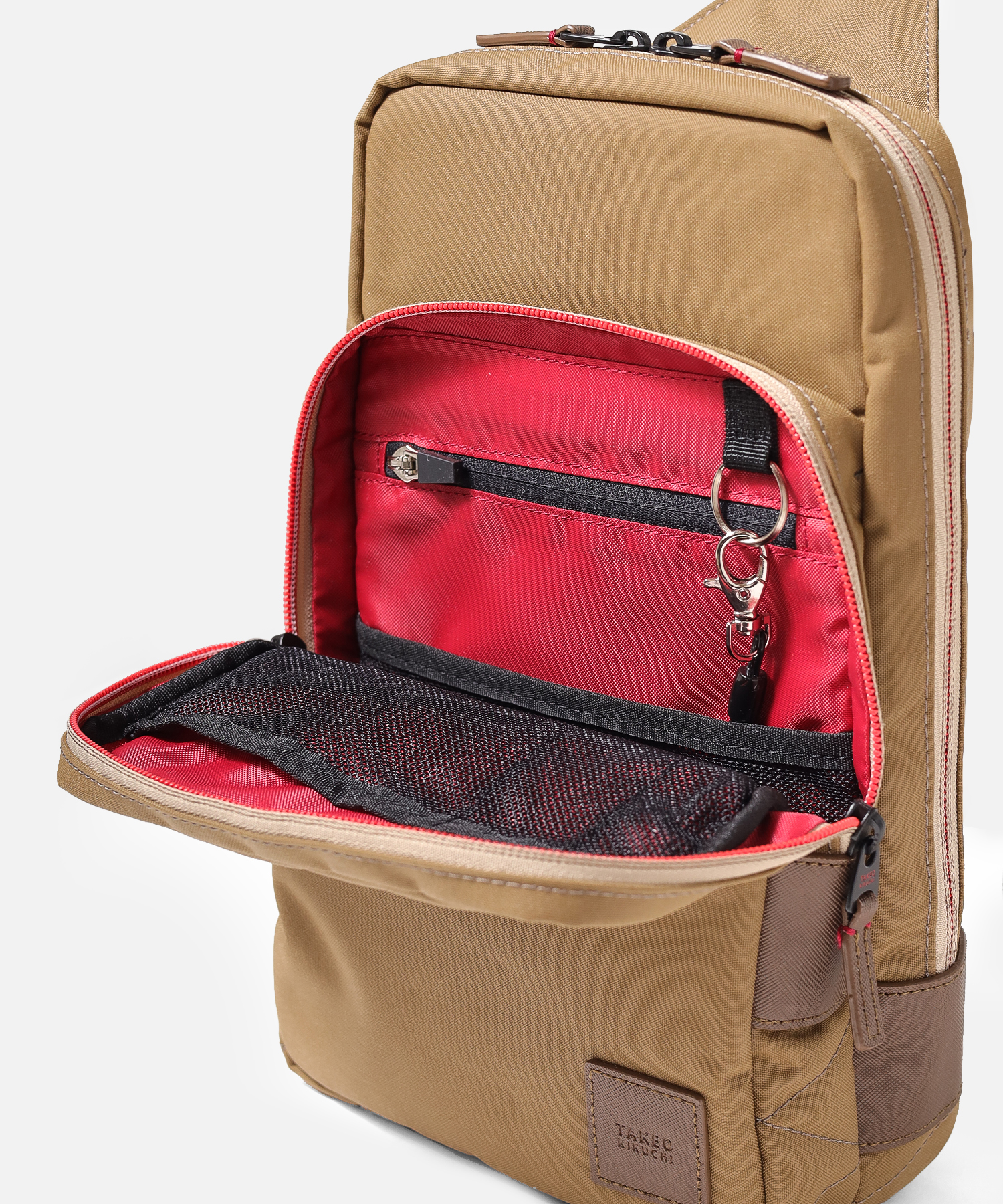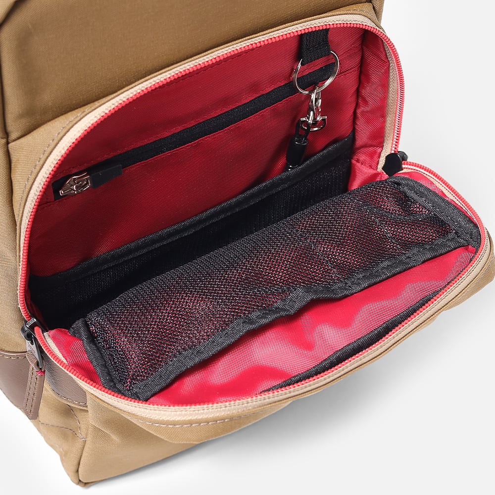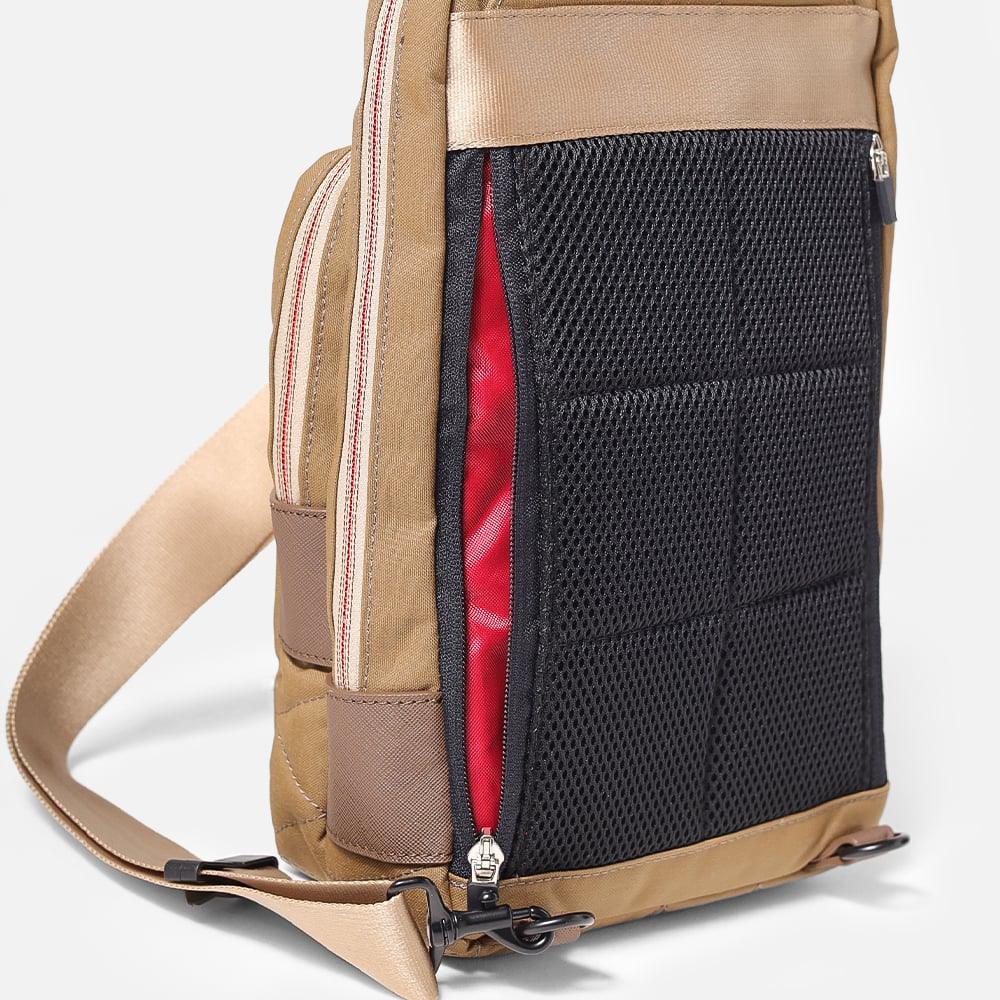 タケオキクチの軽くて丈夫でサスティナブルなコーデュラナイロン「トゥルーロックファブリック」を使用したワンショルダーバッグ。様々な環境に対応できる素材を使っており、タウンユースからトラベルまで幅広く使えます。
