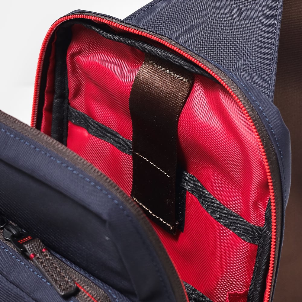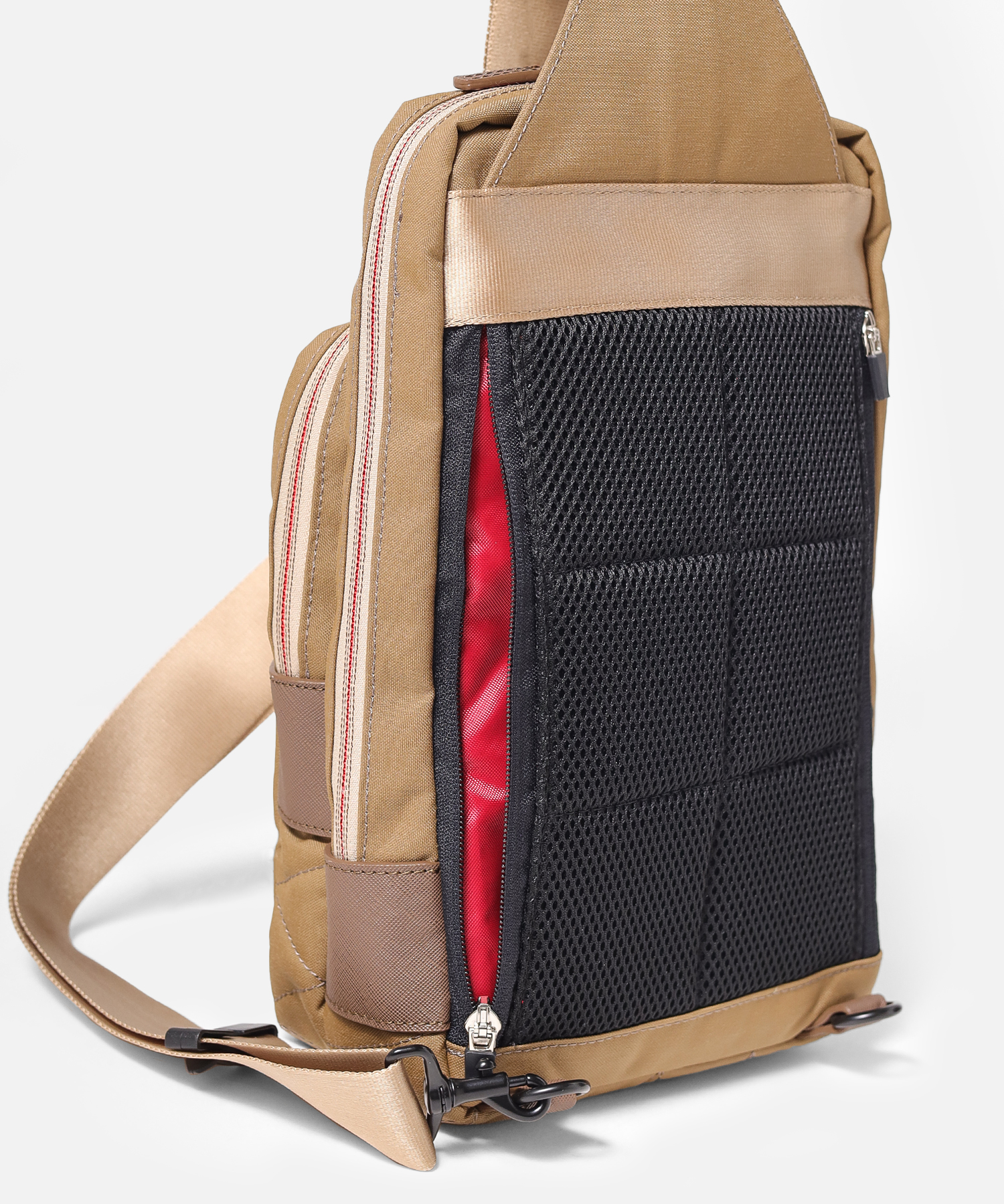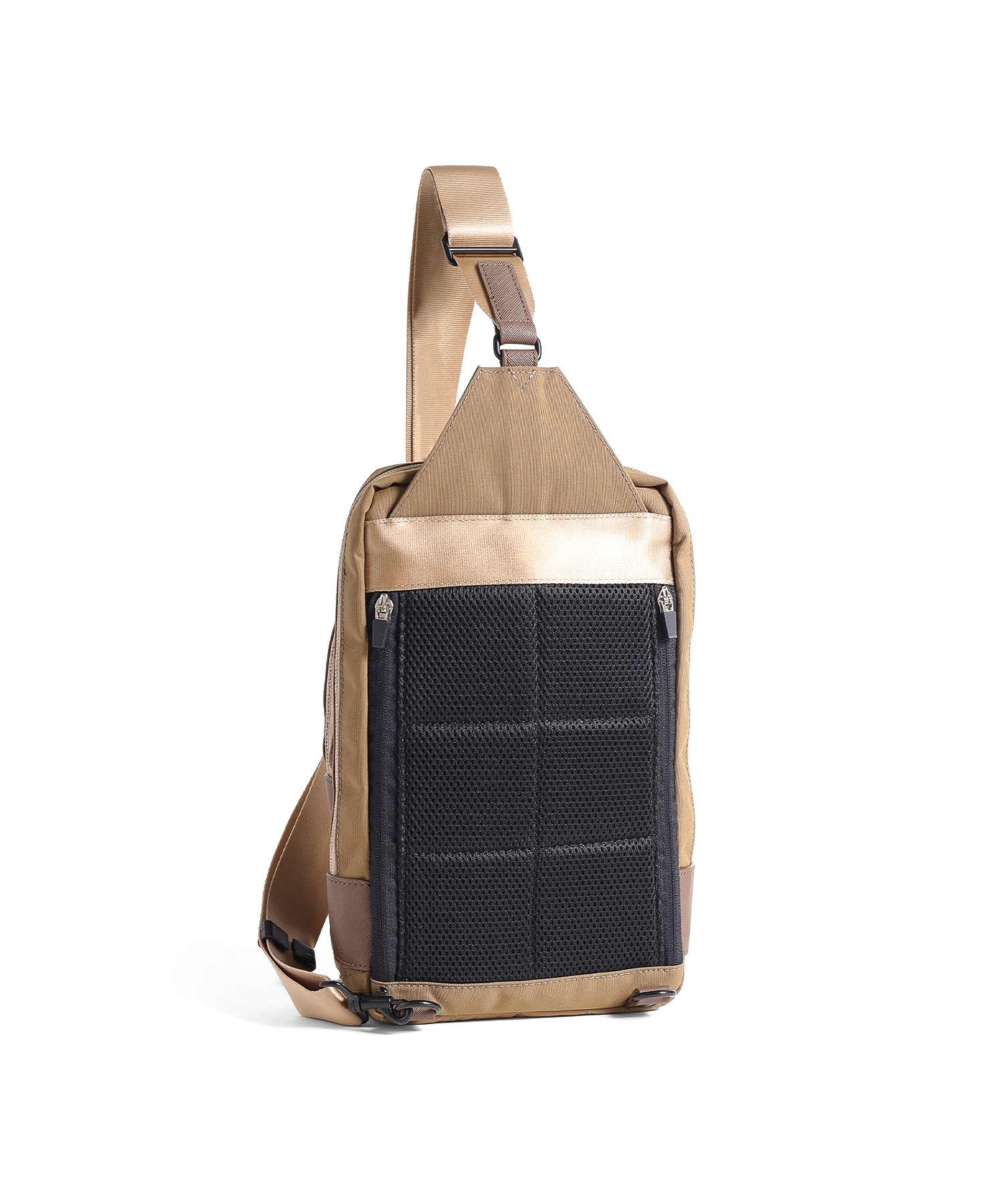 タケオキクチの軽くて丈夫でサスティナブルなコーデュラナイロン「トゥルーロックファブリック」を使用したワンショルダーバッグ。様々な環境に対応できる素材を使っており、タウンユースからトラベルまで幅広く使えます。