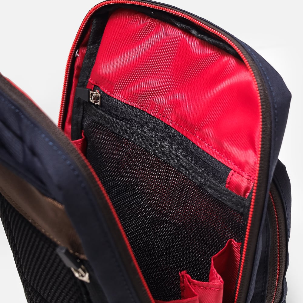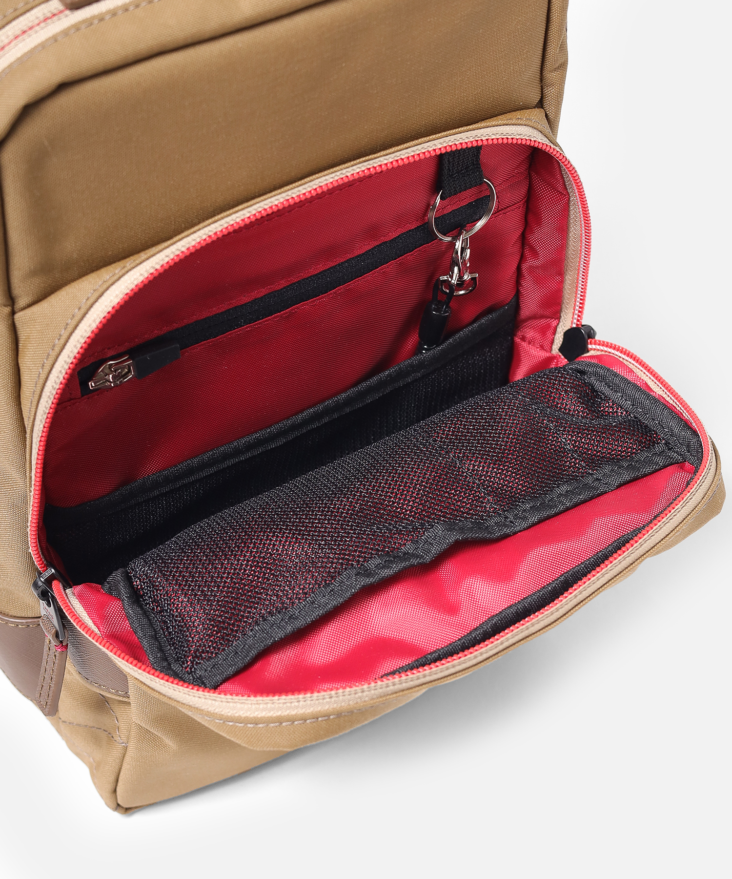・上記内にオープンポケットx2,ファスナーポケット,ペン差しx2,キーストラップ