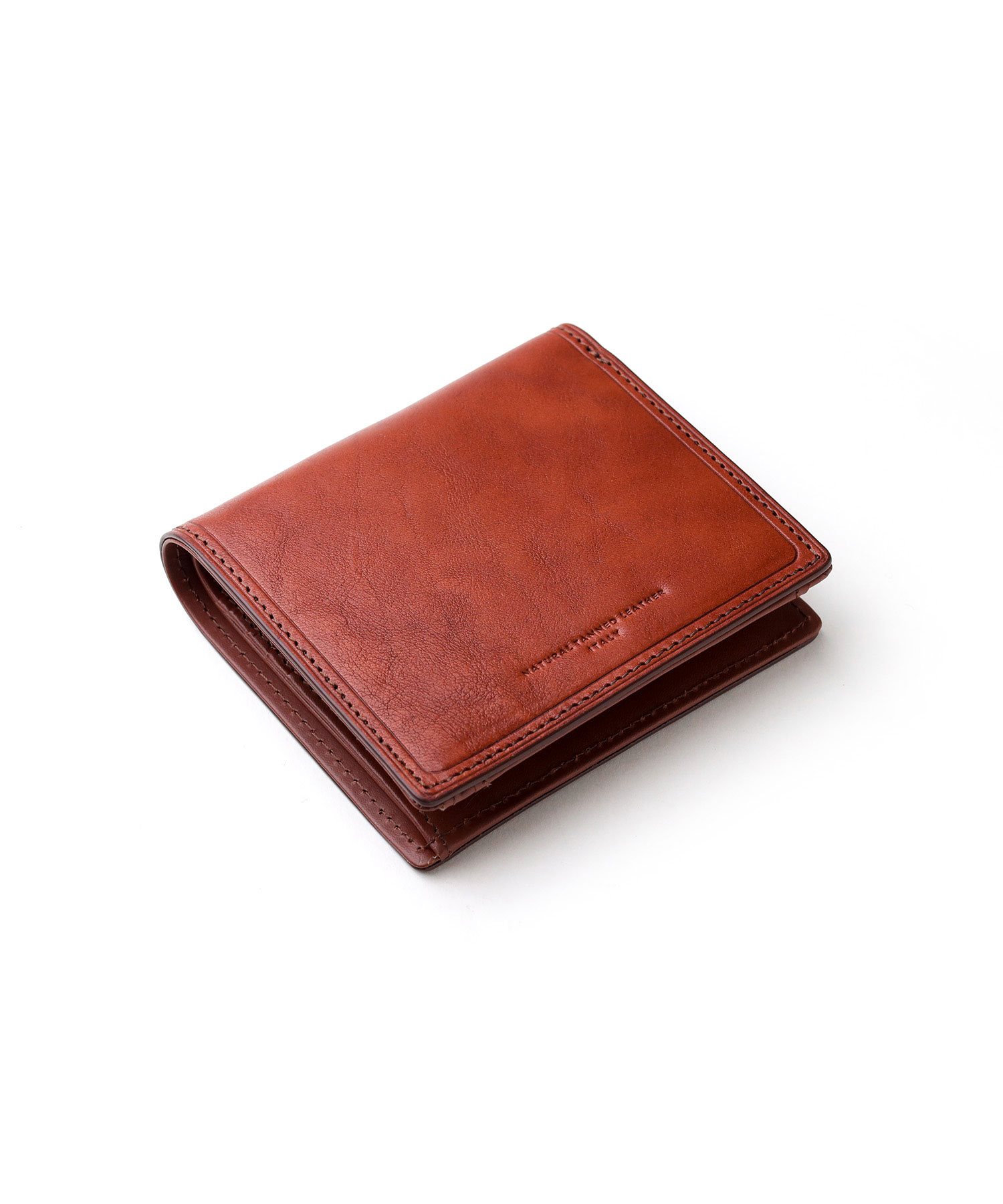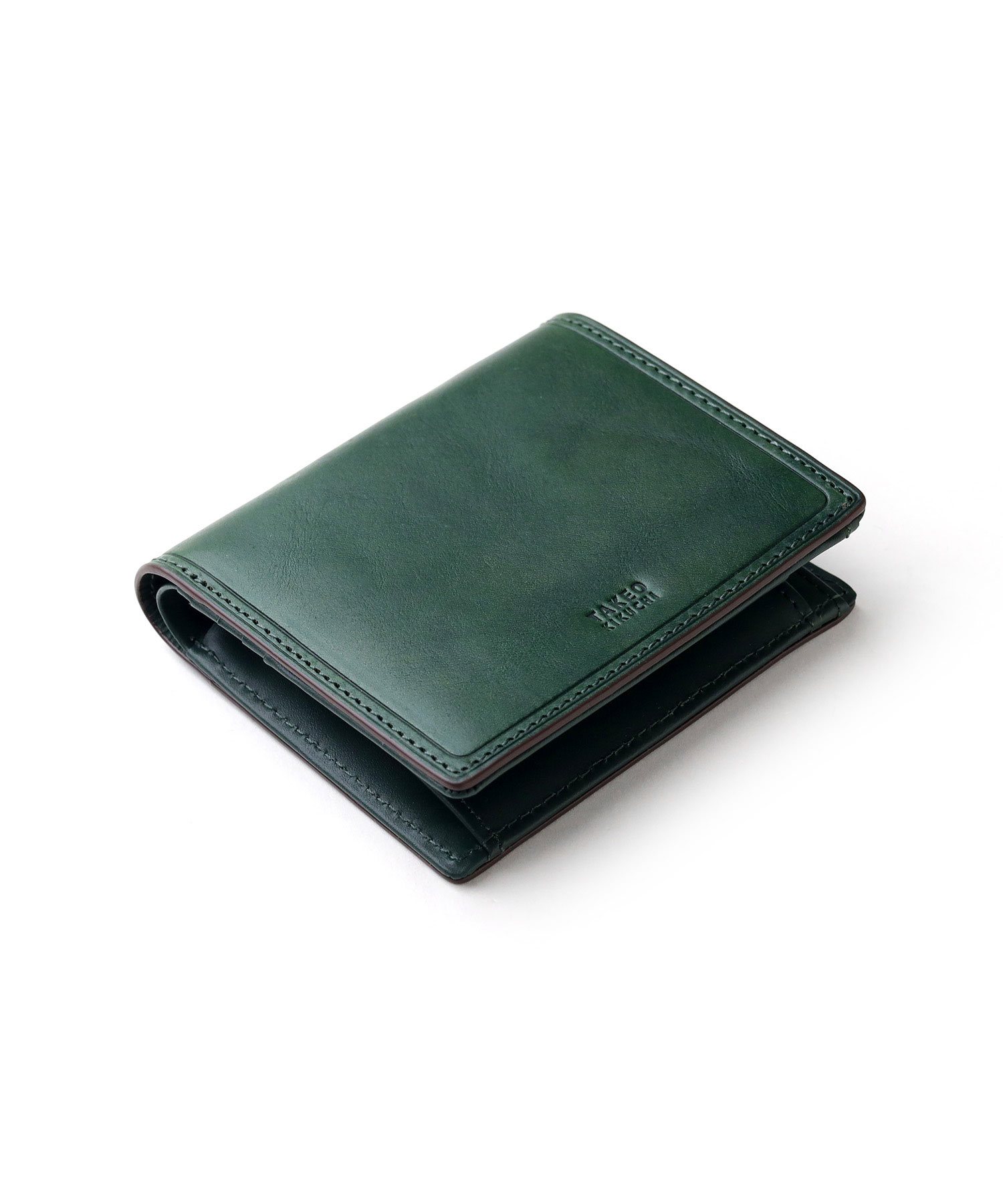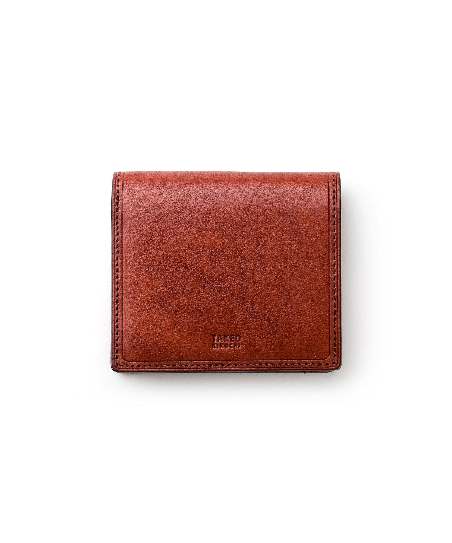 イタリアンショルダーレザーを使用した、男らしい素材感のタケオキクチの二つ折り財布。特殊な染色技術により生まれるナチュラルなムラ感は、オリジナリティあふれる魅力を放ちます。