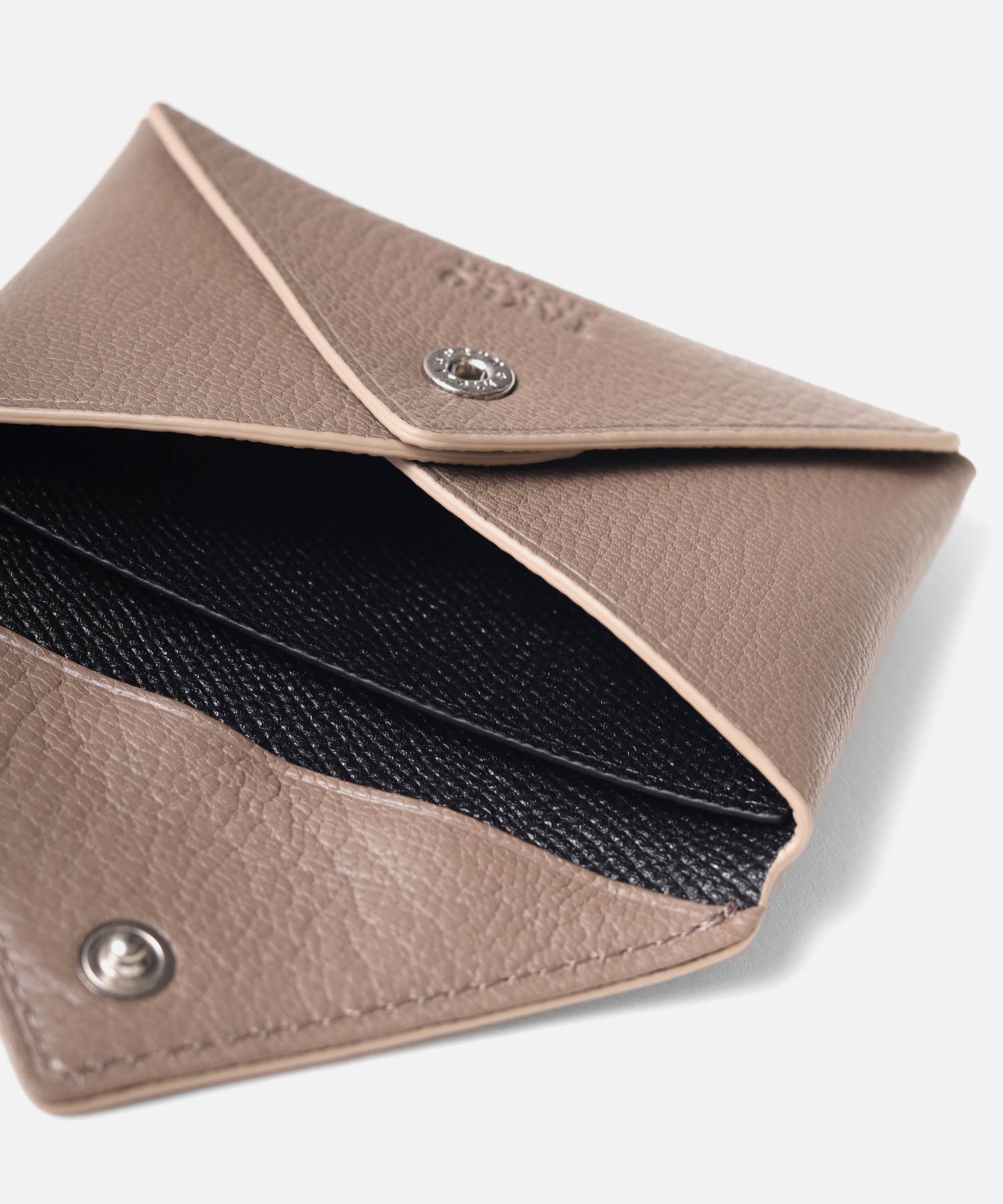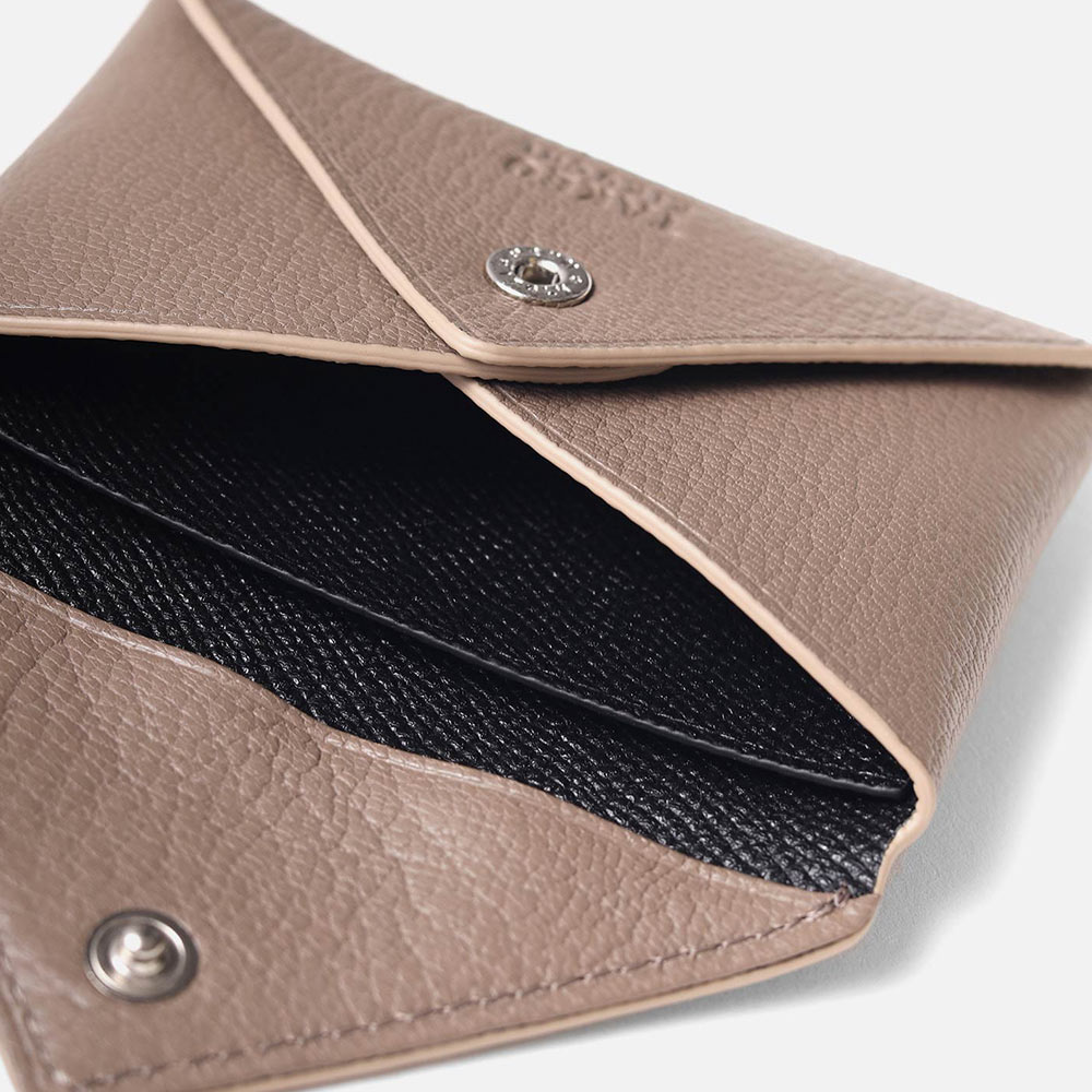 ホック開閉式の小銭入れは、カードも収まるサイズ感です。小銭収納のメインコンパートメントの他、カードポケットが1つあります。