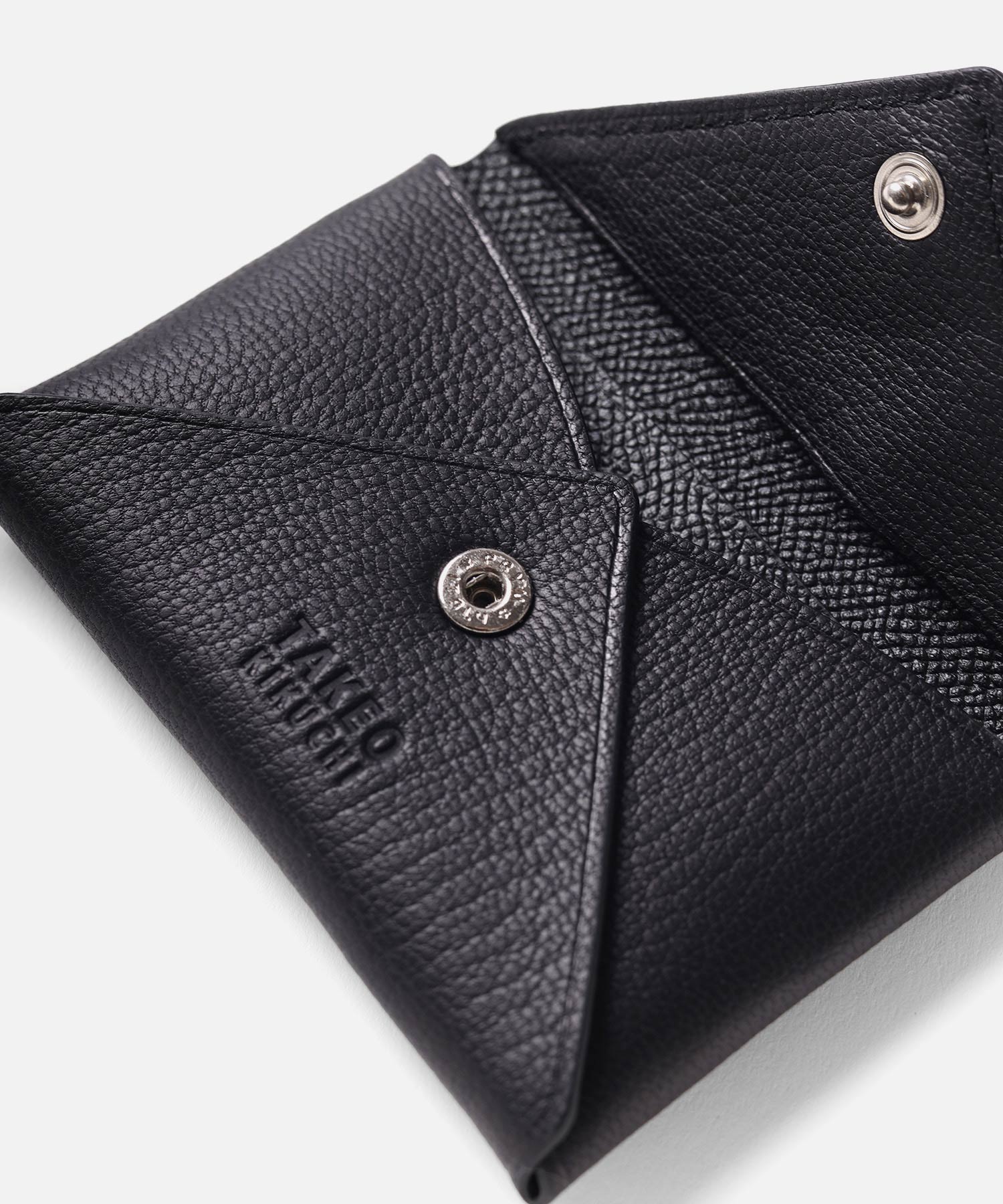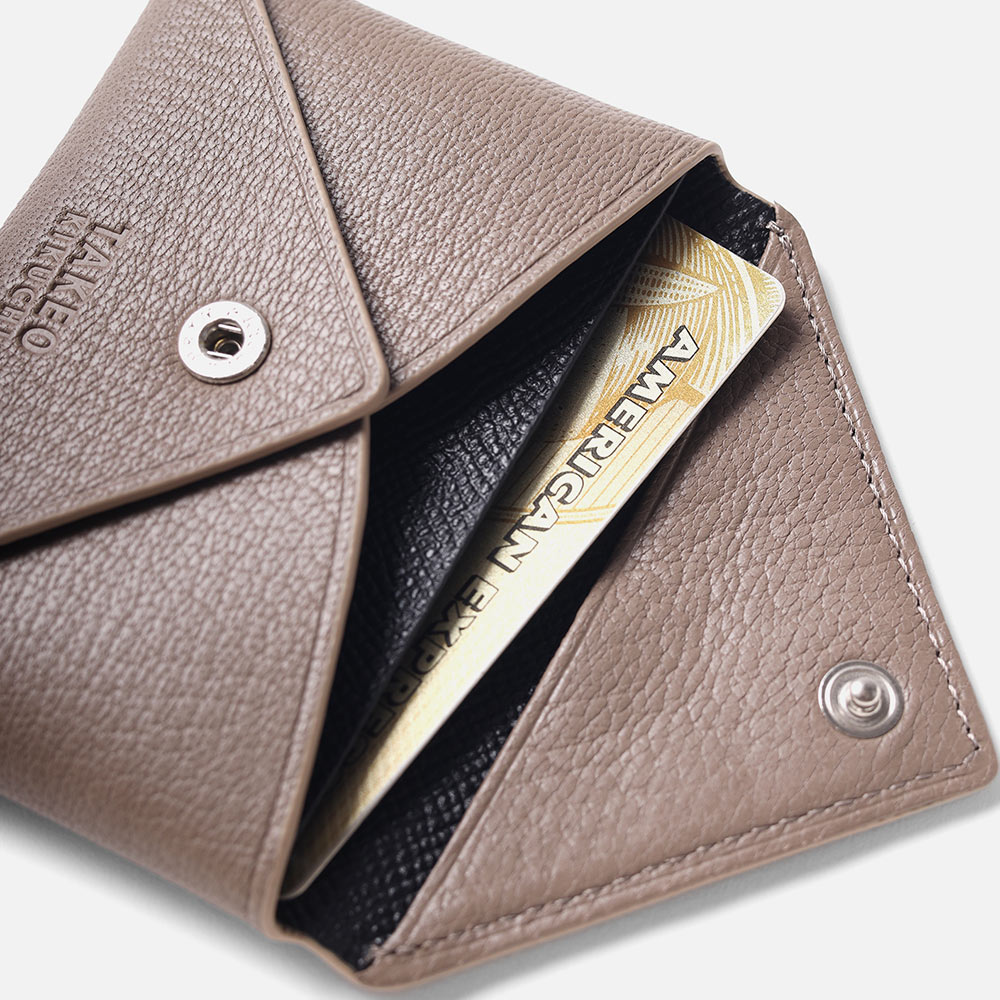 手によって8方向から揉みこんだ山羊革を美しく貼り合わせた、タケオキクチの小銭入れ。角度を変え、8方向から揉まれた革は、繊維層がほぐれ革全体がふっくらとした表情となり、機械では表現できない質感に仕上げました。