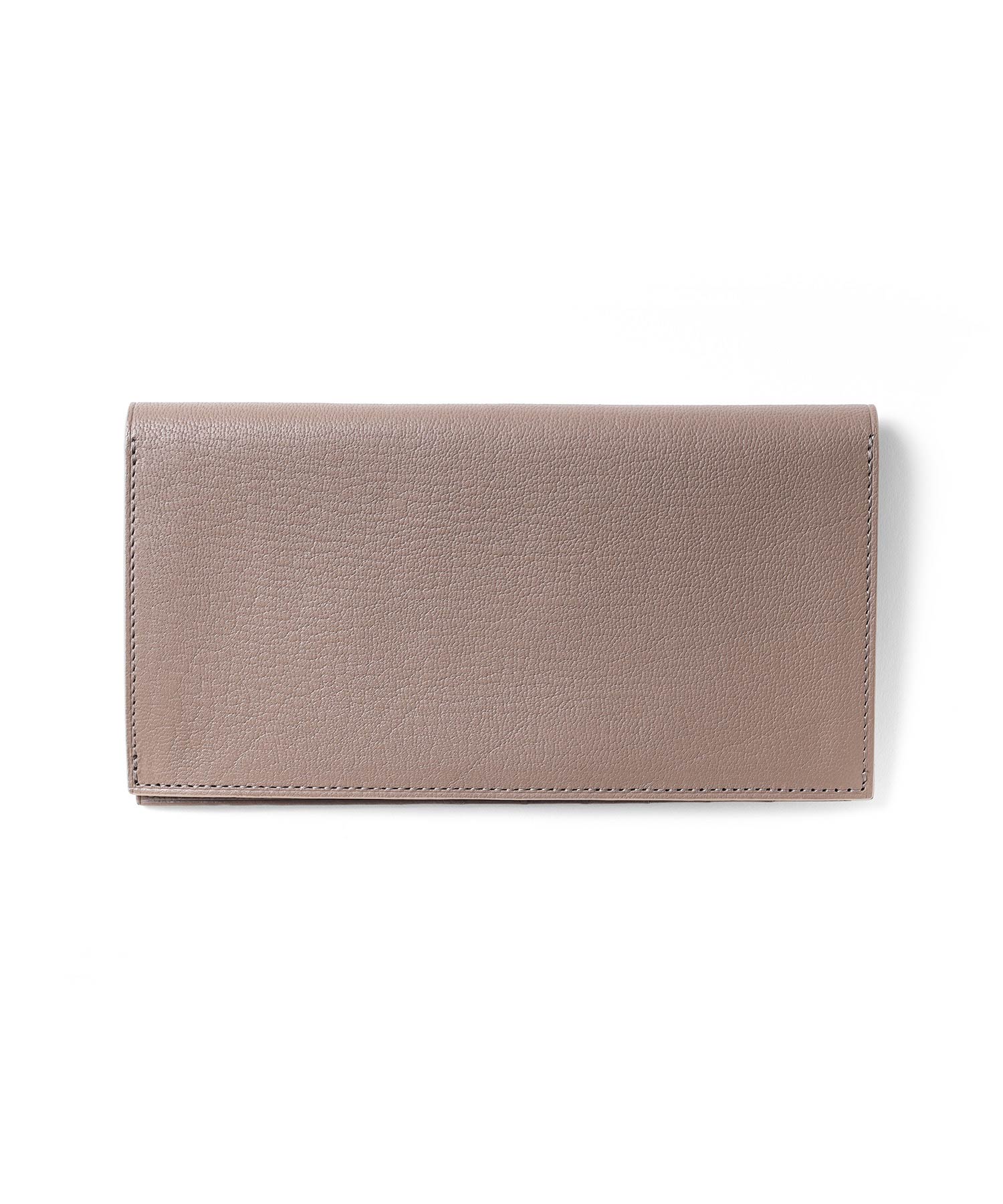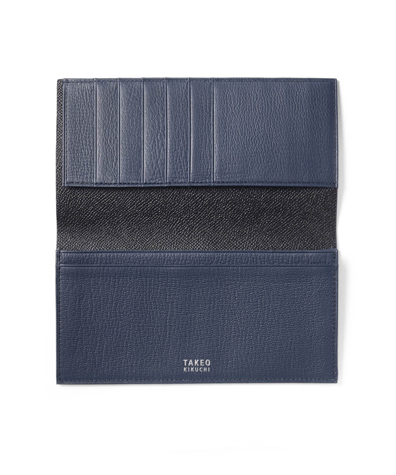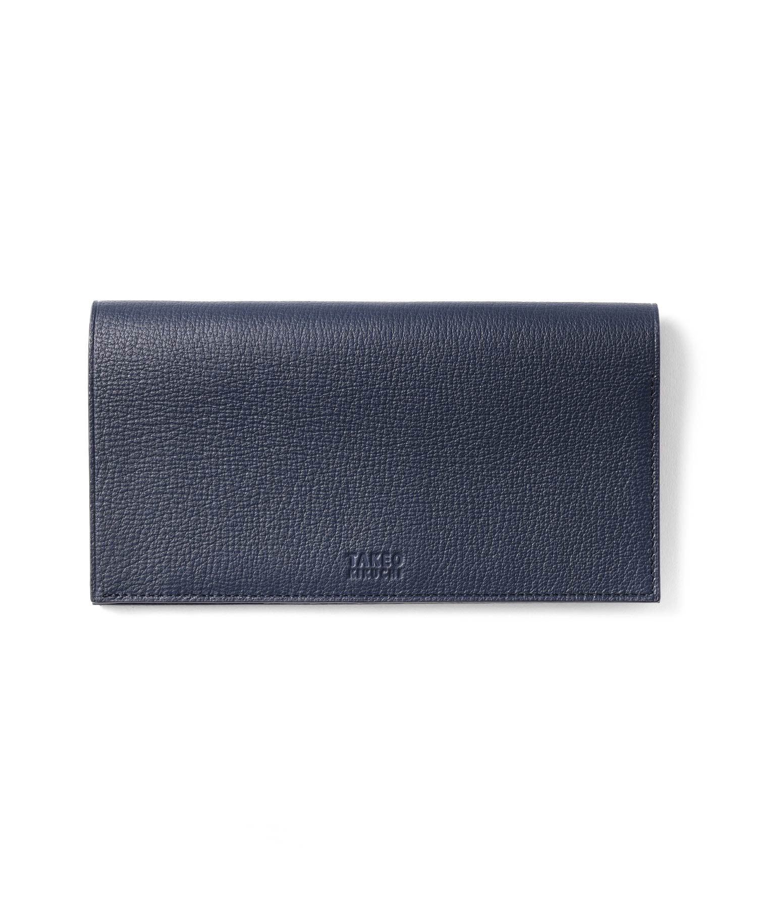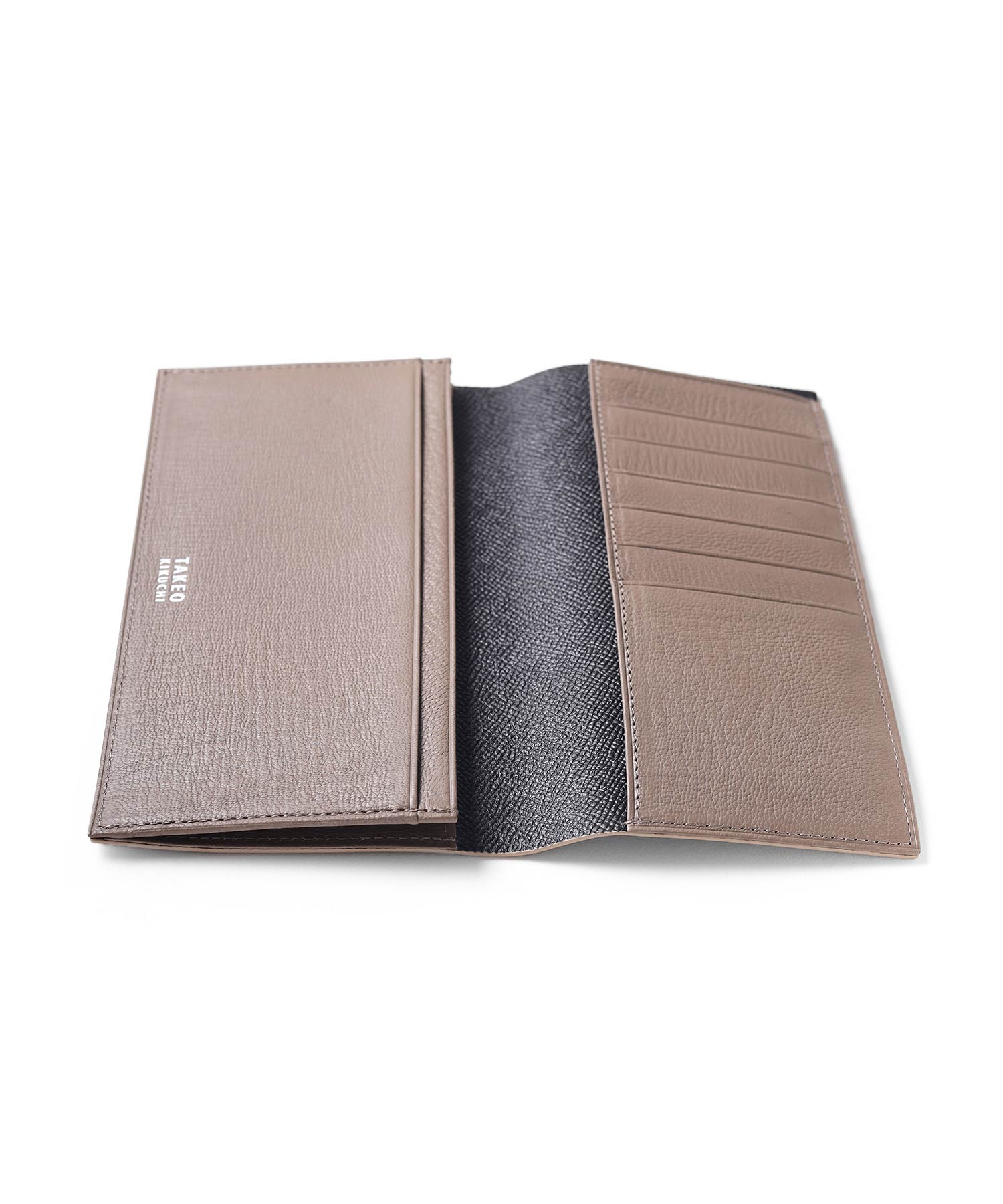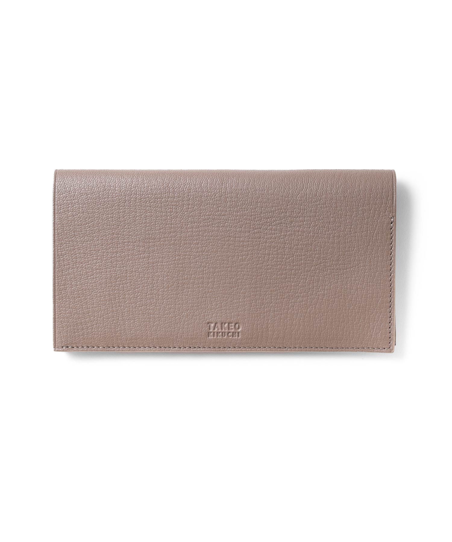 手によって8方向から揉みこんだ山羊革を美しく貼り合わせた、タケオキクチのかぶせタイプの長財布。小銭入れ無しの純札タイプです。角度を変え、8方向から揉まれた革は、繊維層がほぐれ革全体がふっくらとした表情となり、機械では表現できない質感に仕上げました。