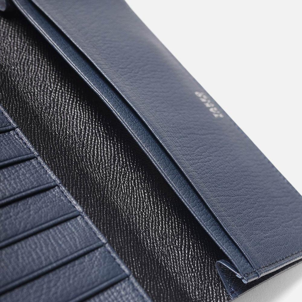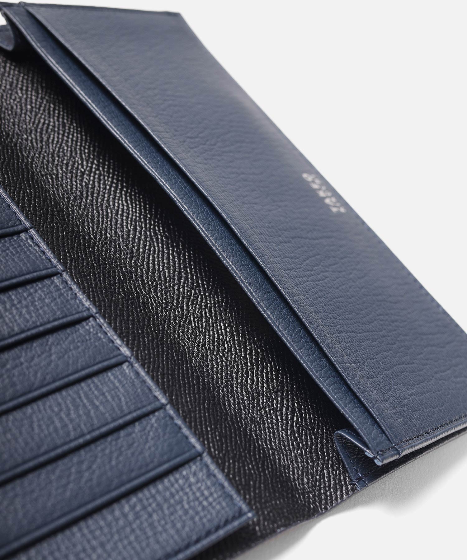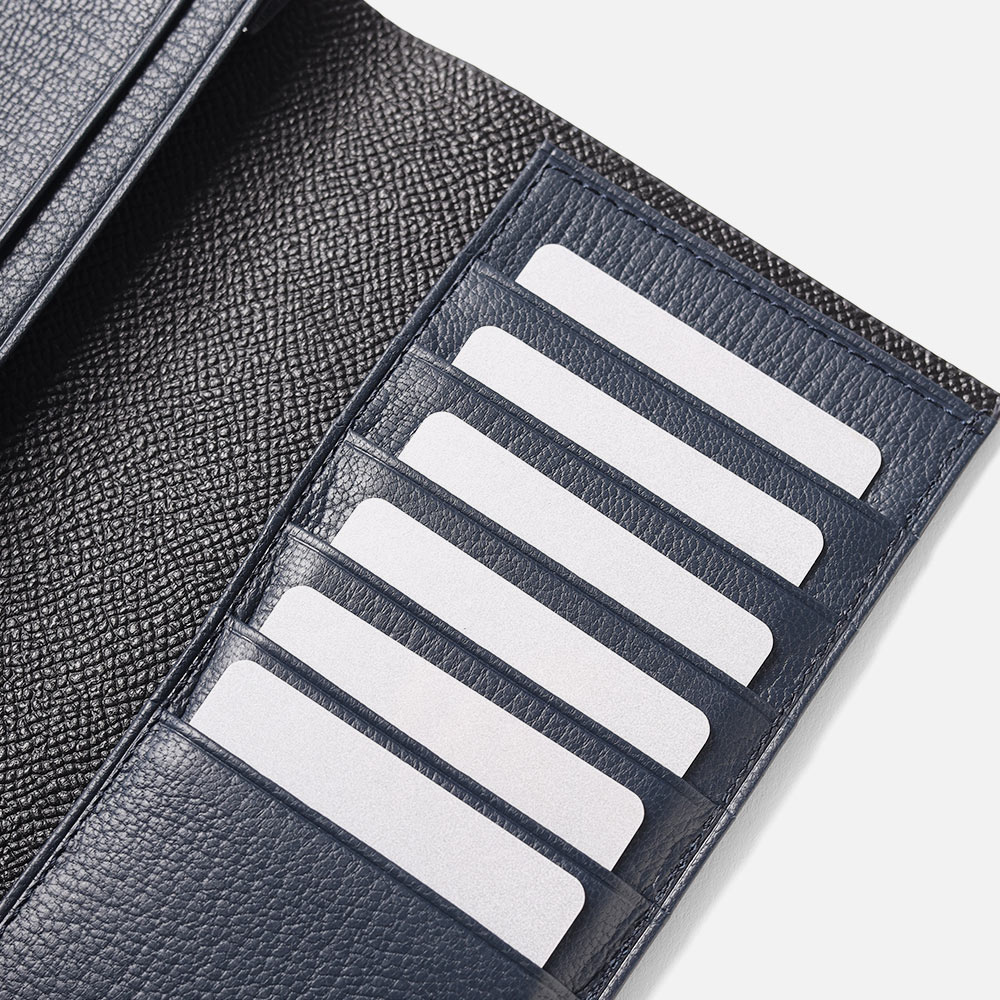 かぶせタイプの長財布を開くと、札入れが1つ、カード段が6つ、ポケット大が2つあります。小銭入れ無しの純札タイプです。薄く仕上げており、財布をスマートに持ち運べます。