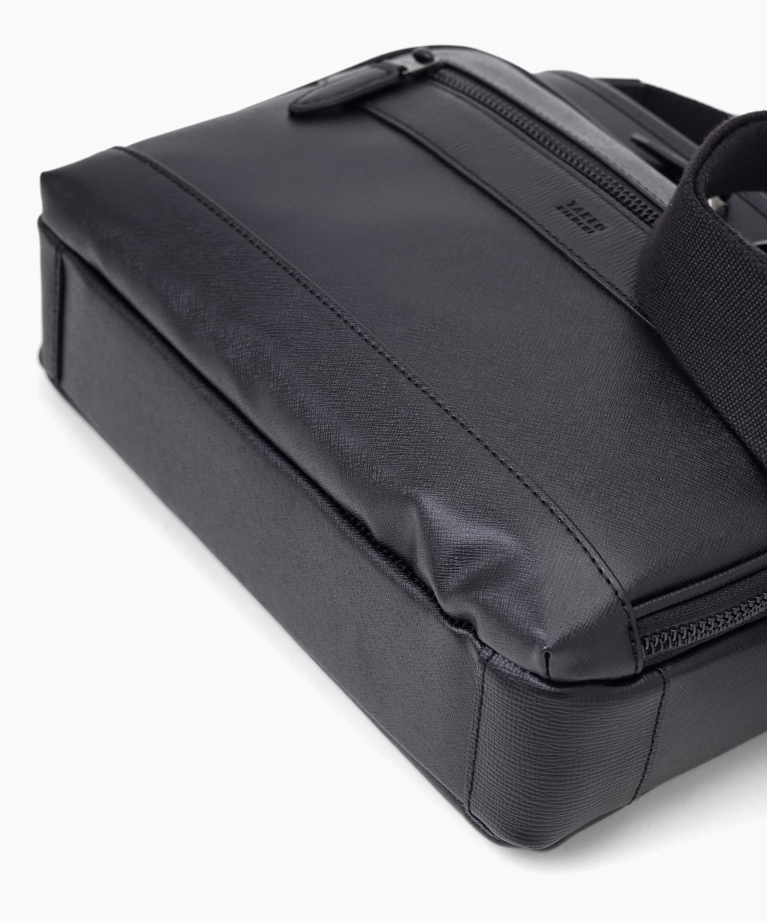 本体素材には上品な細かい型押しを施したオリジナルで開発したポリ塩化ビニルを使用しています。付属には厳選された国産原皮に上品な角シボのエンボスを施した牛革を使用しています。