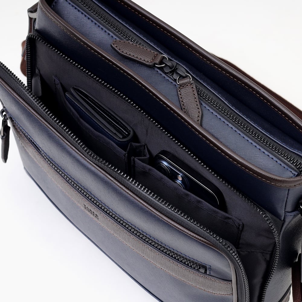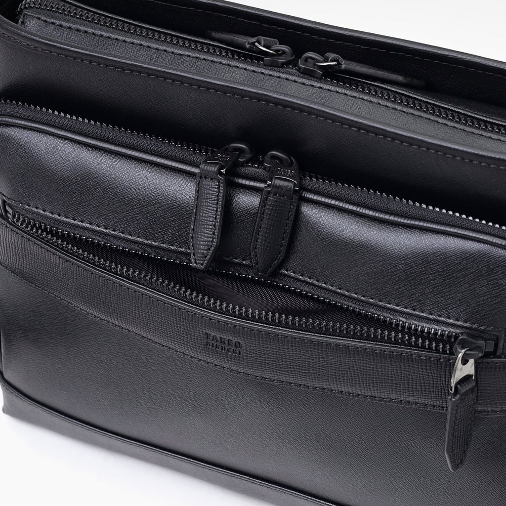 きれいめスタイルを完成させてくれる、ON/OFF兼用で使えるTAKEO KIKUCHIのB5サイズのショルダーバッグです。タウンからトラベル、仕事までと幅広いシーンでお使いいただけます。