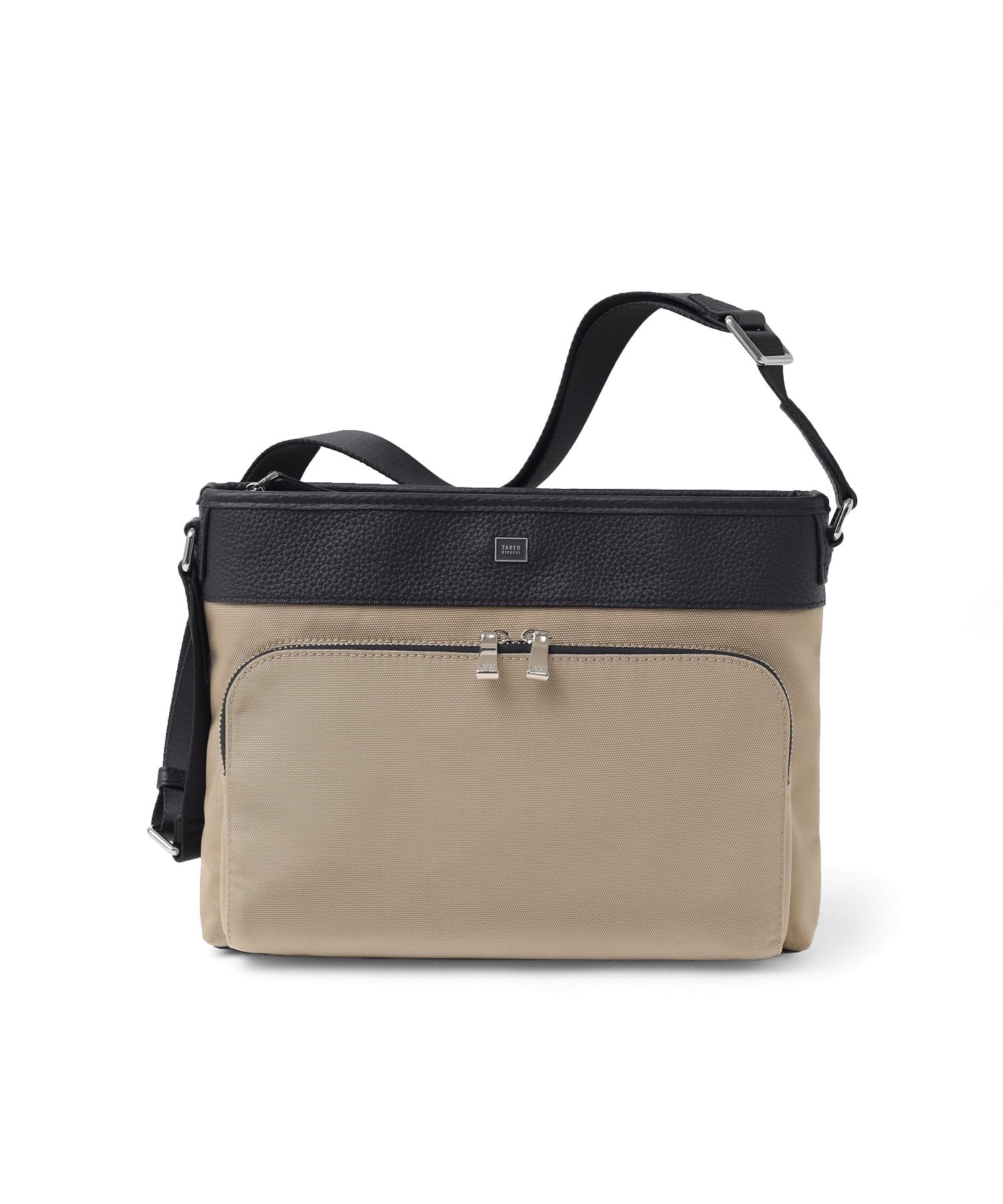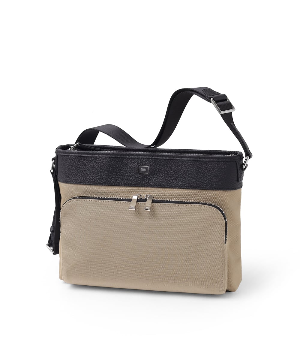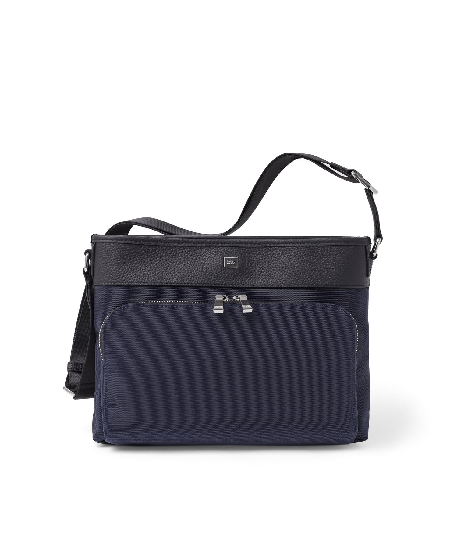 TAKEO KIKUCHIを象徴するネクタイ柄「ドットストライプ」をポイントにしたB5サイズのショルダーバッグ。カジュアルながらもシックな印象を与えるセミハードに仕上げていますのでは幅広いシーンでお使いいただけます。