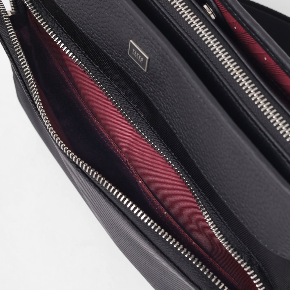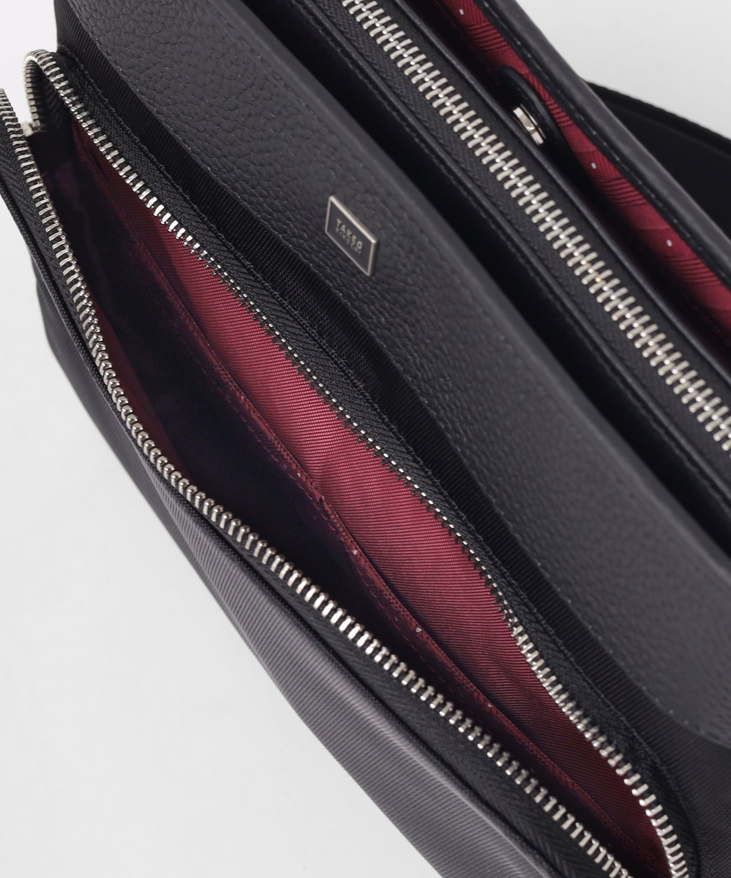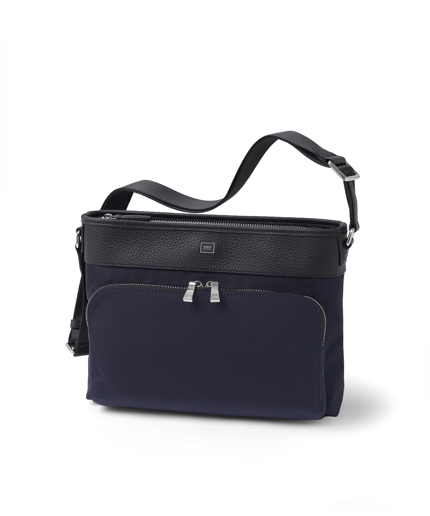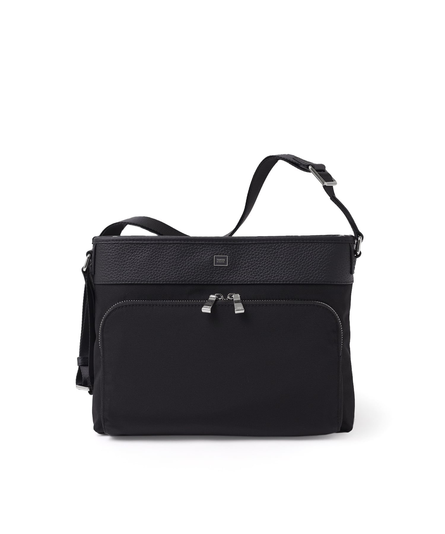 TAKEO KIKUCHIを象徴するネクタイ柄「ドットストライプ」をポイントにしたB5サイズのショルダーバッグ。カジュアルながらもシックな印象を与えるセミハードに仕上げていますのでは幅広いシーンでお使いいただけます。
