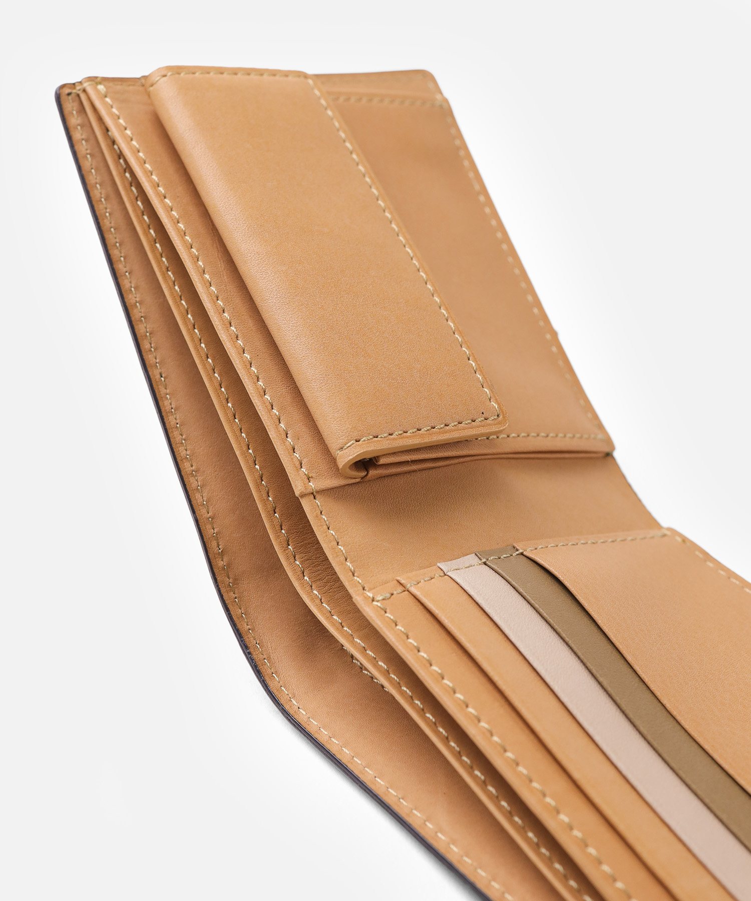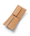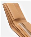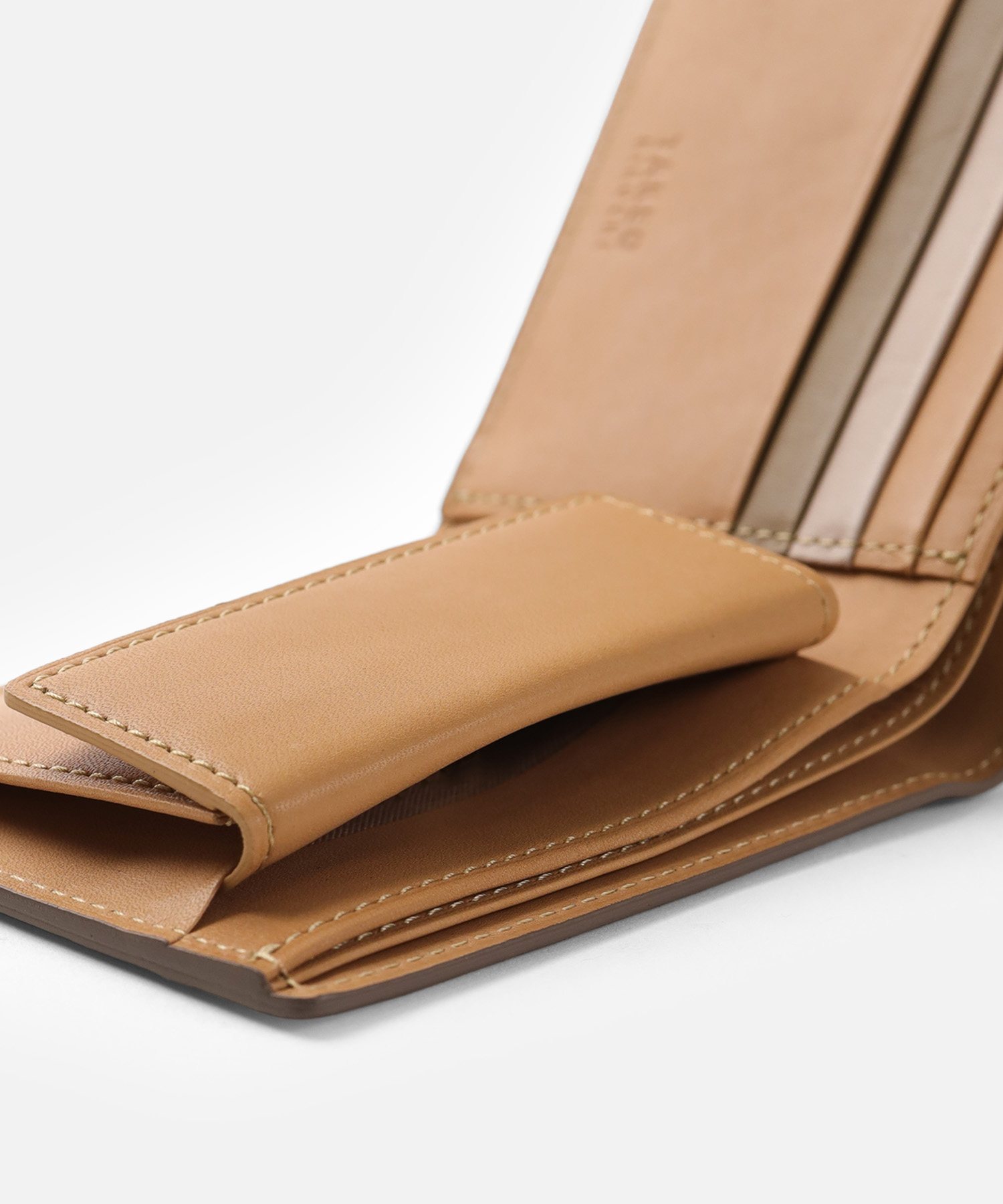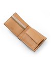 本体は、2cmのマチ幅と一般的な二つ折り財布に比べスリムに作られています。薄くても収納力はそのままに、使いやすさを持ったこの二つ折り財布は素材と職人技によって実現しています。収納はカードポケットが5つとフリーポケットが2つ、小銭入れと札入れが2つあります。