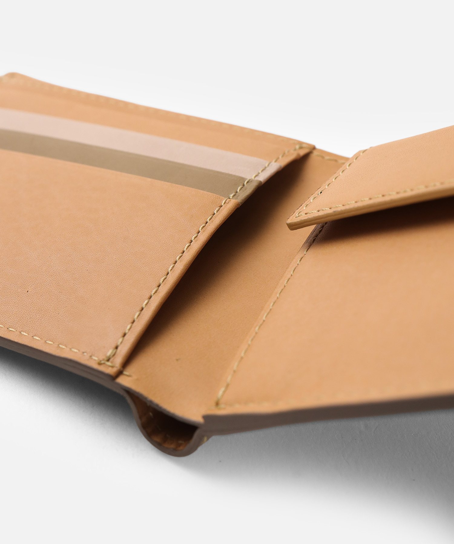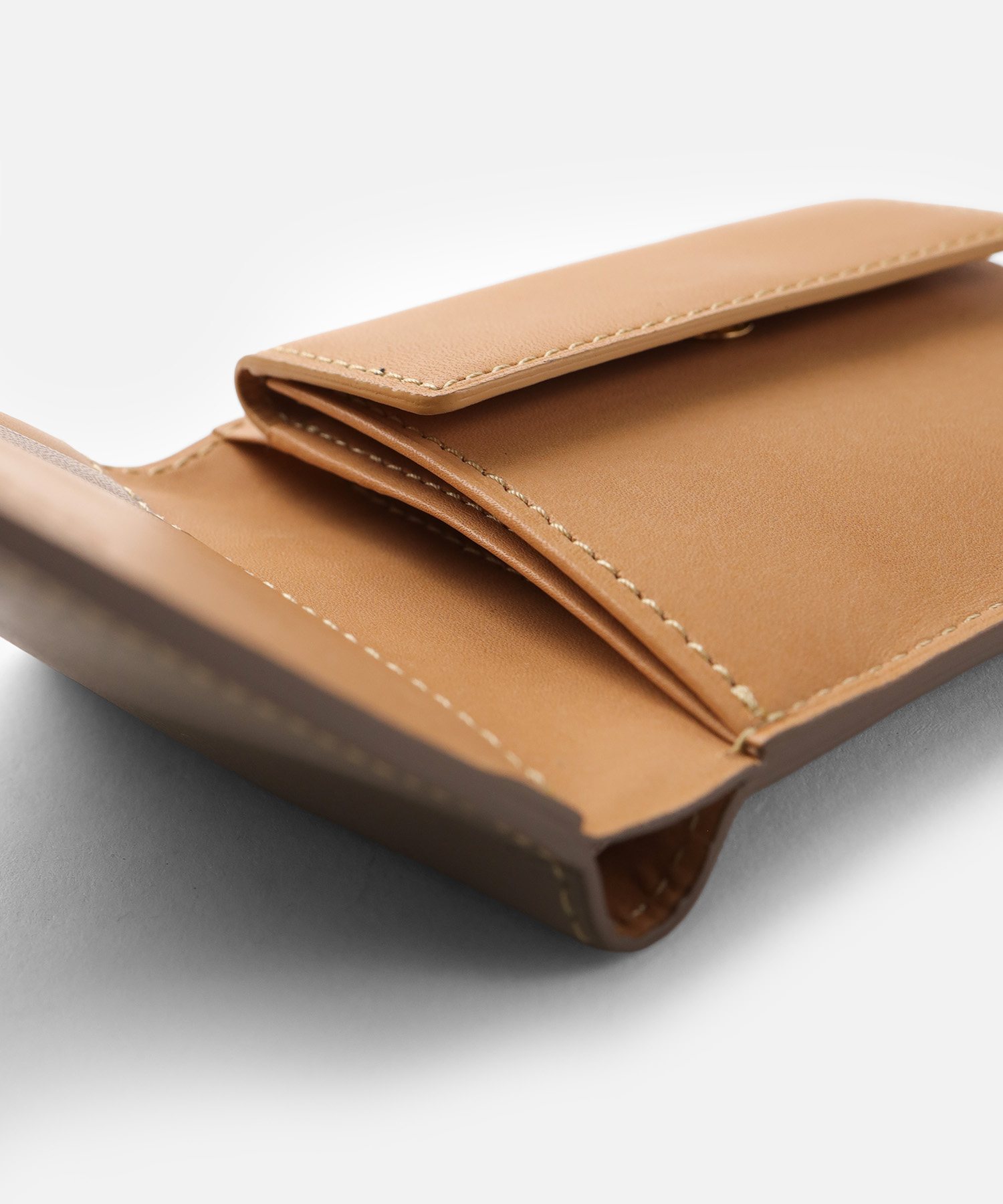 マチ幅を2cmに抑えたスリムなデザインは、手元をスマートに演出します。カバンやポケットの中でも場所を取らず、必要な時にサッと取り出せる携帯性の良さが魅力。職人の手仕事による無駄のないフォルムが、スマートな見た目からは想像できない使い勝手の良さと、軽やかさを両立しました。