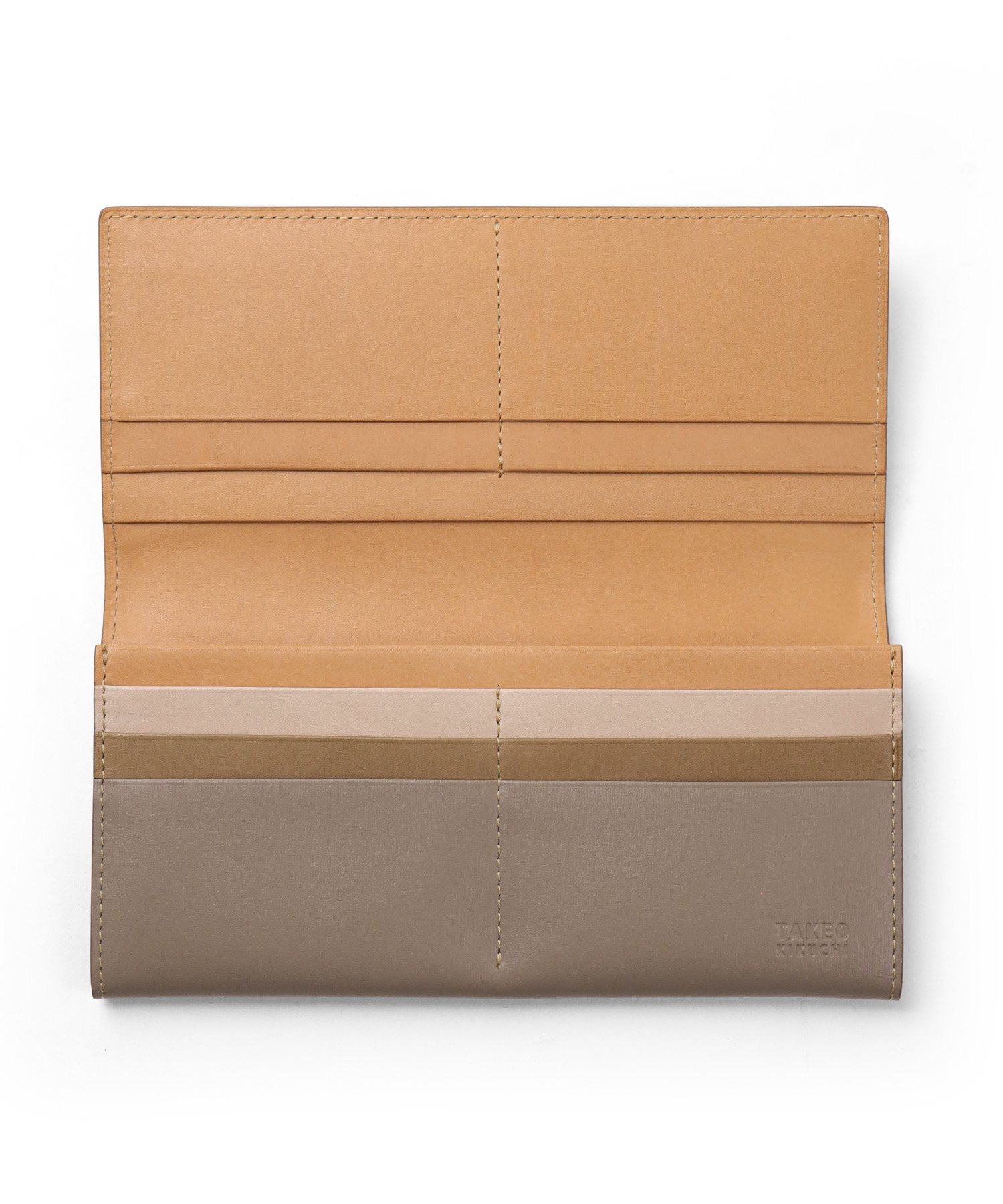 品番no.750605 ブランドTAKEO KIKUCHI 外寸幅19 x 高9 x マチ2 cm 重さ110g 素材牛革 原産国日本製 収納機能 [外側] ・フリーポケット [内側] ・カードポケットx10 ・フリーポケットx2 ・札入れ