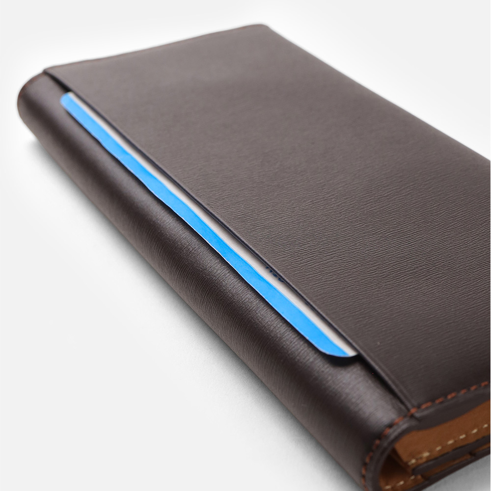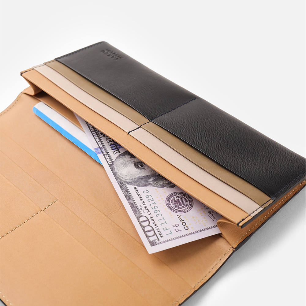 マチ幅を2cmに抑えたスリムなデザインは、手元をスマートに演出します。カバンやポケットの中でも場所を取らず、必要な時にサッと取り出せる携帯性の良さが魅力。職人の手仕事による無駄のないフォルムが、スマートな見た目からは想像できない使い勝手の良さと、軽やかさを両立しました。