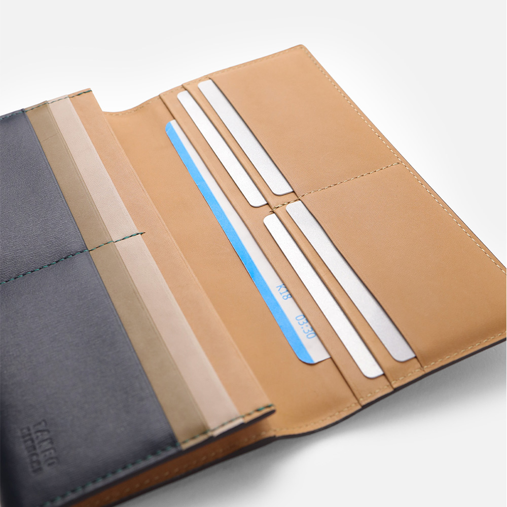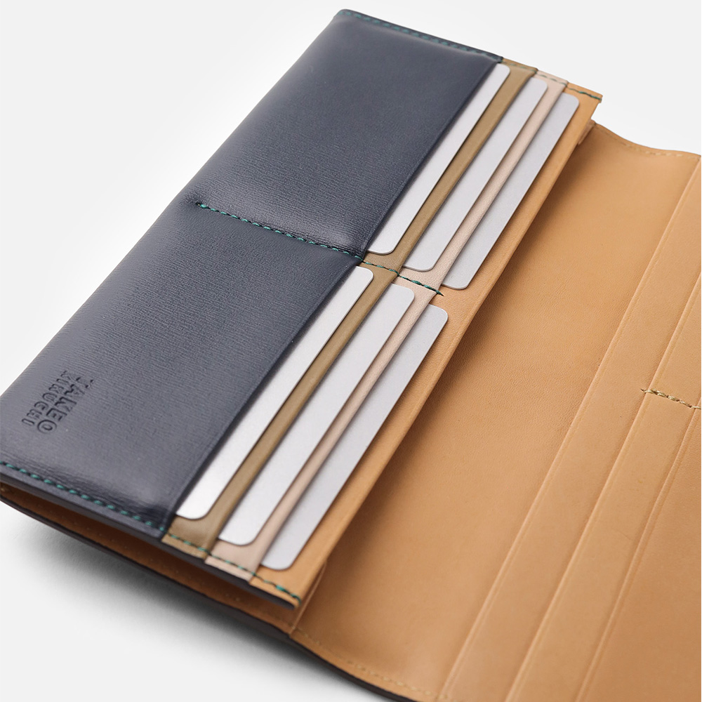 本体は、2cmのマチ幅と一般的な長財布に比べスリムに作られています。薄くても収納力はそのままに、使いやすさを持ったこの長財布は素材と職人技によって実現しています。収納はカードポケットが10個、フリーポケットが3つと札入れあります。