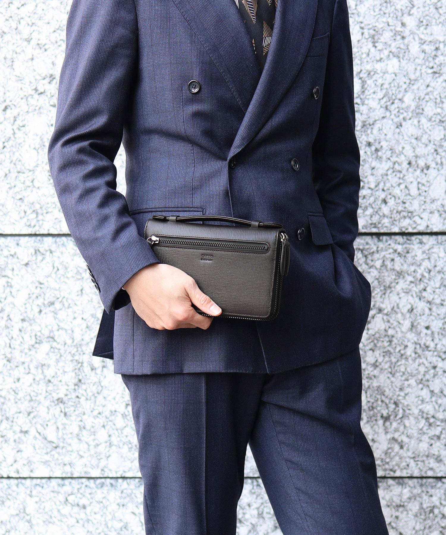 人気の定番型をリニューアルさせた、シンプルでスタイリッシュなタケオキクチのレザースマートセルバッグ。どんなスーツスタイルにも合わせやすく、フォーマルなシーンにもぴったりはまります。