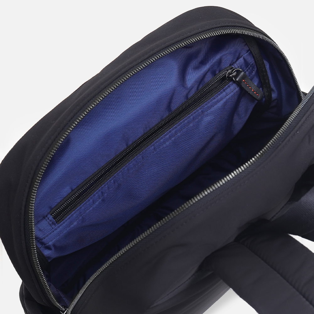 イズイットのふわふわな質感で、見た目からも軽さがわかるA4サイズのリュック。厚めのマチ幅で荷物を沢山収納できる他、電子機器を収納できるクッションポケットや整理のしやすいポケットも備えた使い易い仕様で、タウンユースからジム、ゴルフ、旅行まで幅広いシーンで使えるジェンダーフリーなデザインです。