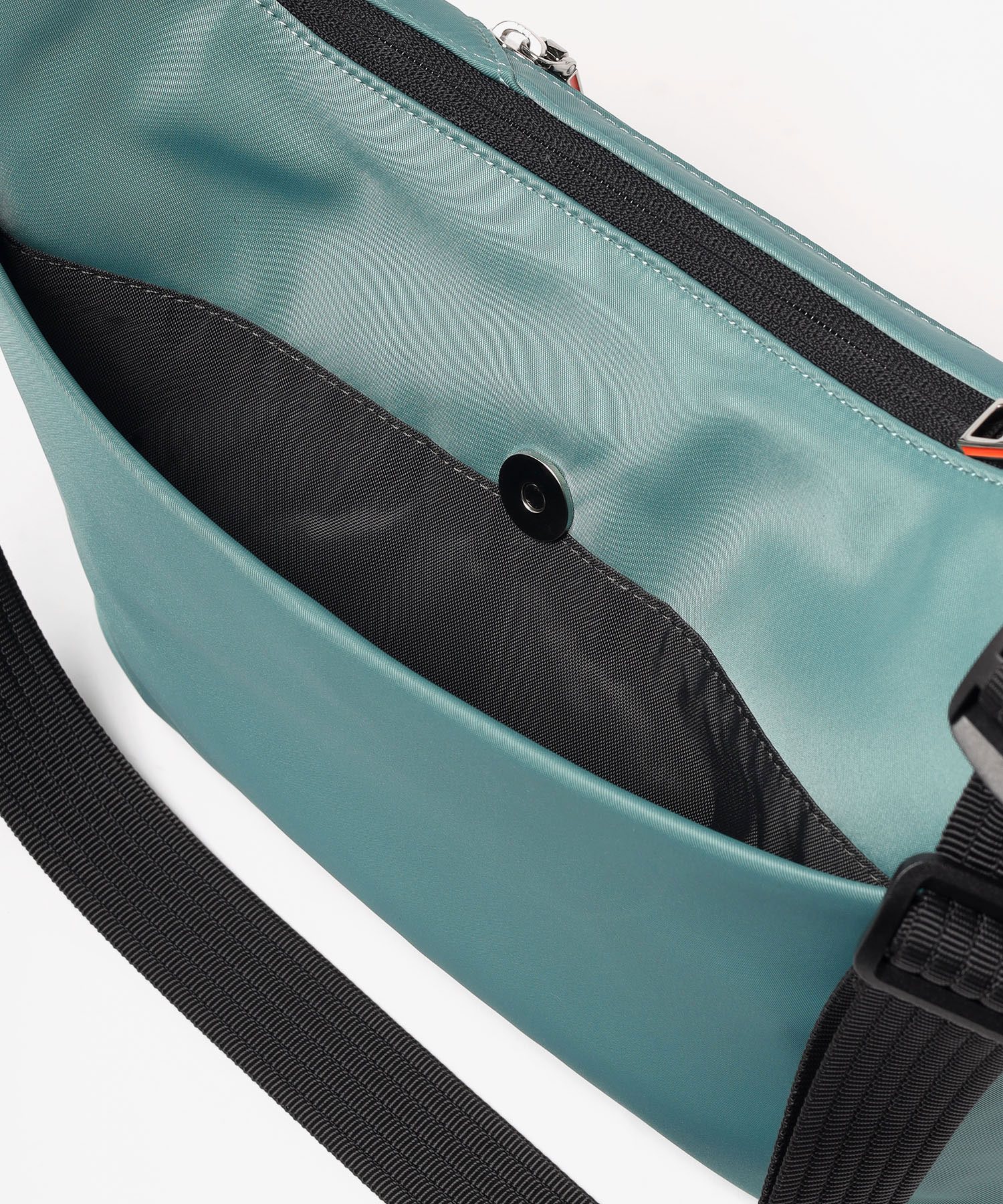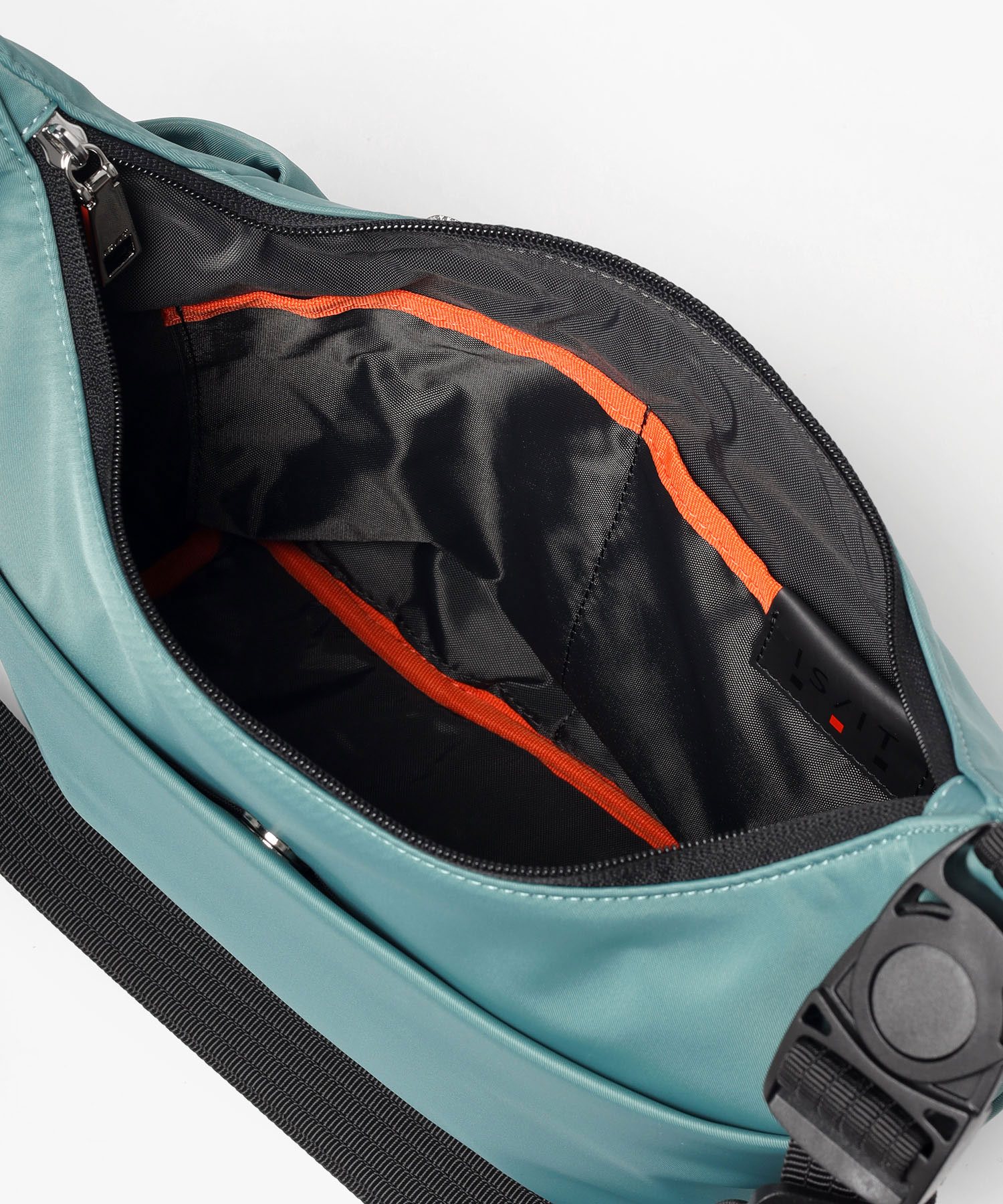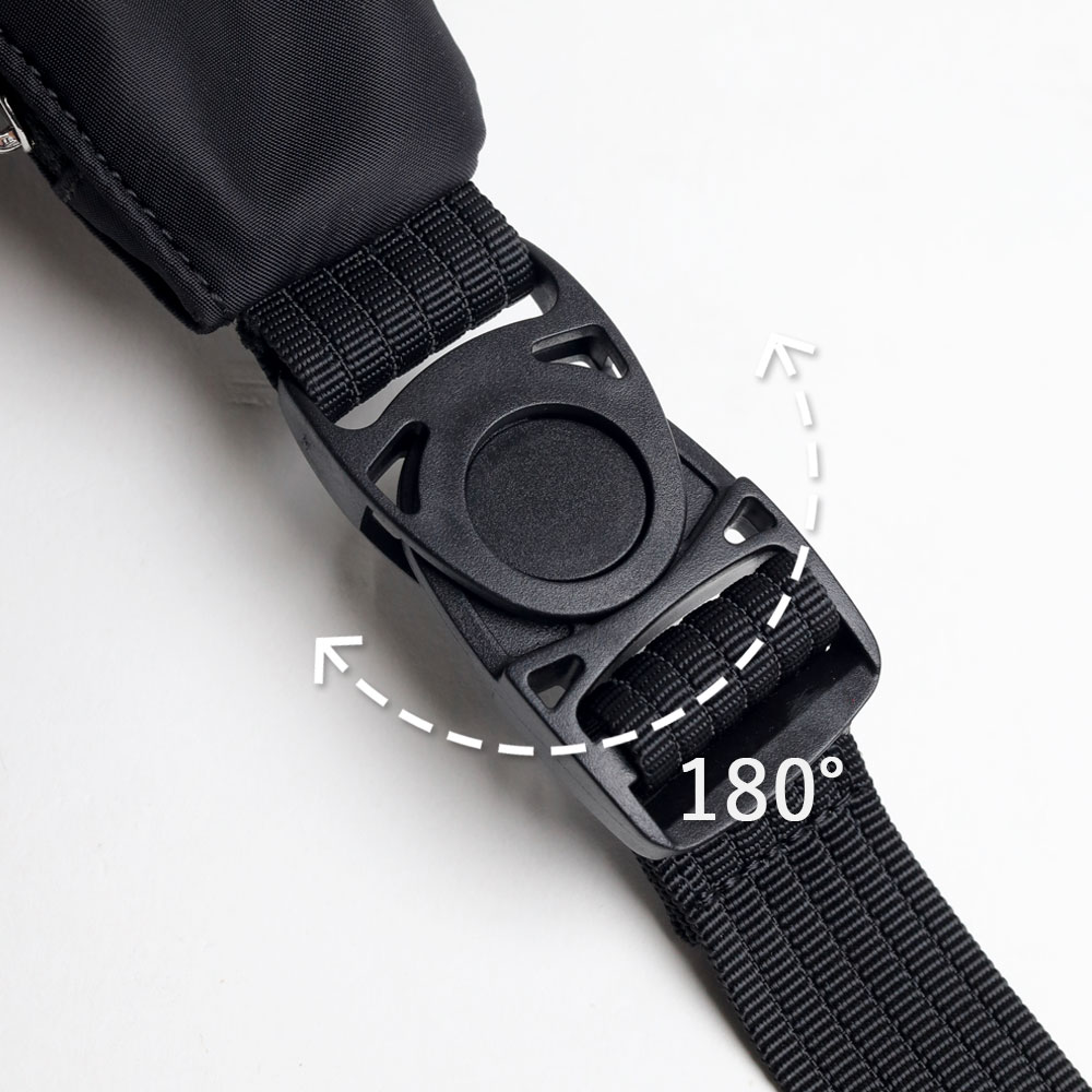 ショルダーベルトの接続部は、バックルを軸に180度回転する可動式を採用しました。身体の動きに合わせて角度が変わるため、ベルトがねじれたり突っ張ったりせず、常に快適な背負い心地をキープします。また、ワンタッチで着脱できるバックル仕様により、厚手のアウターを着ている時や、混雑した車内でもバッグの積み下ろしがスムーズに行えます。